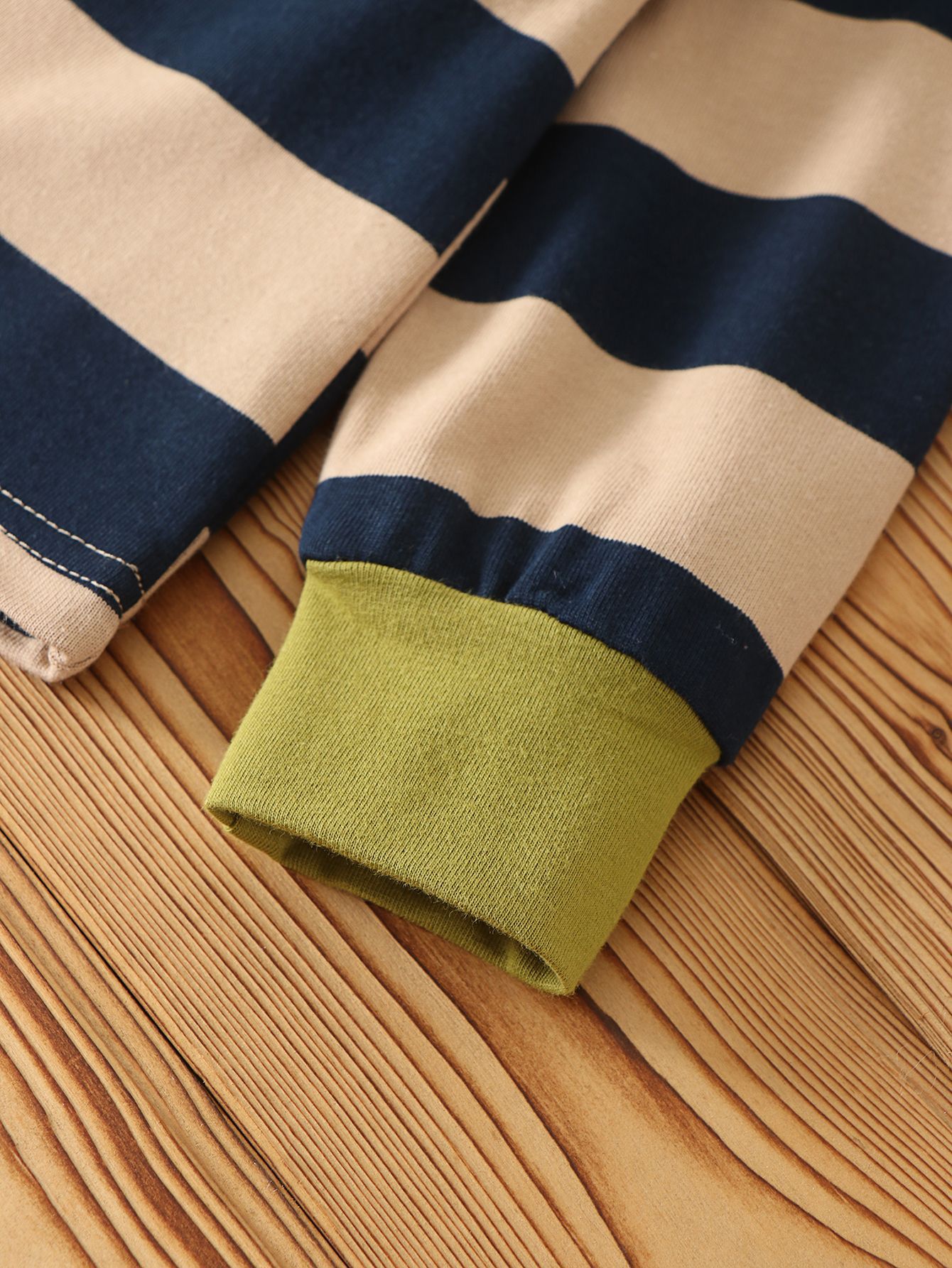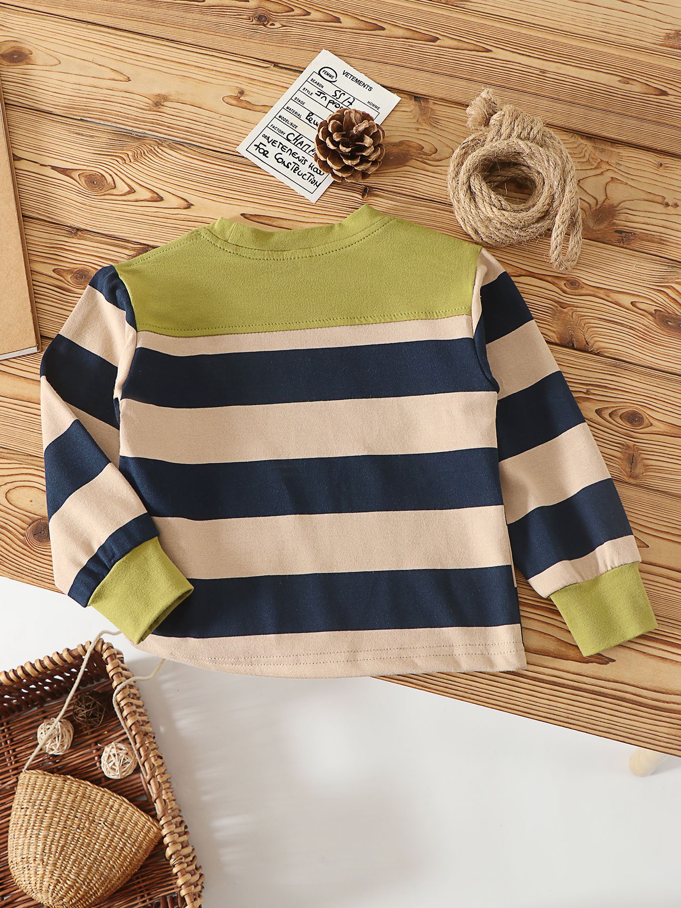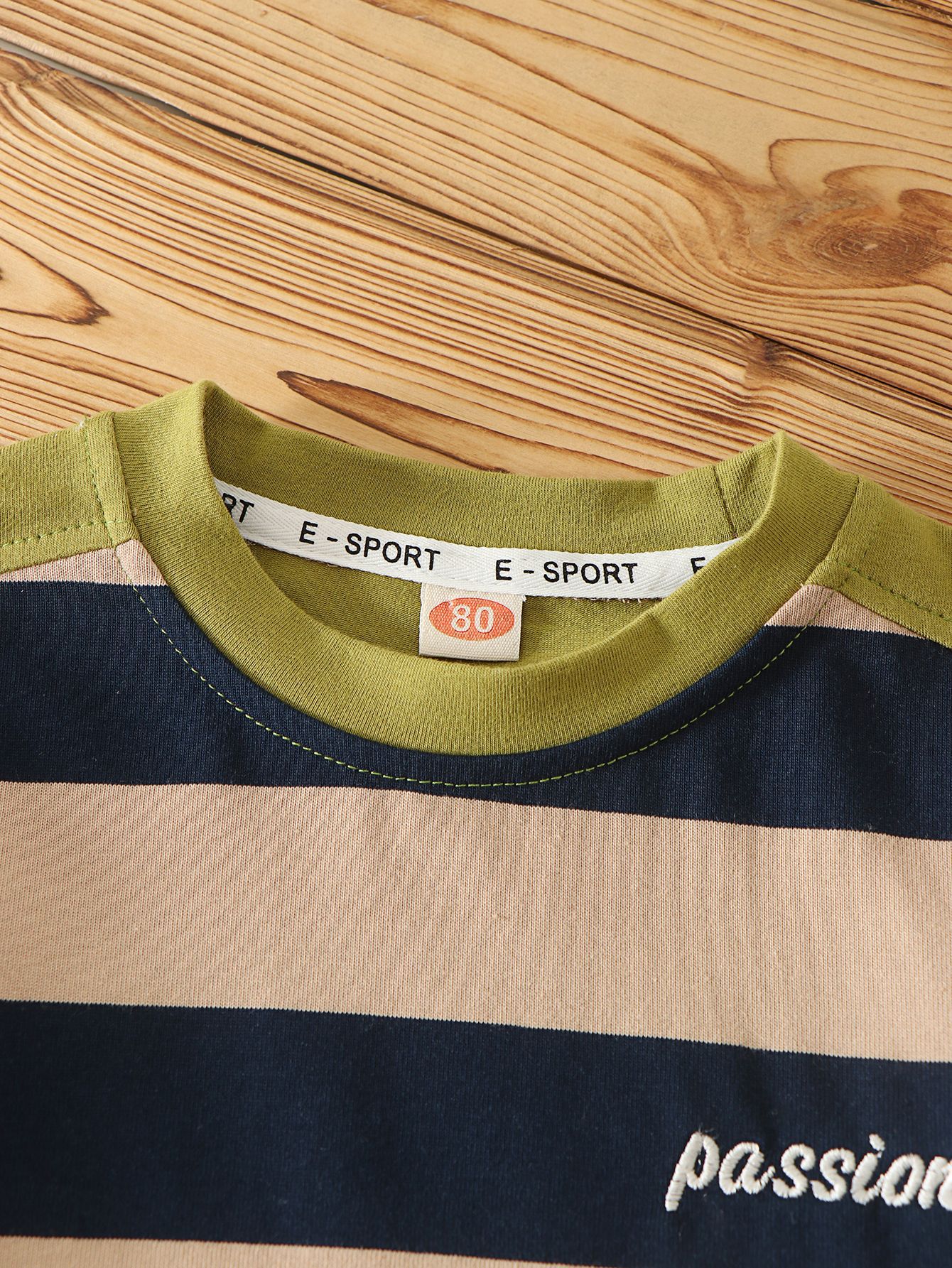 2025 봄과 가을 어린이 느슨한 편지 톱 소년의 산 잘 생긴 코튼 컬러 블록 스트라이프 스트레치 티셔츠 트렌디스토어 가기