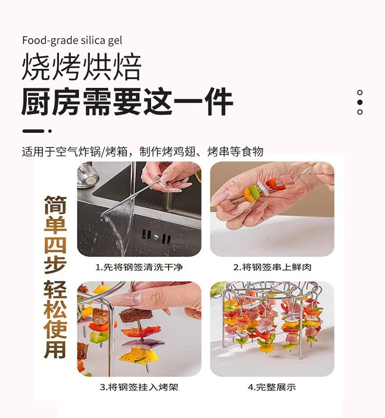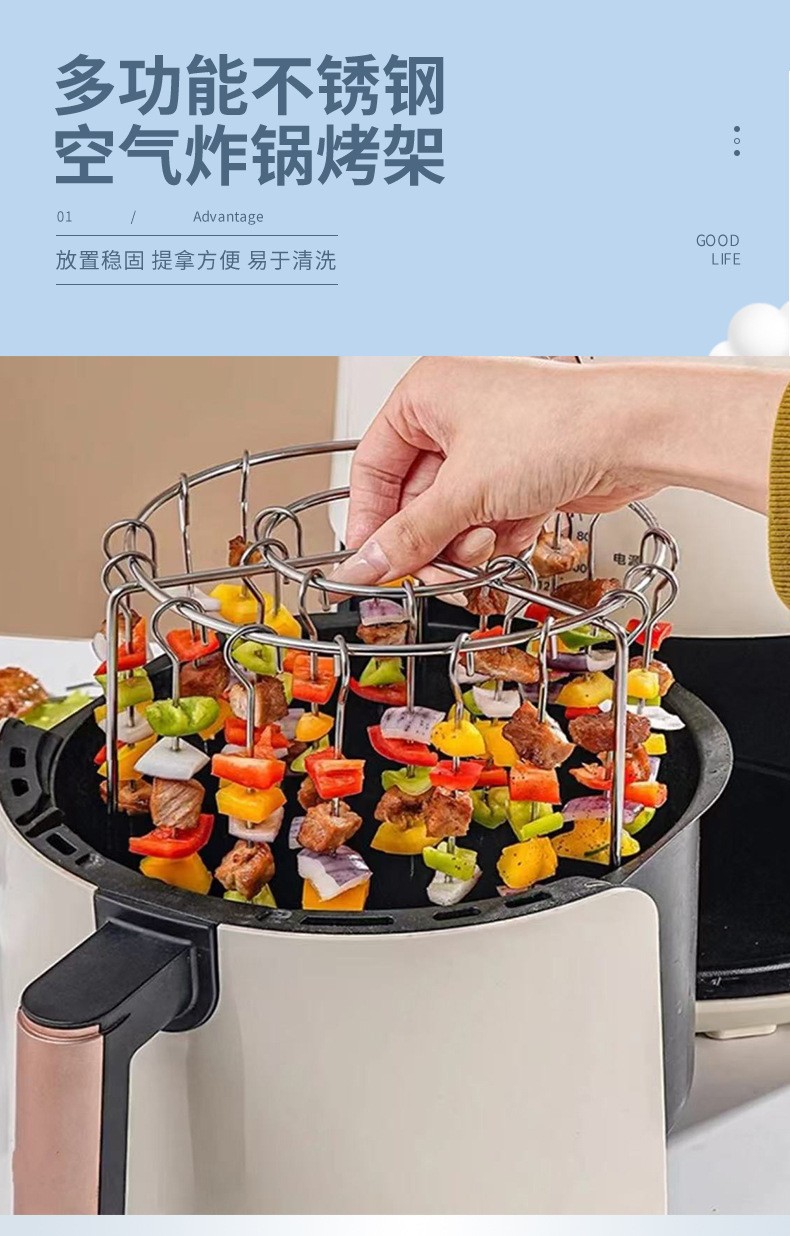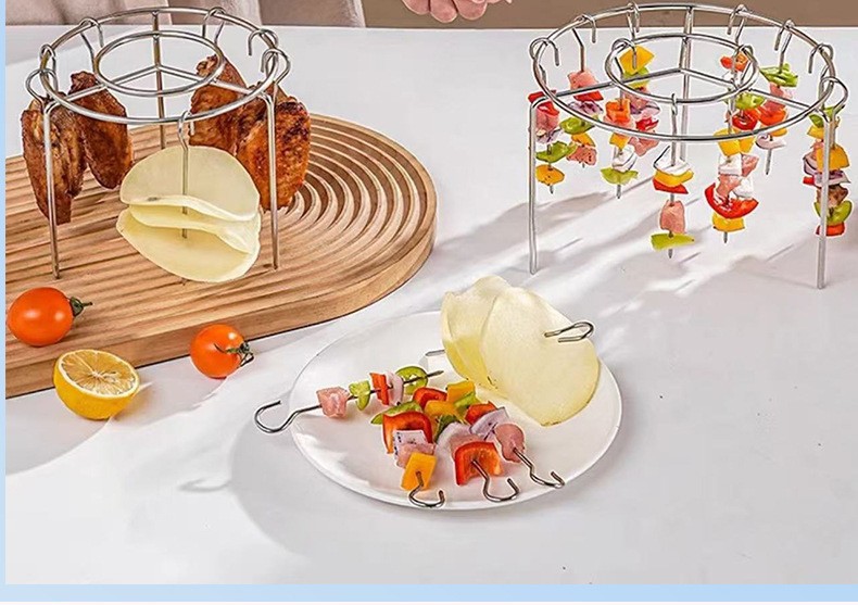 스테인레스 스틸 에어 프라이어 그릴 액세서리 주방 수직 꼬치 바베큐 바베큐 꼬치 그릴 바베큐 라운드 그릴
