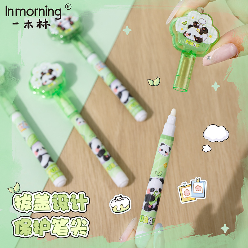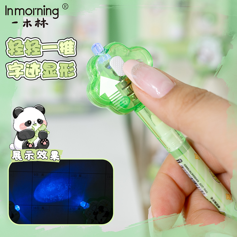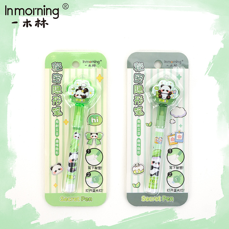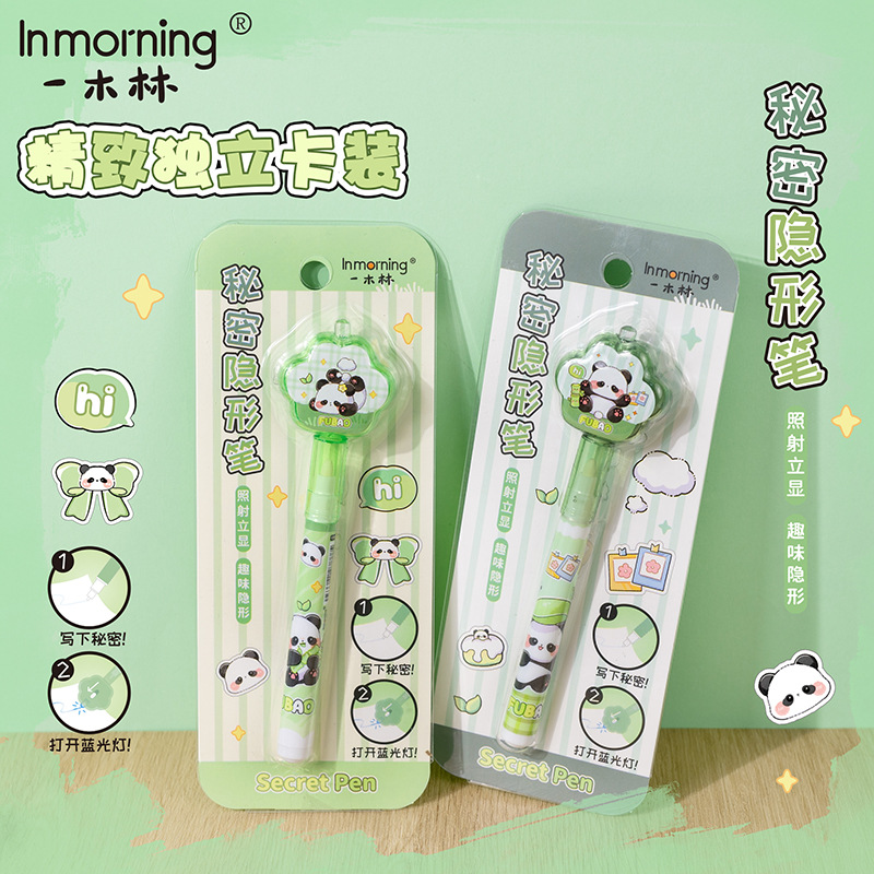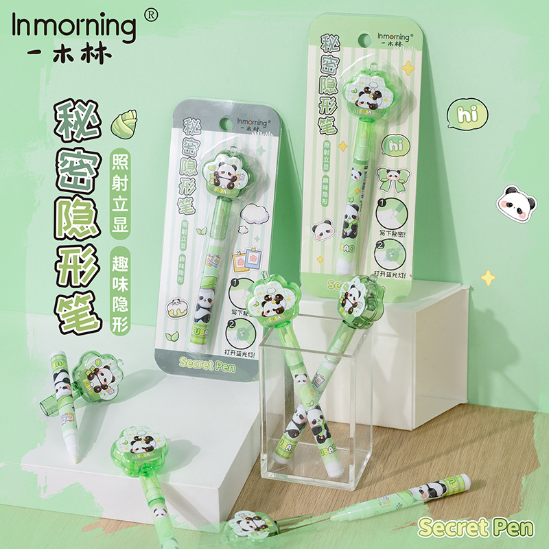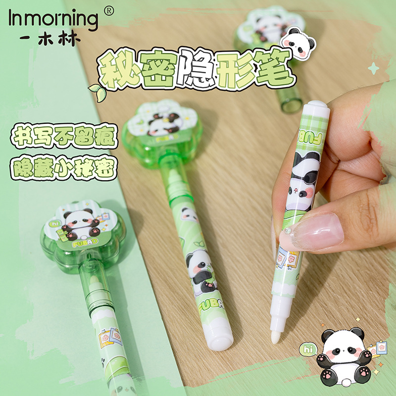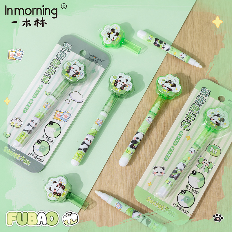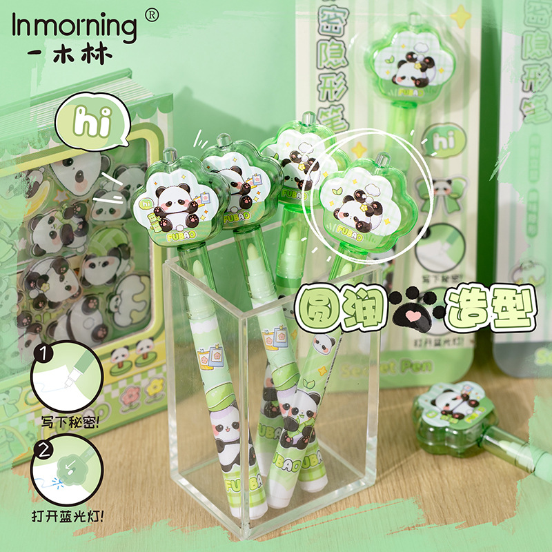 Yimulin Fubao 팬더 비밀 보이지 않는 펜 귀여운 학생 창조적 인 재미있는 조명 디스플레이 젤 펜 형광펜