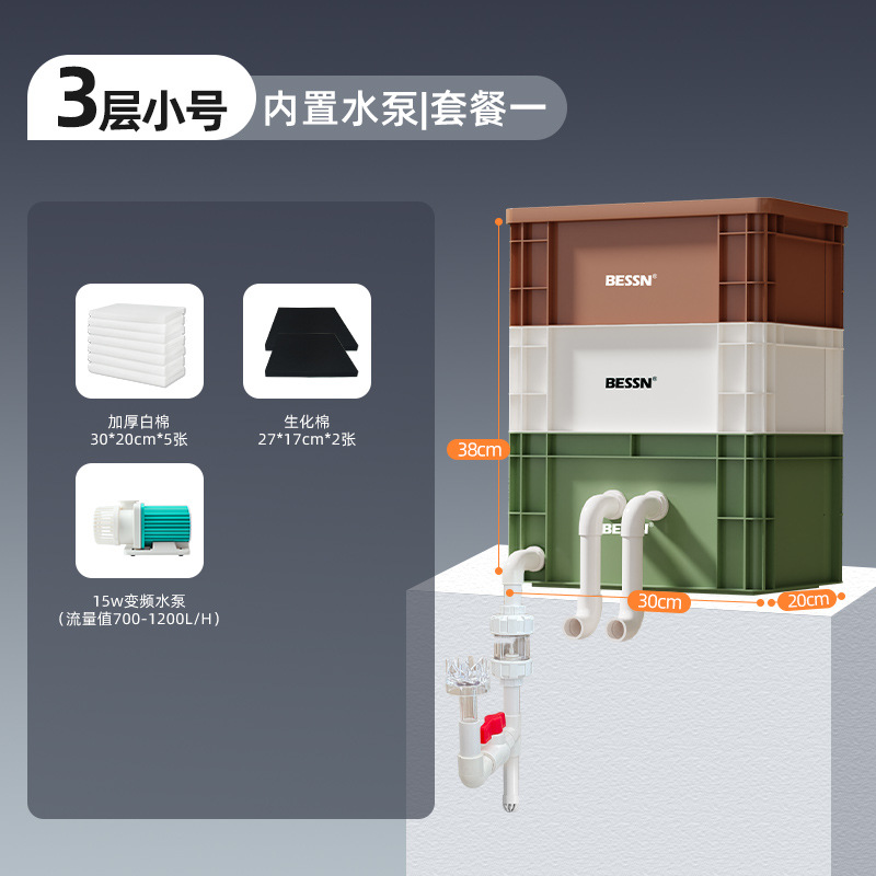 • 3단 소형 내장형 워터펌프 박스 + 두꺼운 필터면 [100cm 이내 수조에 적합]