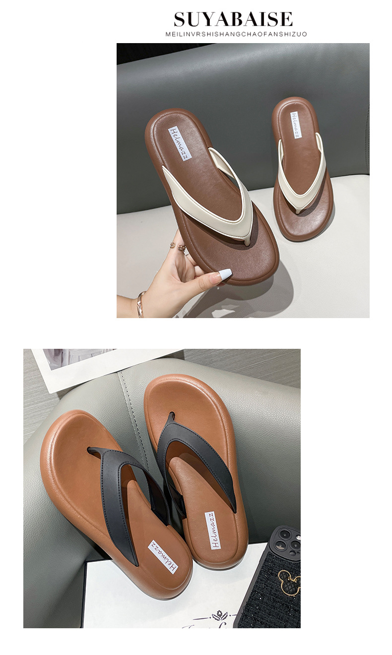Flip-flops 여성 여름 외부 착용 편안한 클립 Toe Ins 게으른 스타일 캐주얼 두꺼운 밑창 미끄럼 방지 샌들 학생 기숙사스토어 가기