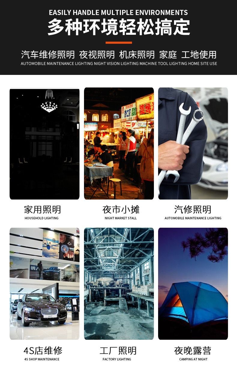 국경 간 다기능 조명 COB 작업 조명 자동차 수리 조명 차량 장착 손전등 충전식 휴대용 핸드 헬드 라이트스토어 가기