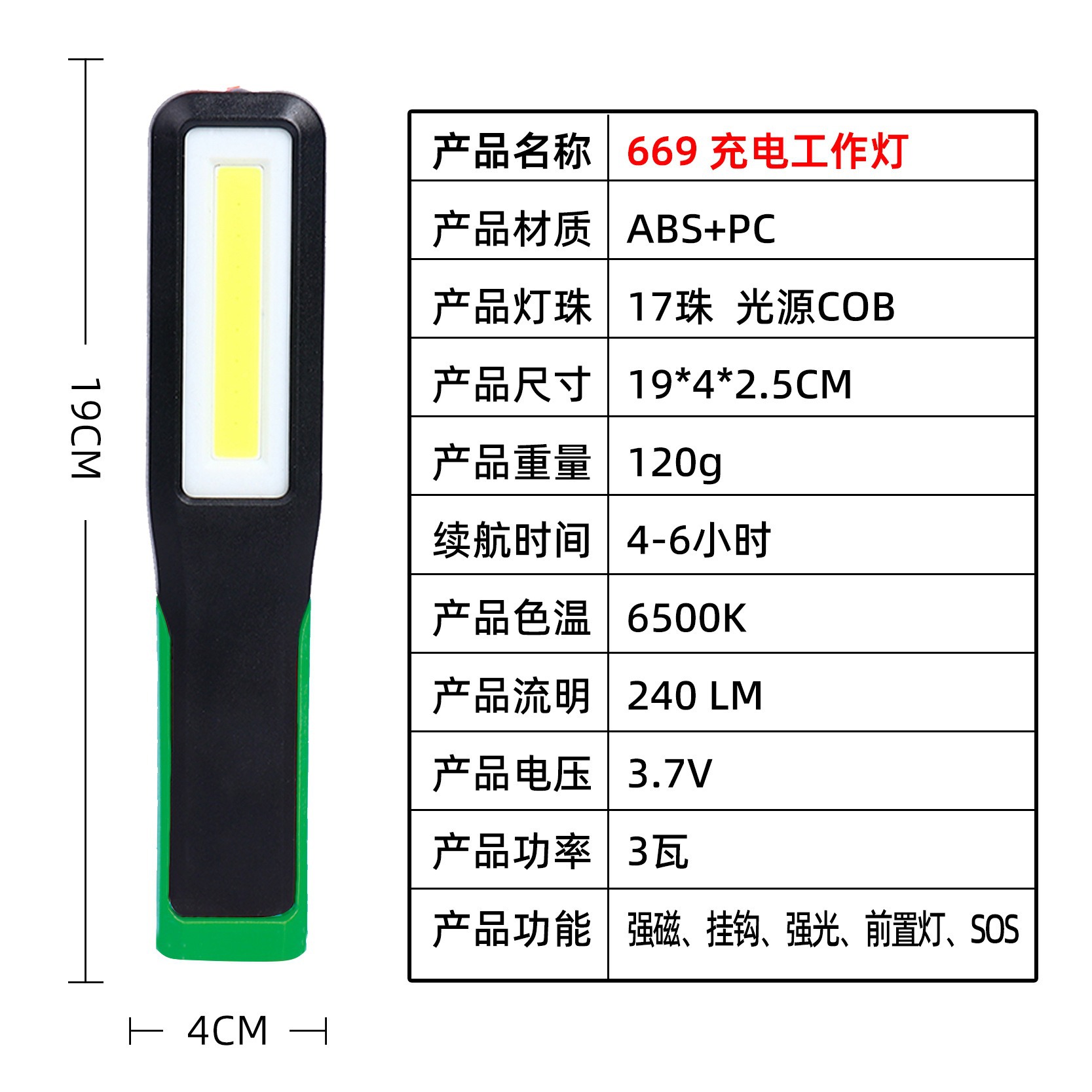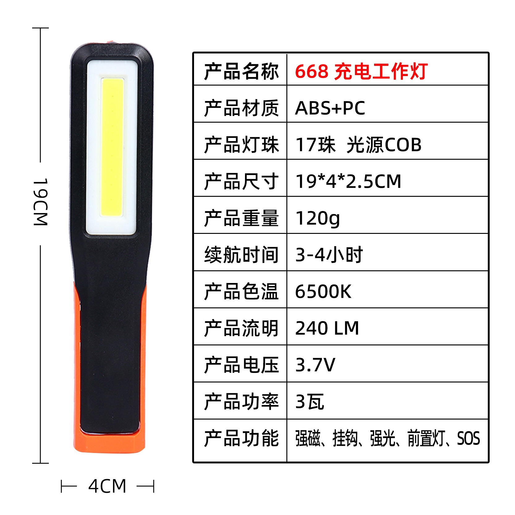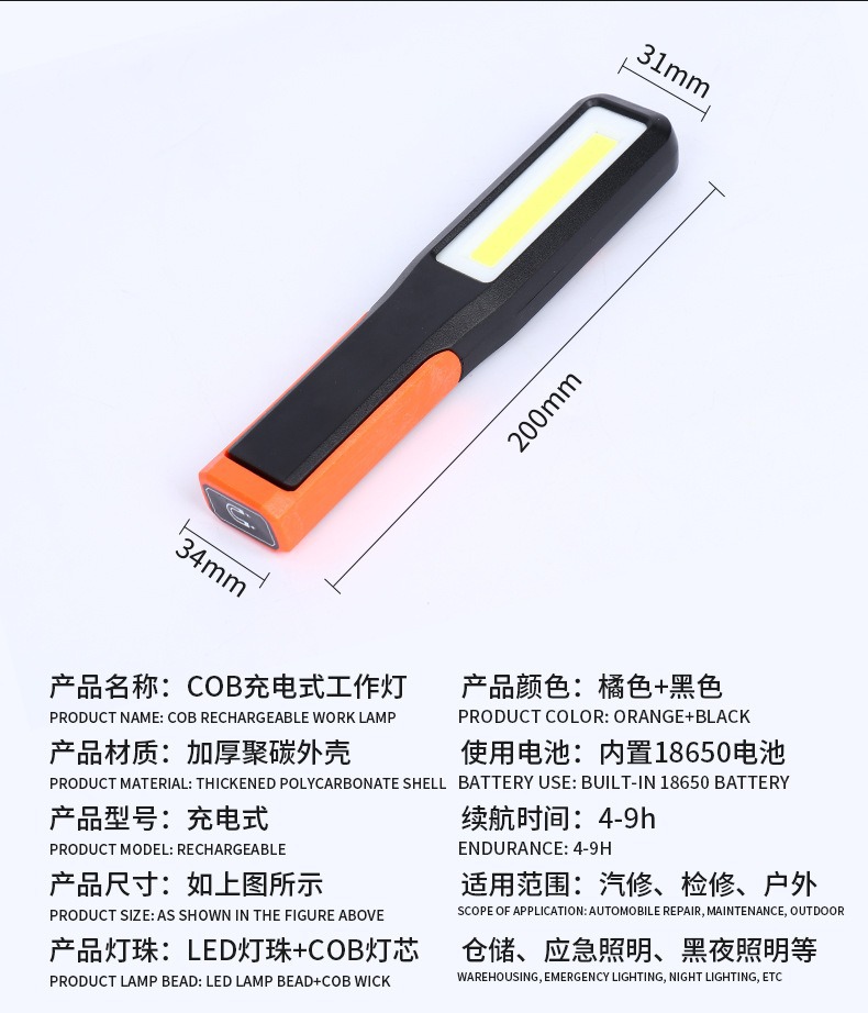 국경 간 다기능 조명 COB 작업 조명 자동차 수리 조명 차량 장착 손전등 충전식 휴대용 핸드 헬드 라이트