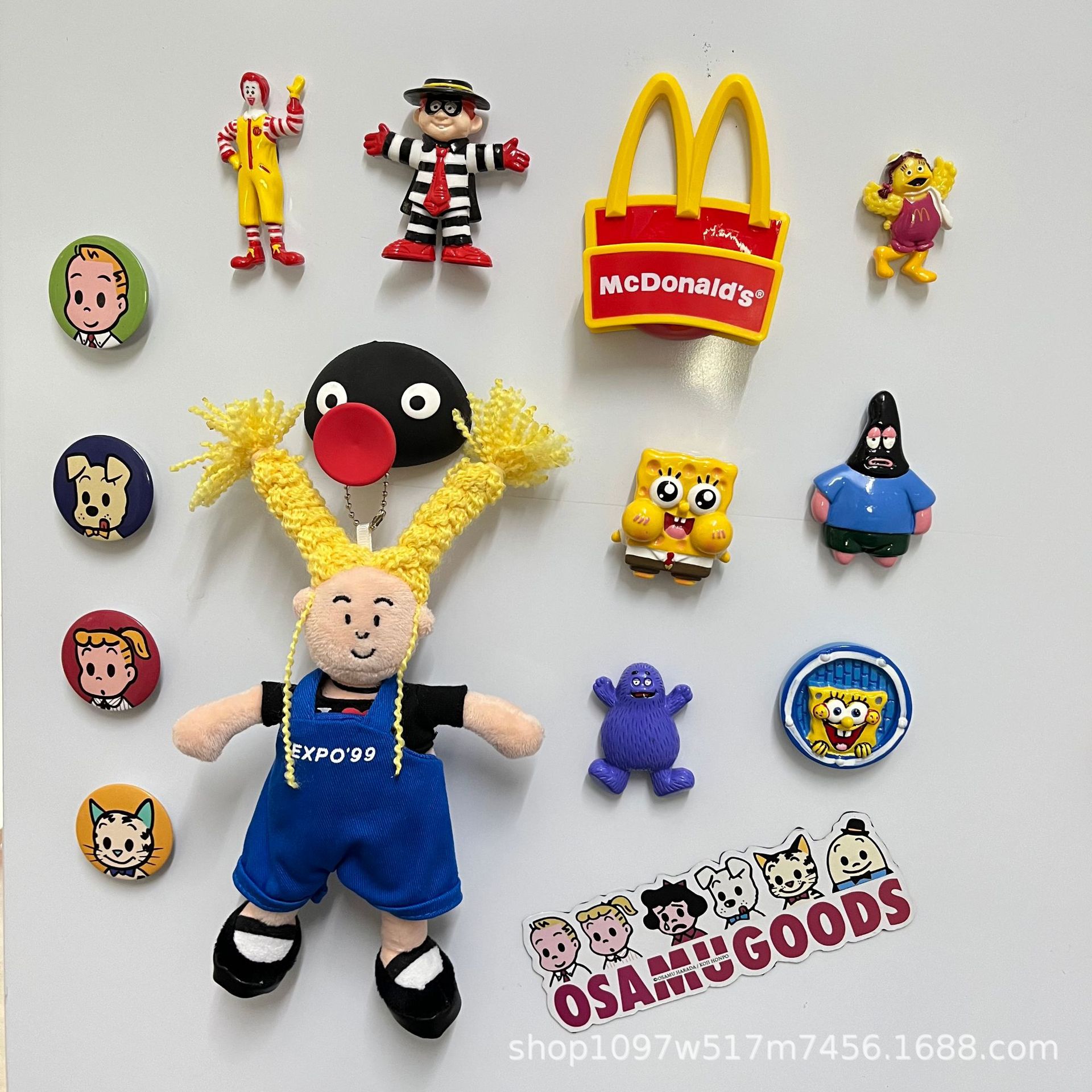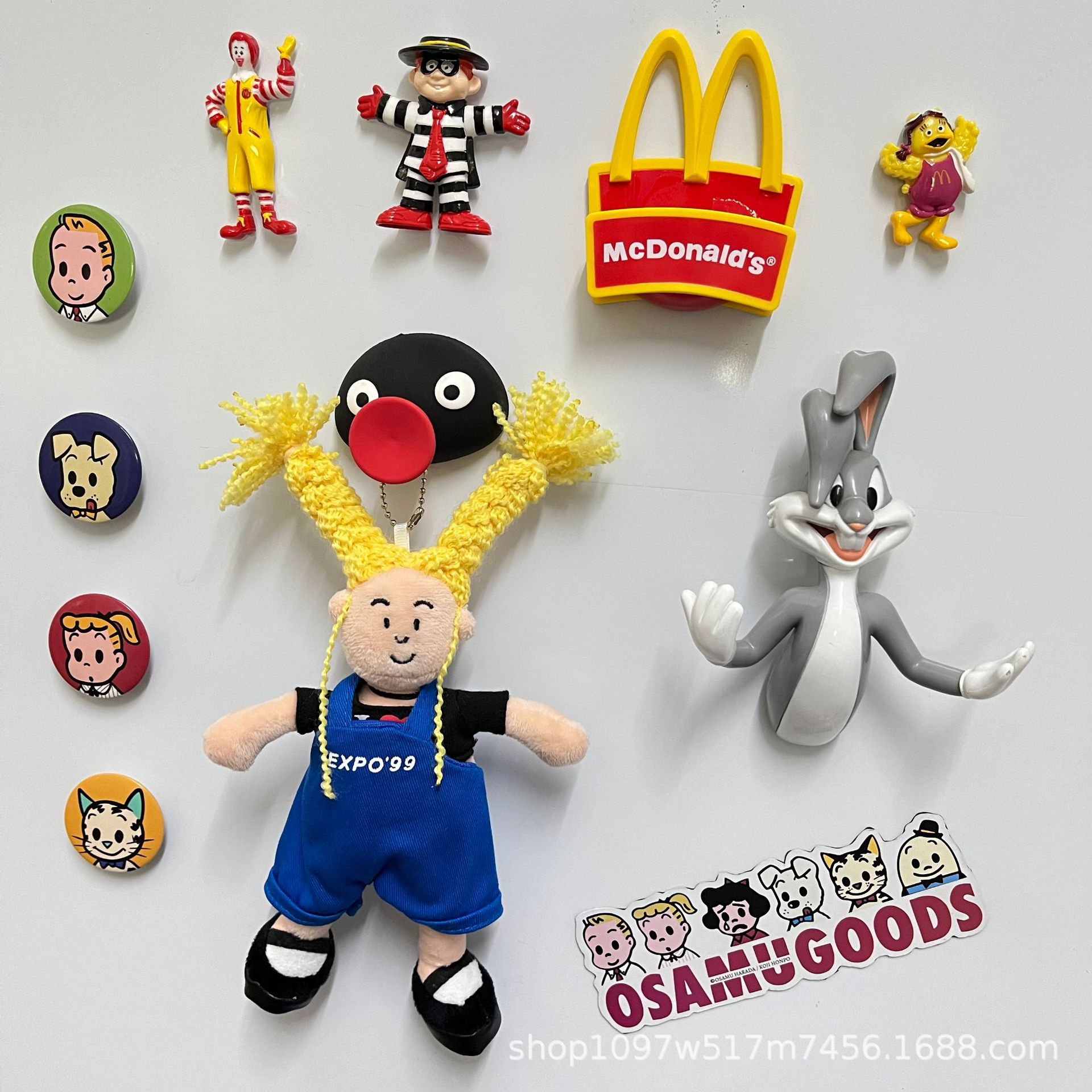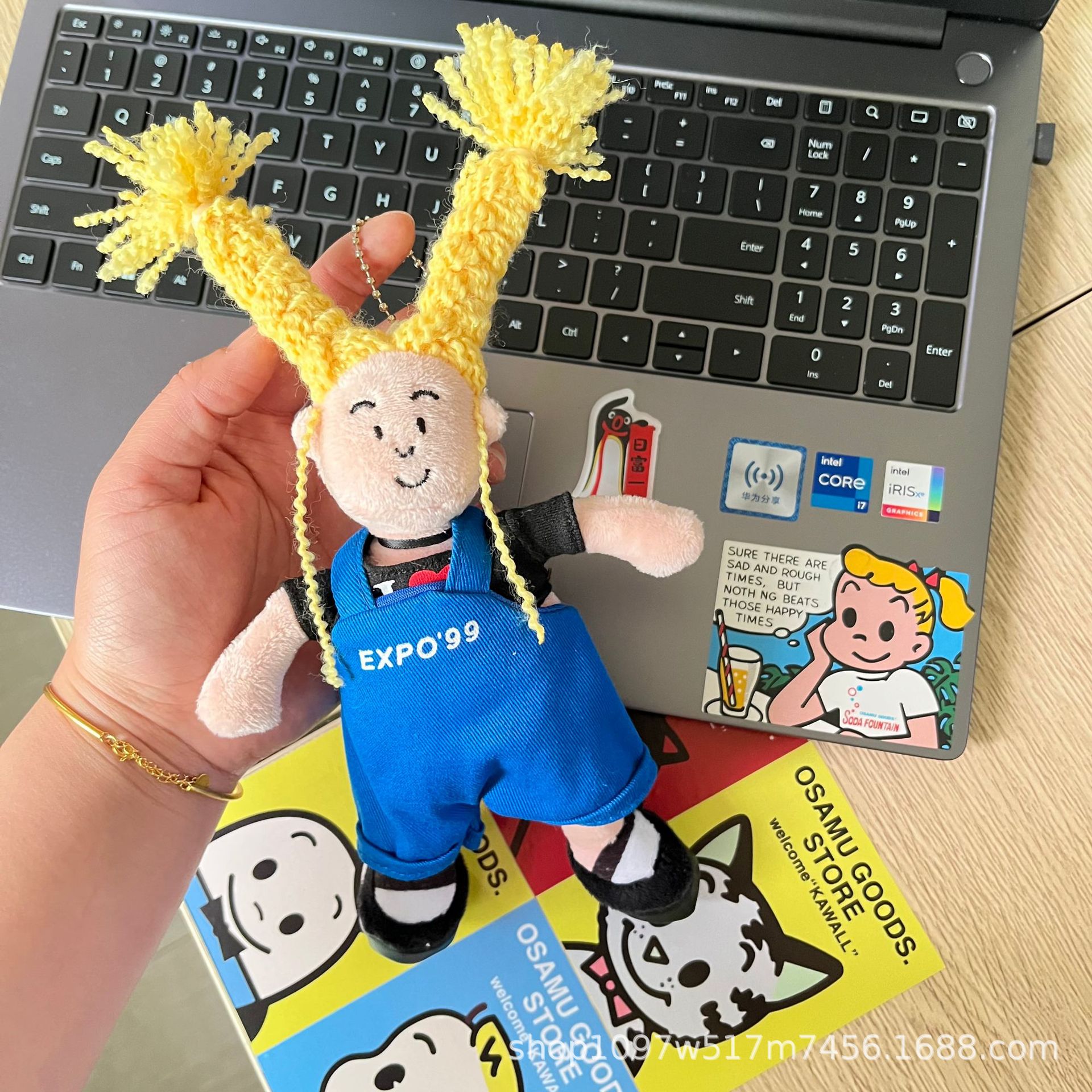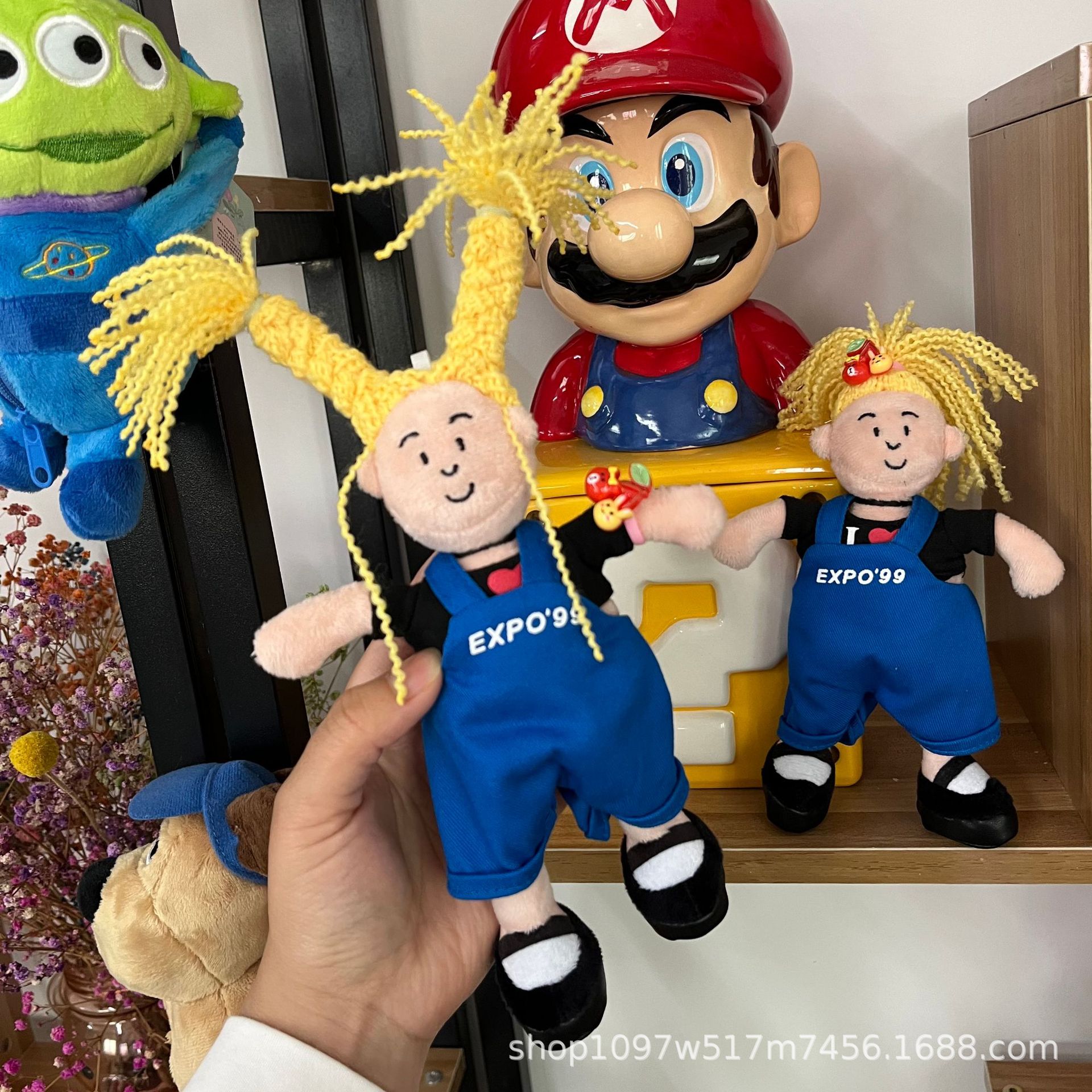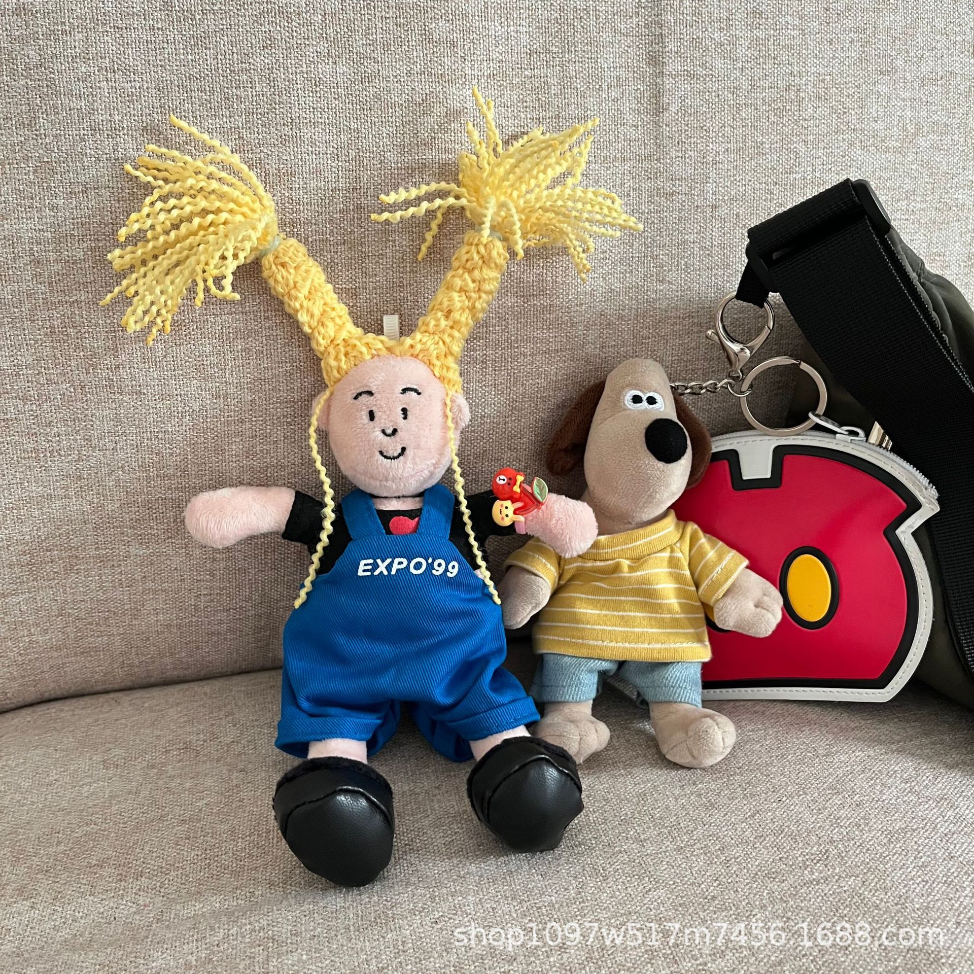 창조적 인 노란색 튀긴 머리 소녀 펜던트 브로치 못생긴 귀여운 인형 키 체인 블루 서스펜더 소녀 가방 교수형 액세서리스토어 가기