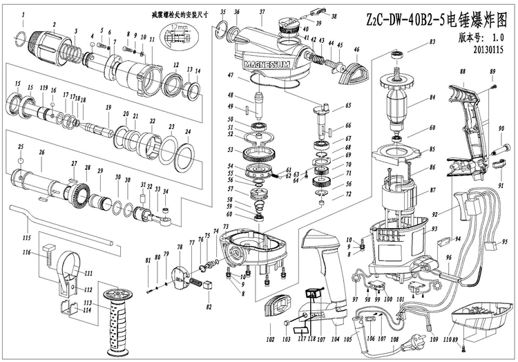 40B2-5 긴 육각 망치 액세서리 로터 고정자 쿼드 세트 손잡이 스위치 탄소 브러시 임팩트 서브