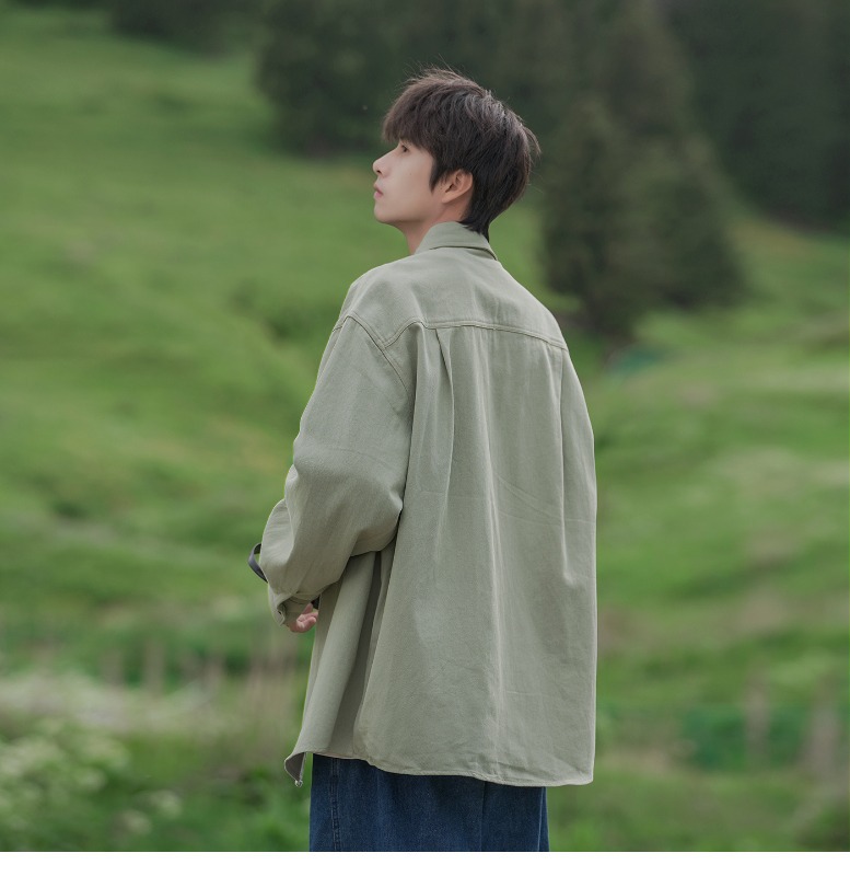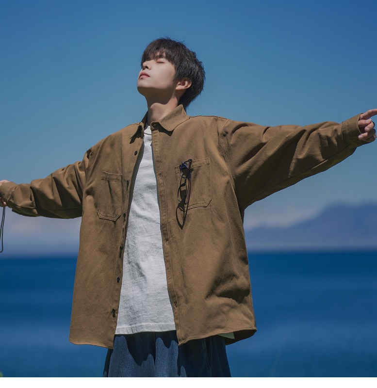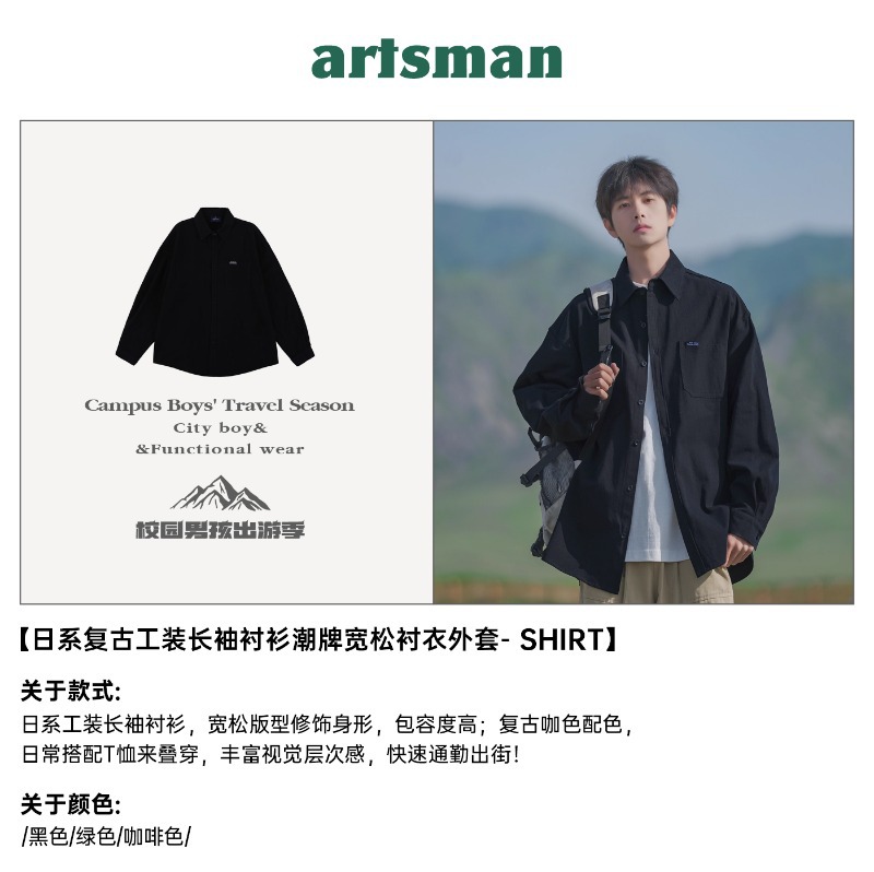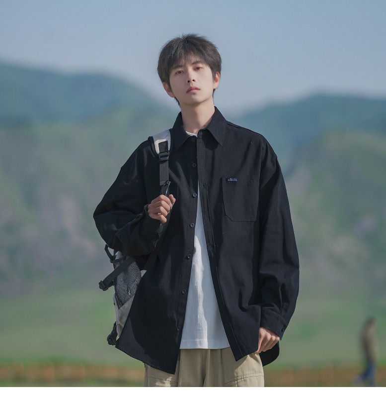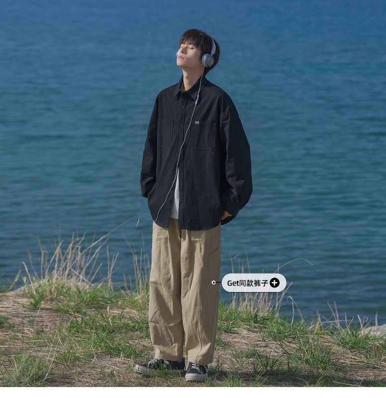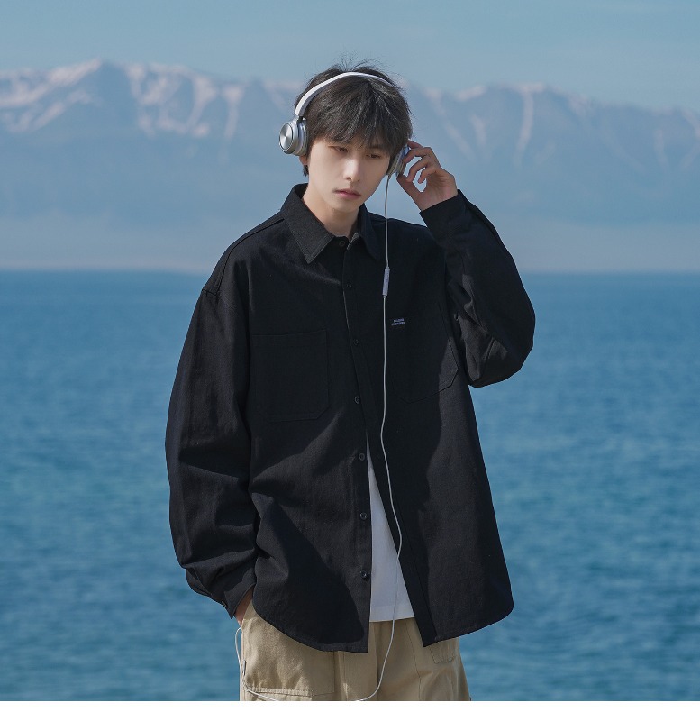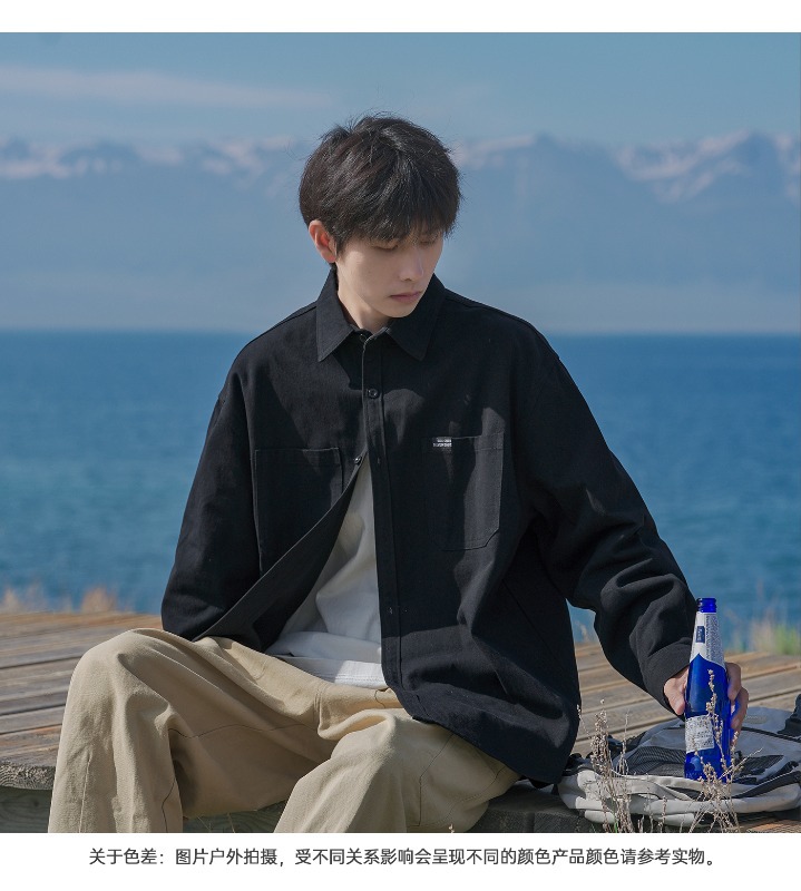 소스 제조업체 일본식 검은색 작업복 긴팔 셔츠 재킷 남성 재킷 봄, 가을 복고풍 다용도 루즈 셔츠