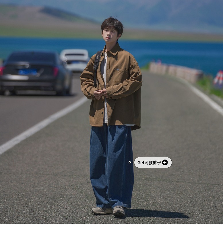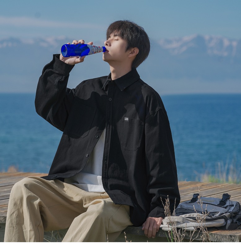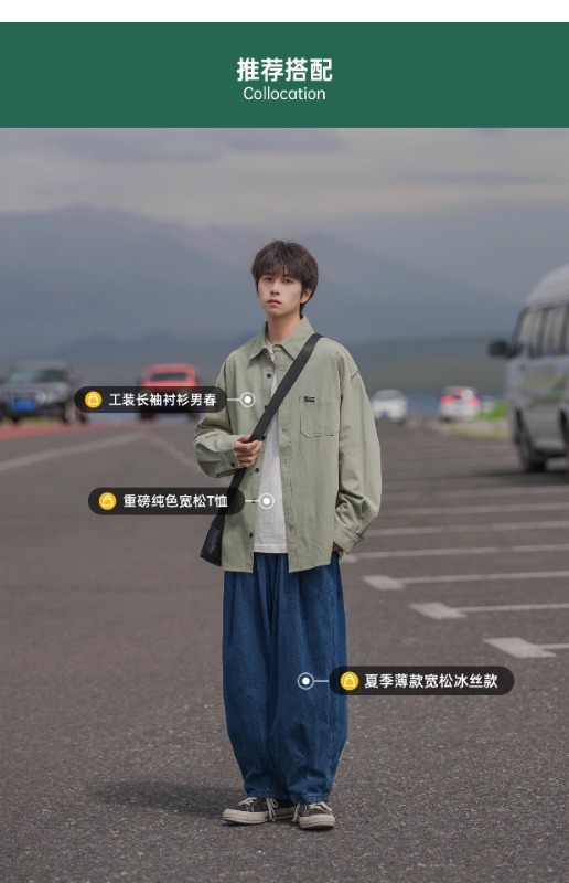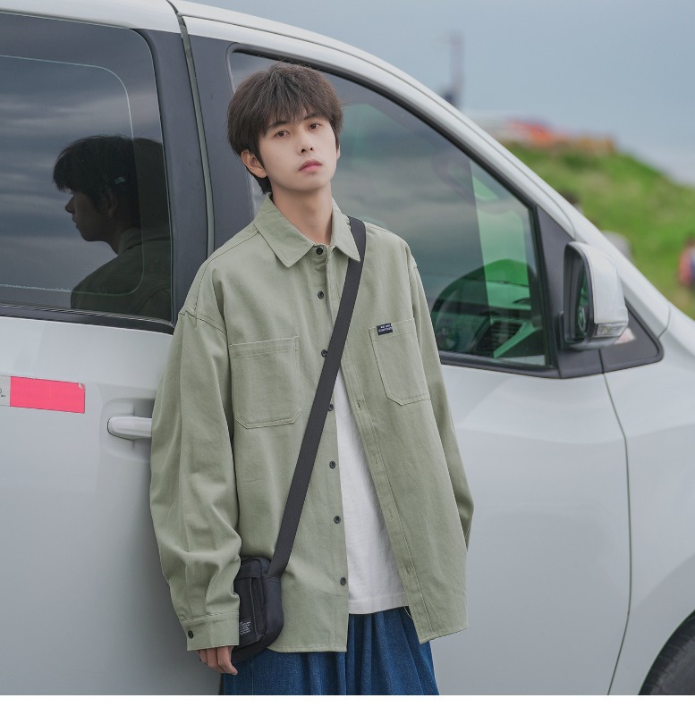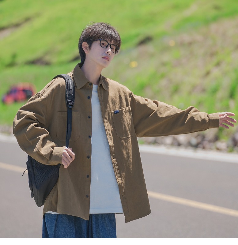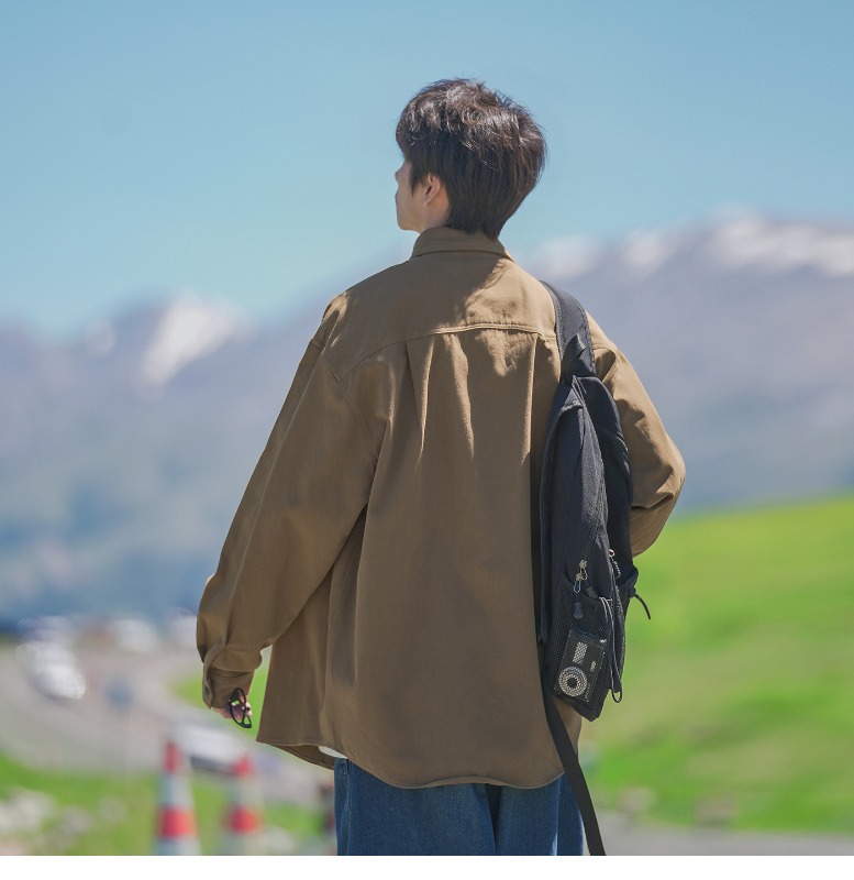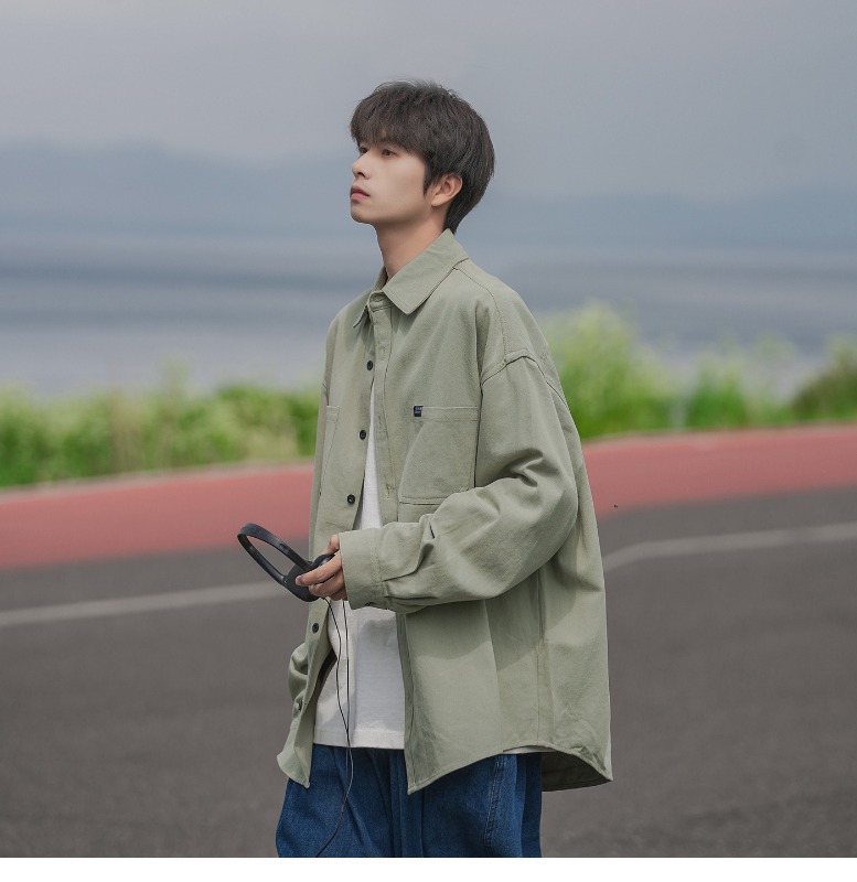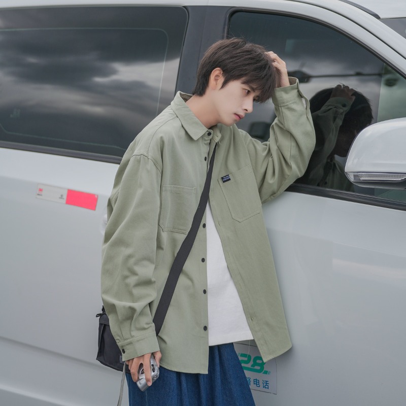 소스 제조업체 일본식 검은색 작업복 긴팔 셔츠 재킷 남성 재킷 봄, 가을 복고풍 다용도 루즈 셔츠