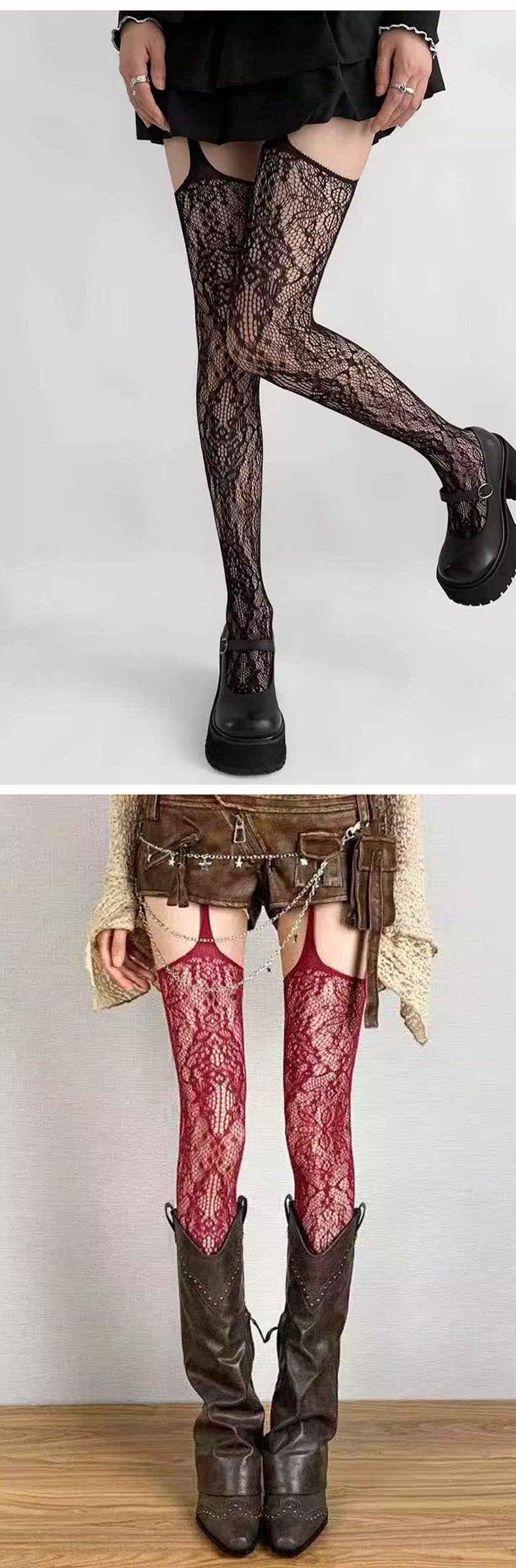 섹시한 서스펜더 일체형 스타킹, 여성스러운 레이스 로즈 찢어진 스타킹, 걸림 방지, 다용도 슬리밍 섹시 스타킹스토어 가기