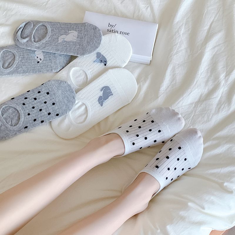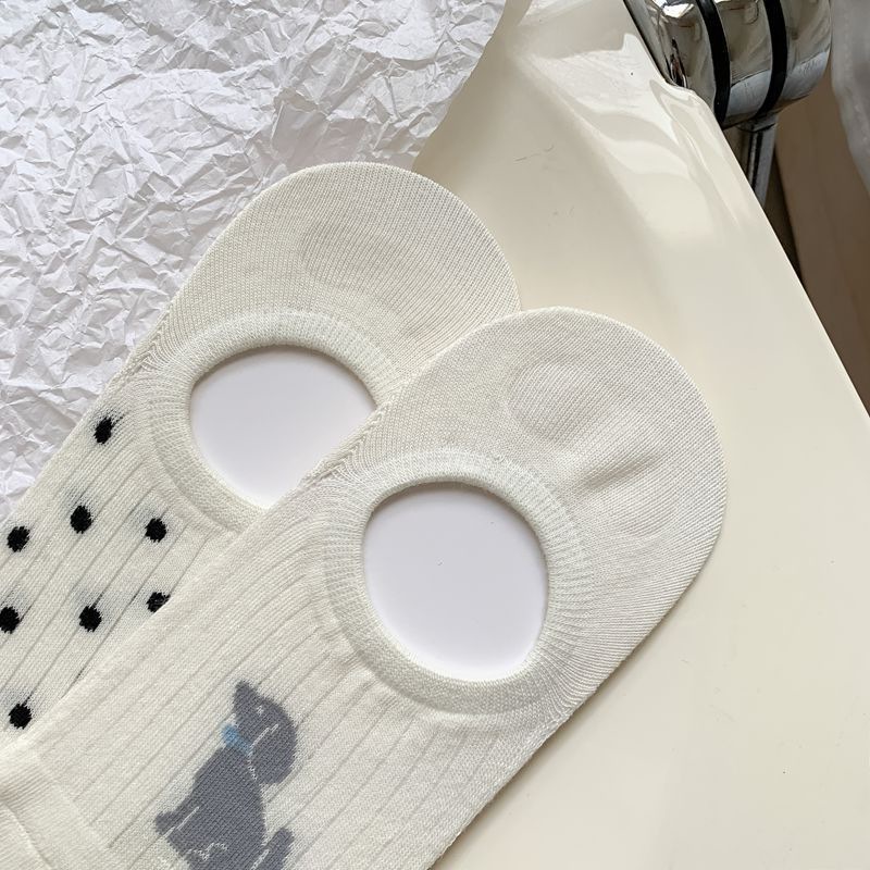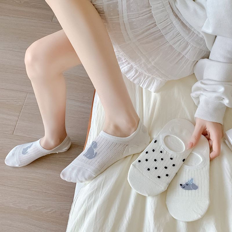여성용 봄 여름 양말 한국 스타일 얇은 메쉬 통기성 개 폴카 도트 얕은 입 로우 컷 미끄럼 방지 보트 양말 여성용 보이지 않는 양말