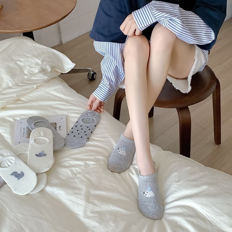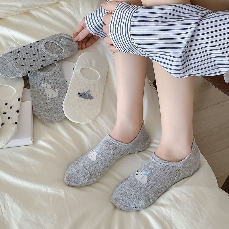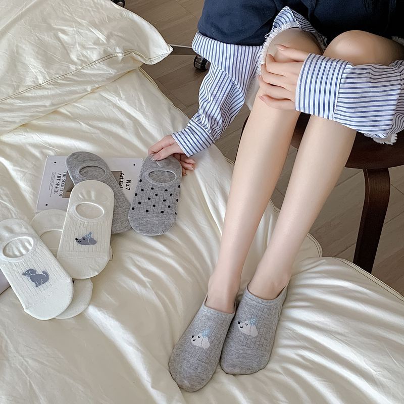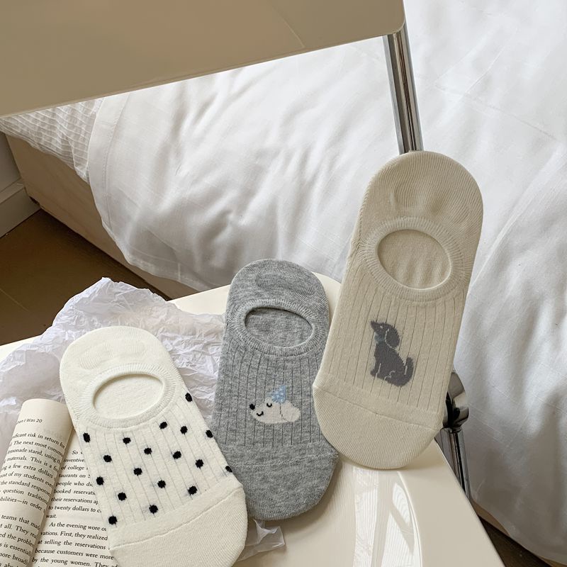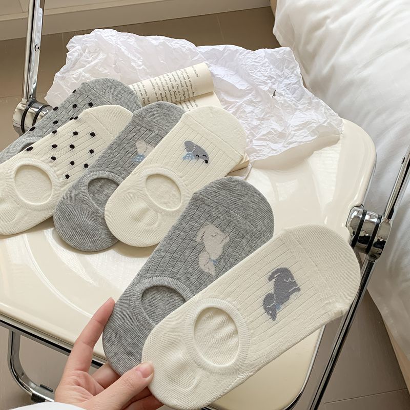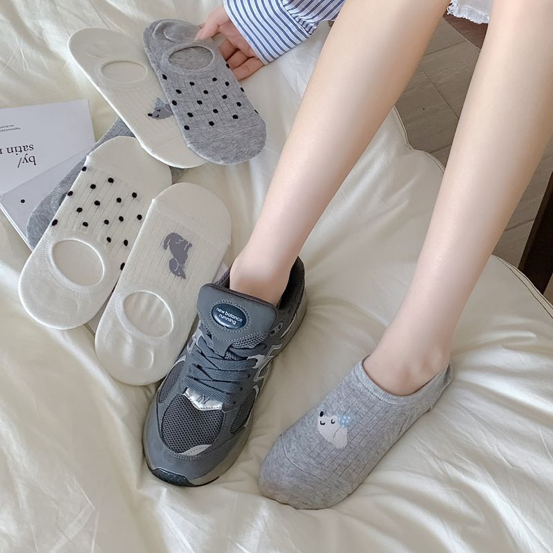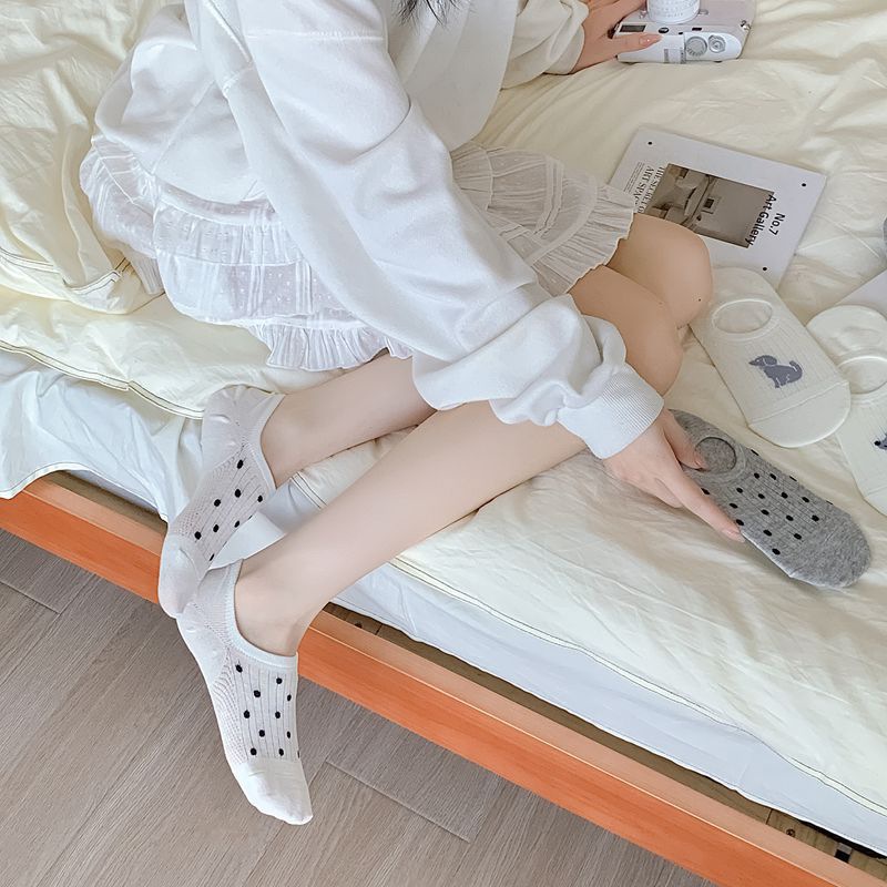 여성용 봄 여름 양말 한국 스타일 얇은 메쉬 통기성 개 폴카 도트 얕은 입 로우 컷 미끄럼 방지 보트 양말 여성용 보이지 않는 양말스토어 가기