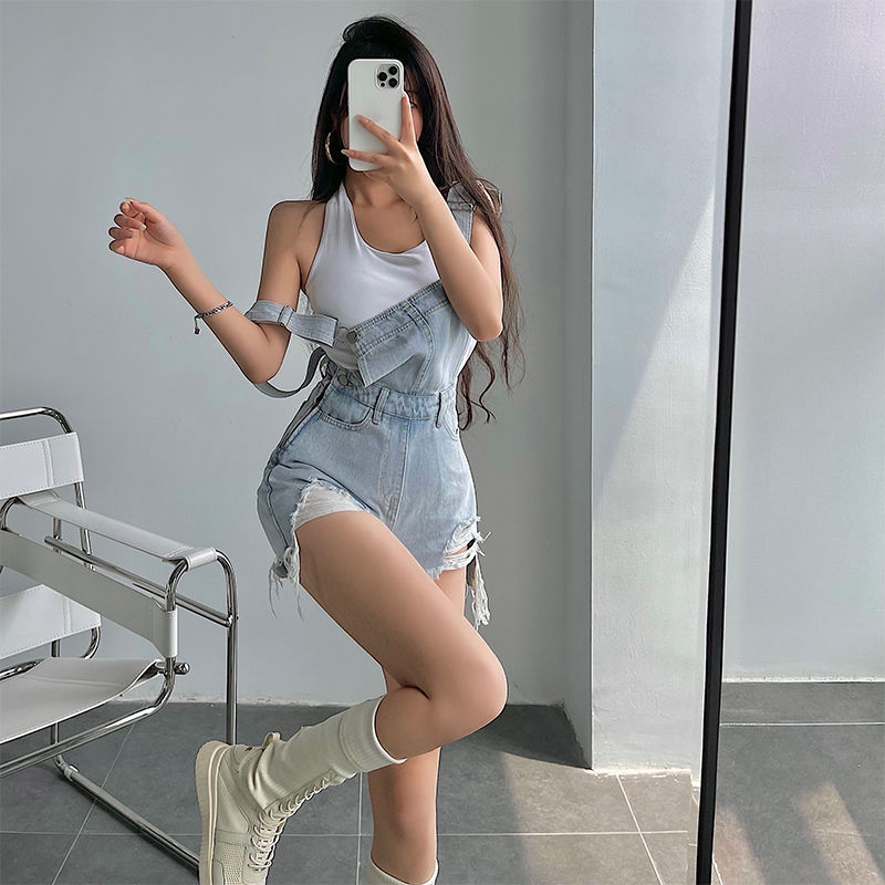 디자인 센스 랩 태슬 데님 스트랩 반바지 여성 여름 얇은 느슨한 플러스 사이즈 연령 감소 우아한 Siaman 바지