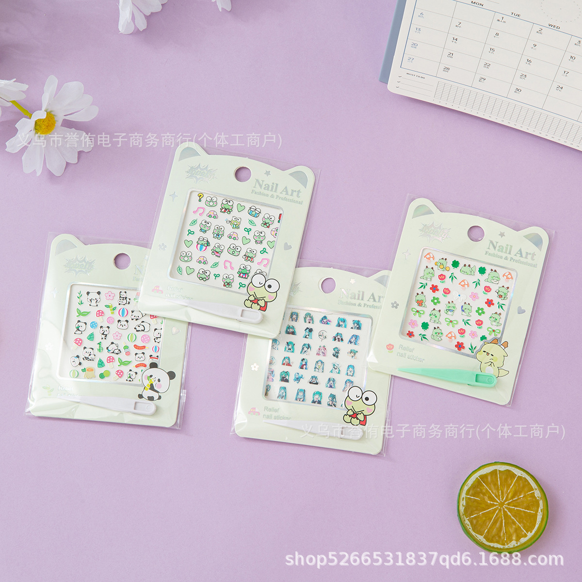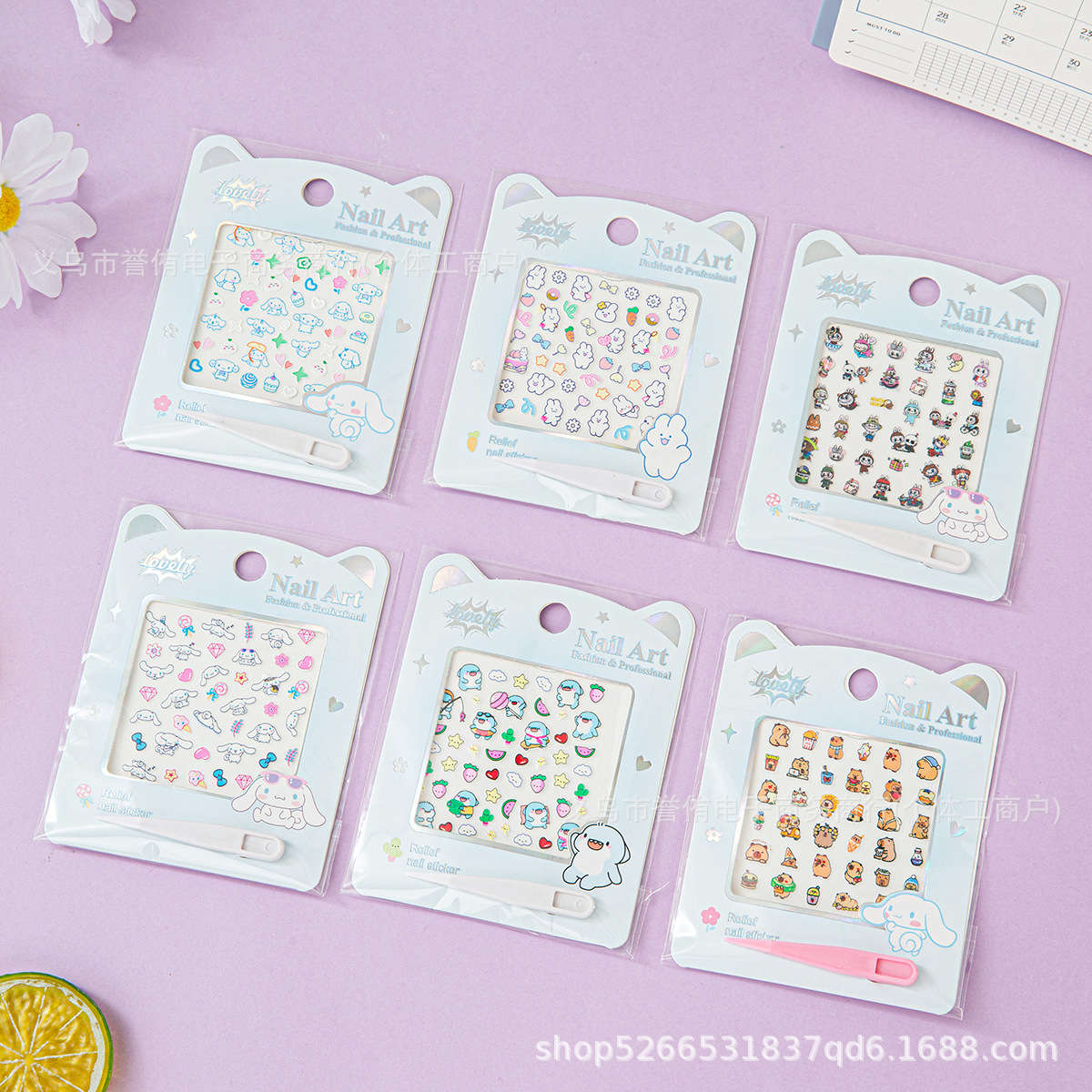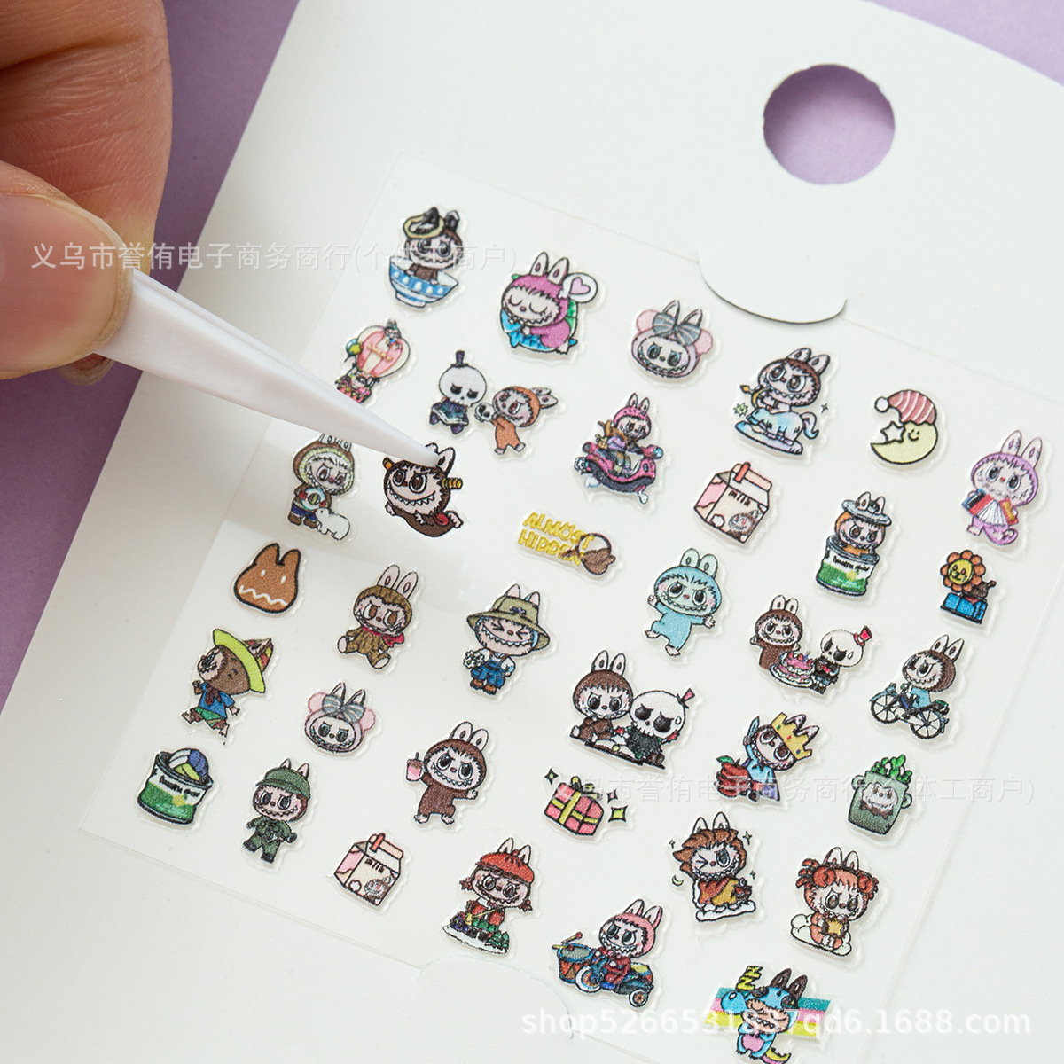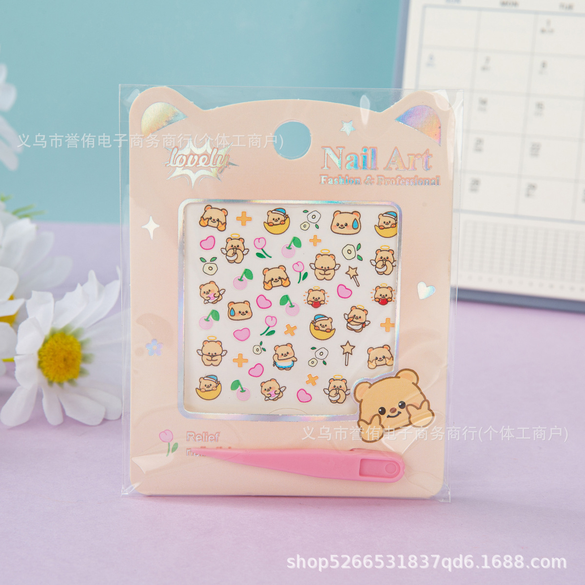 产品尺寸为8.5*11cm,纸卡烫银,带一个小镊子,内含1张6*6cm浮雕指甲贴