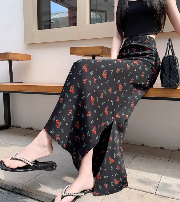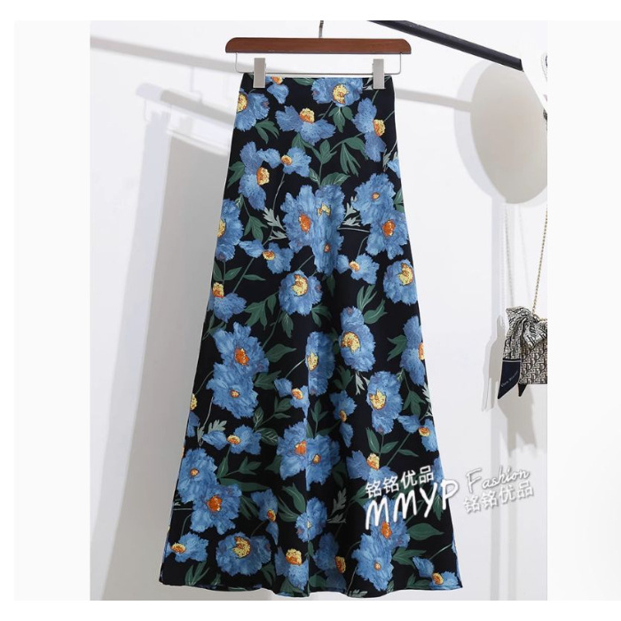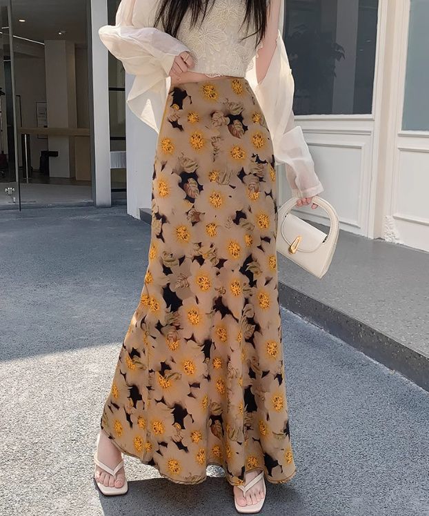 휴일 Fishtail Split 인쇄 된 쉬폰 스커트 여성의 여름 새로운 높은 허리 슬리밍 스커트 A-라인 스커트 긴 스커트 얇은스토어 가기