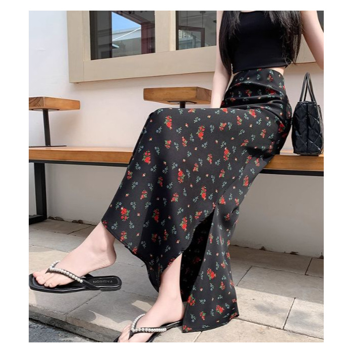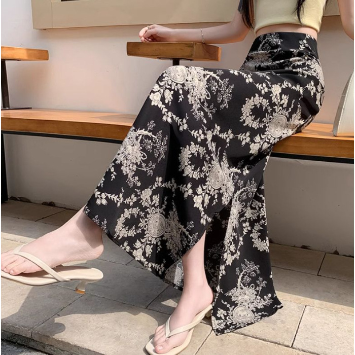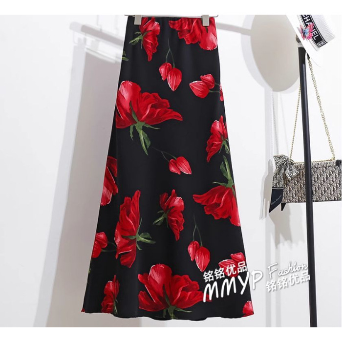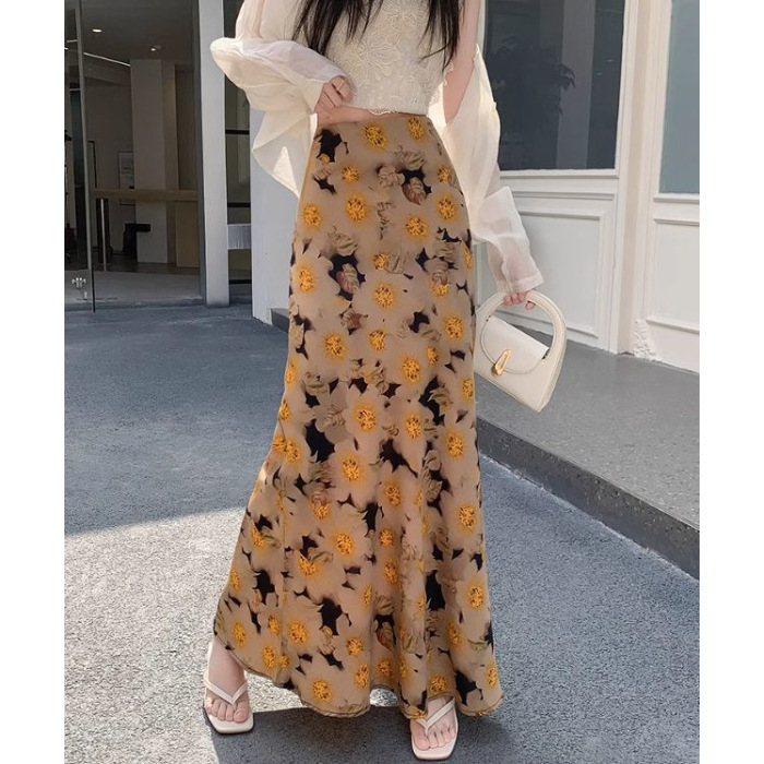 휴일 Fishtail Split 인쇄 된 쉬폰 스커트 여성의 여름 새로운 높은 허리 슬리밍 스커트 A-라인 스커트 긴 스커트 얇은