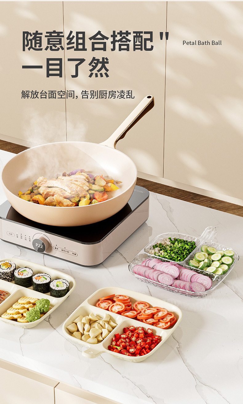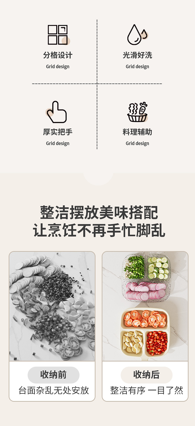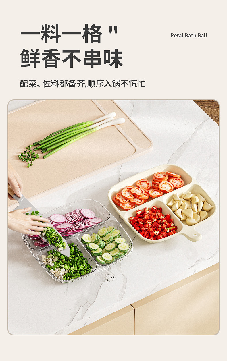 Scallion, Ginger 및 마늘 요리가 포함 된 주방 다기능 요리 준비 플레이트 스낵 플레이트 과일 플레이트 식기 높은 색상 값