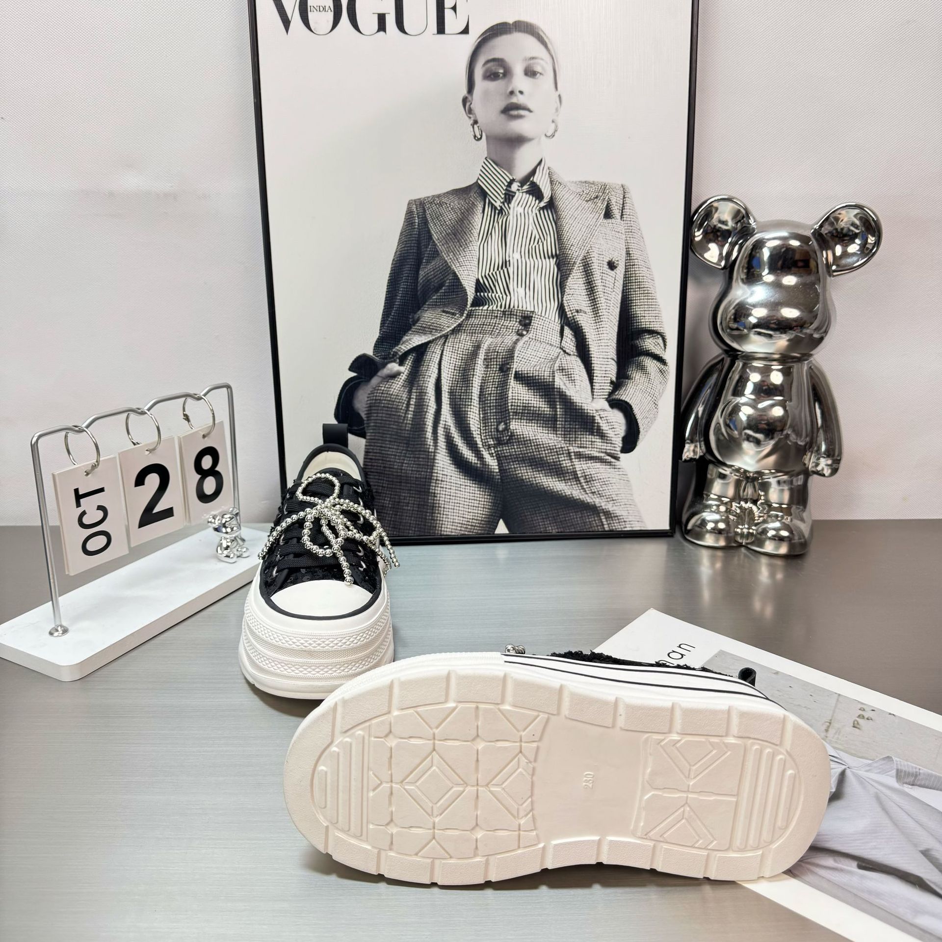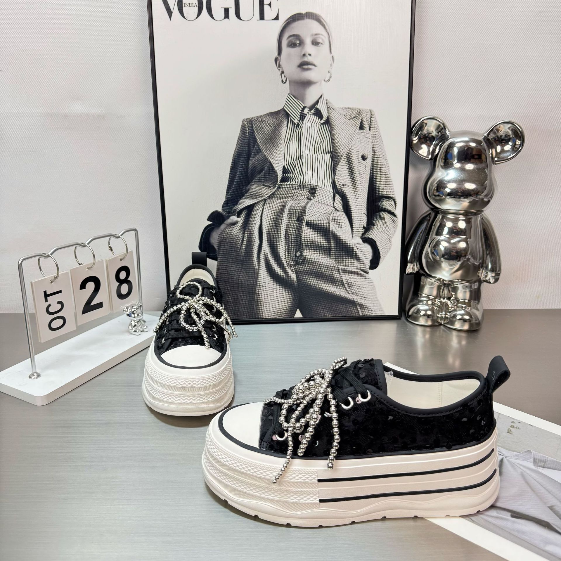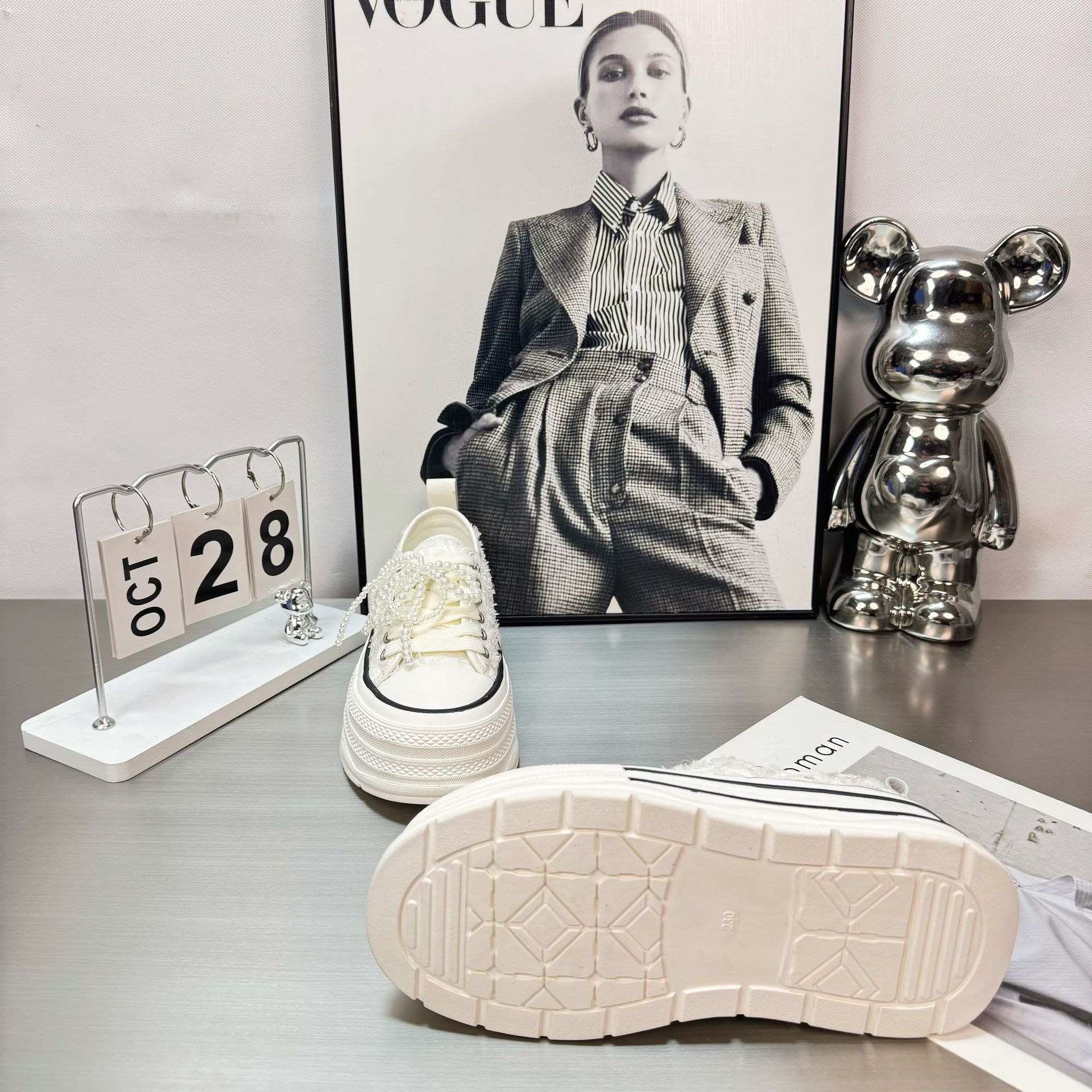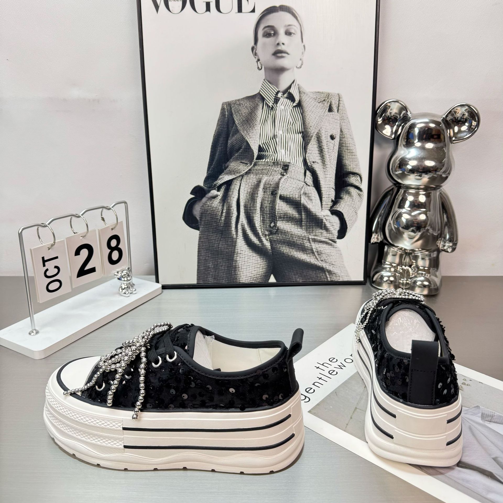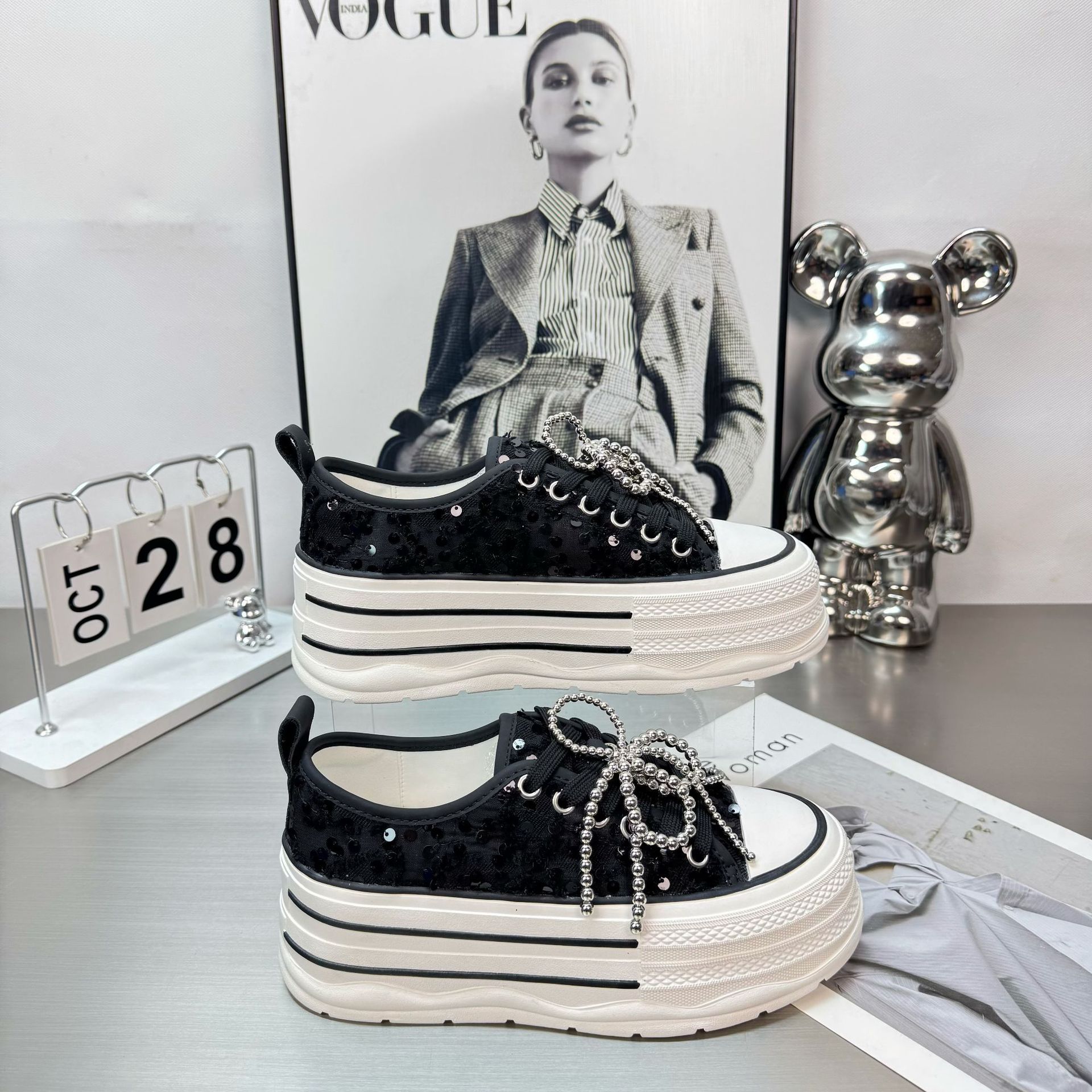 2025 봄 새로운 유럽 세퀸 캔버스 화이트 슈즈 여성 한국식 플랫폼 하이 솔 진주 캐주얼 슈즈스토어 가기