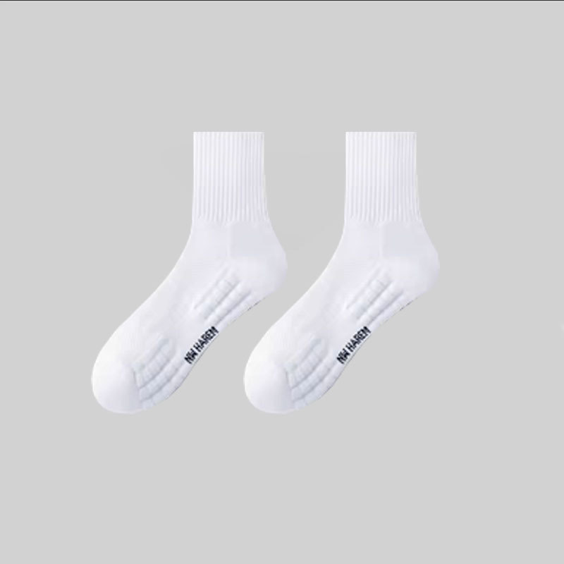 퓨어 코튼 양말 남자 스포츠 러닝 양말 미드 튜브 타월 바닥 두꺼운 농구 양말 스타킹 보이스 화이트