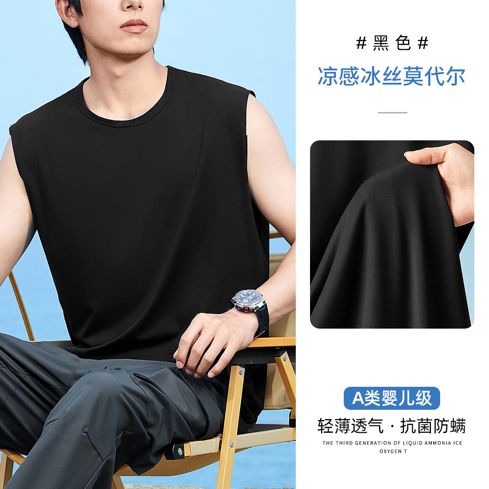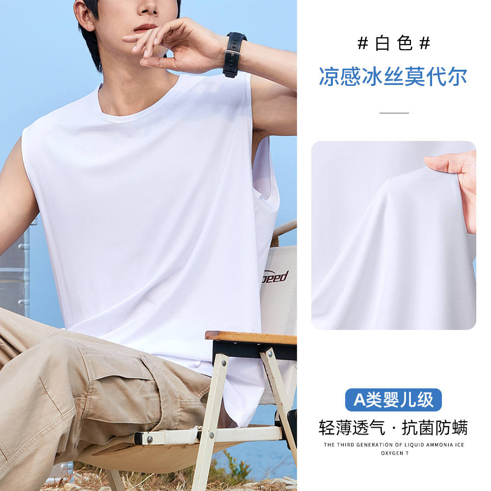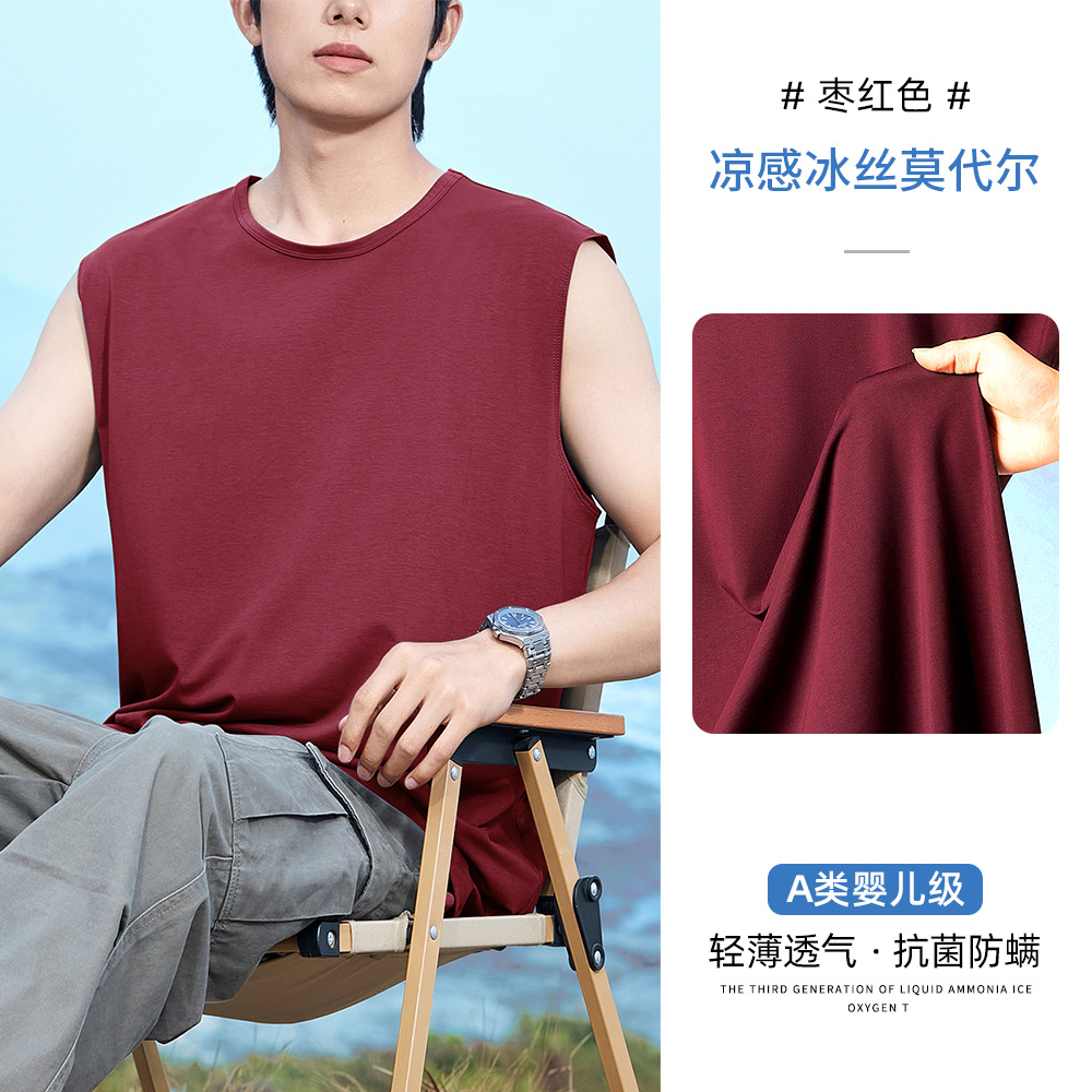 50 카운트 모달 아이스 실크 항균 조끼 남자 여름 2025 얇은 통기성 느슨한 스포츠 속건성 민소매 티셔츠