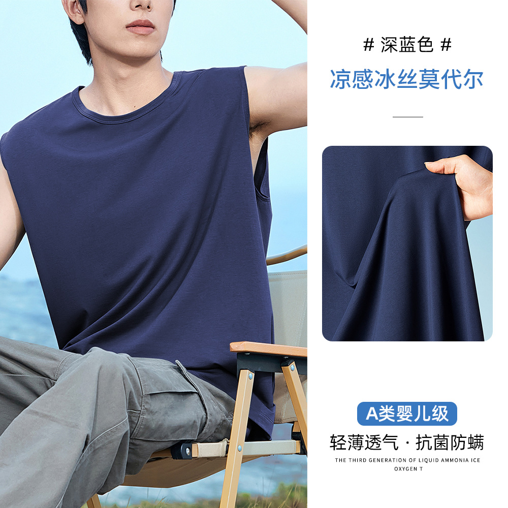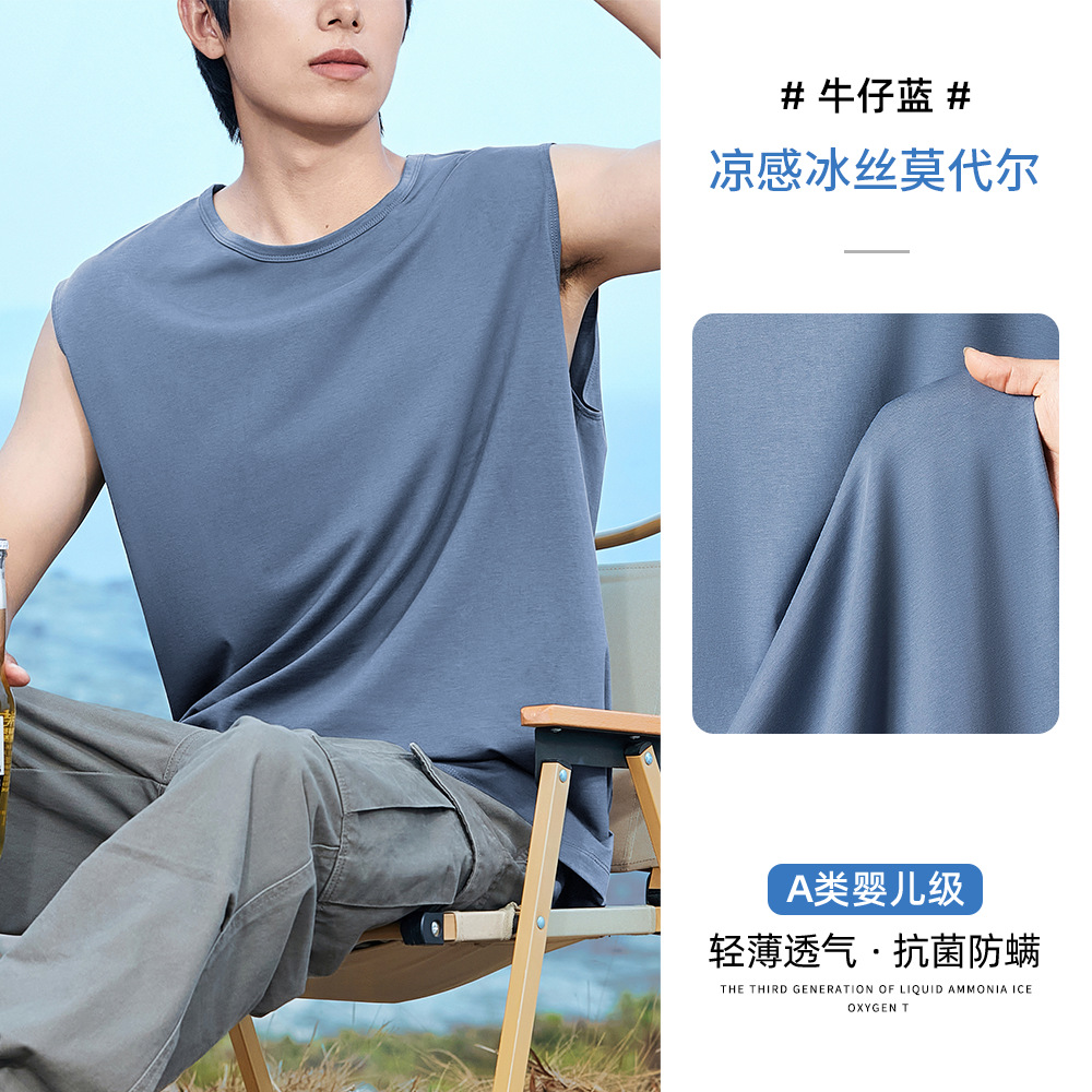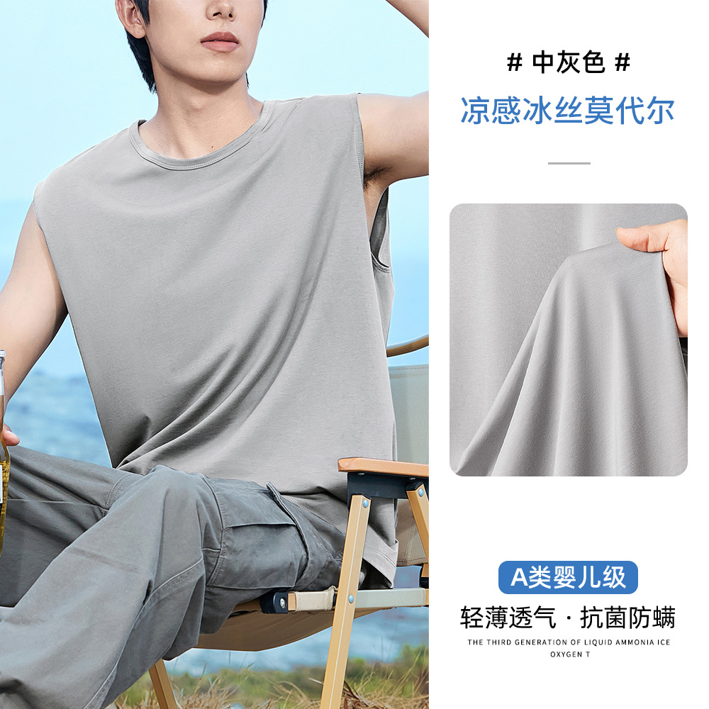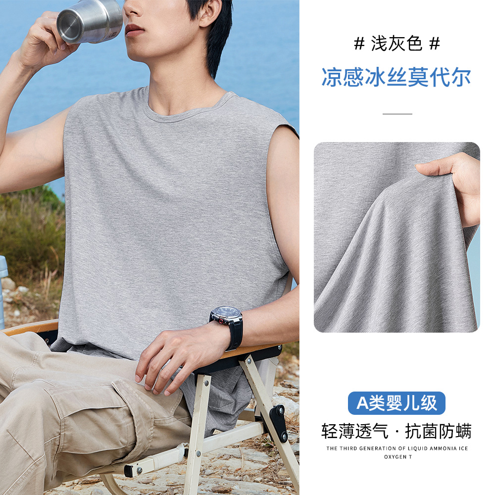 50 카운트 모달 아이스 실크 항균 조끼 남자 여름 2025 얇은 통기성 느슨한 스포츠 속건성 민소매 티셔츠