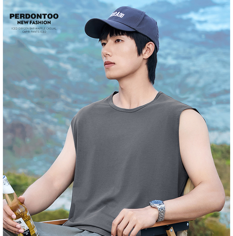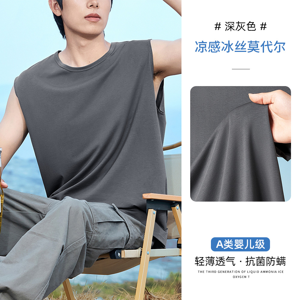 50 카운트 모달 아이스 실크 항균 조끼 남자 여름 2025 얇은 통기성 느슨한 스포츠 속건성 민소매 티셔츠스토어 가기