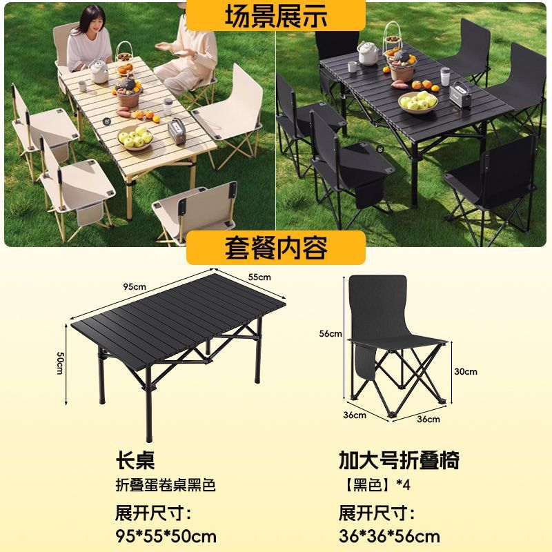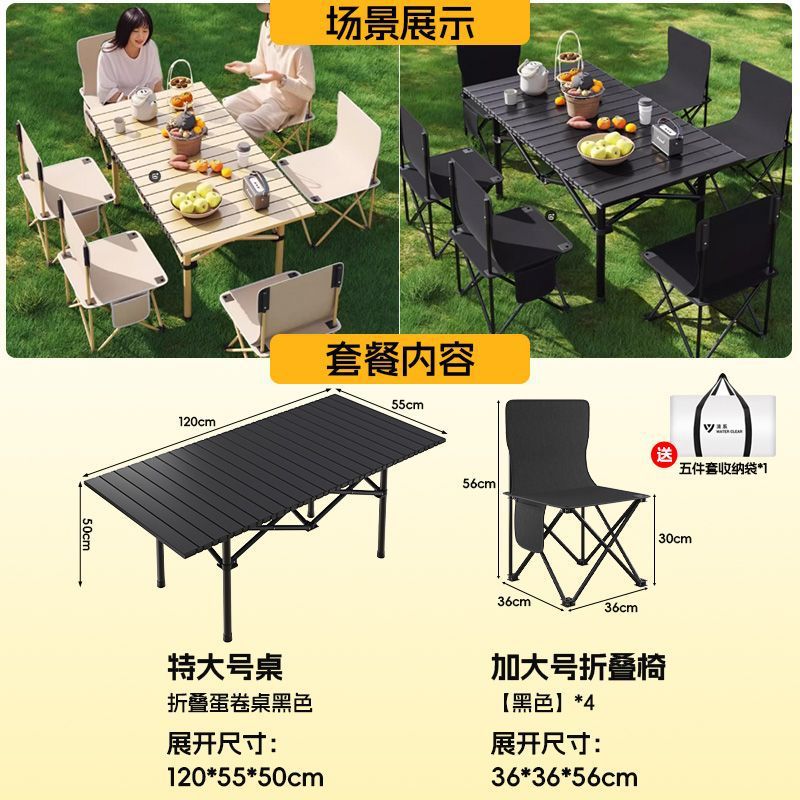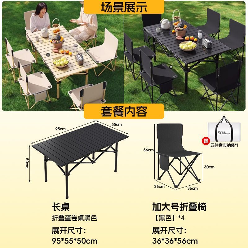 • 캠핑 접이식 테이블 우아한 블랙 118 긴 싱글 테이블 + 의자*4