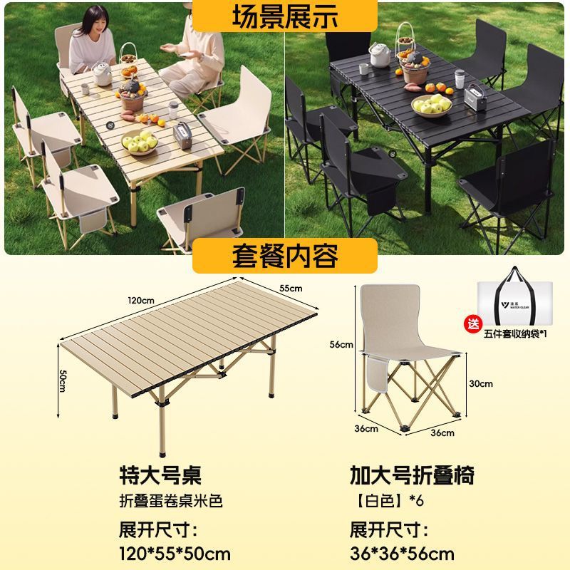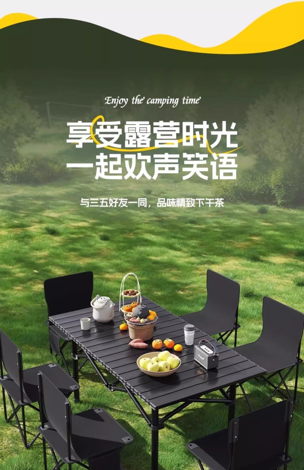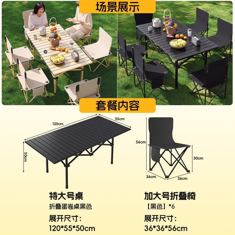 • 캠핑 접이식 테이블 우아한 블랙 118 긴 싱글 테이블 + 의자*6
