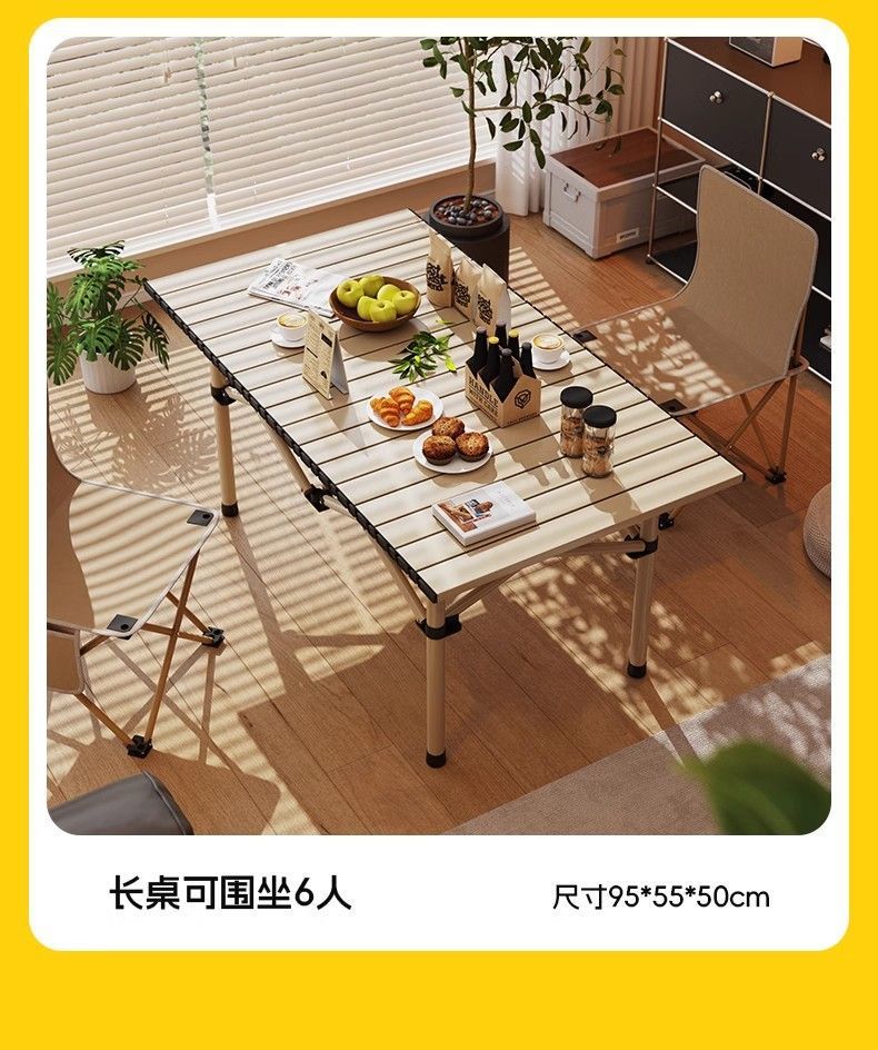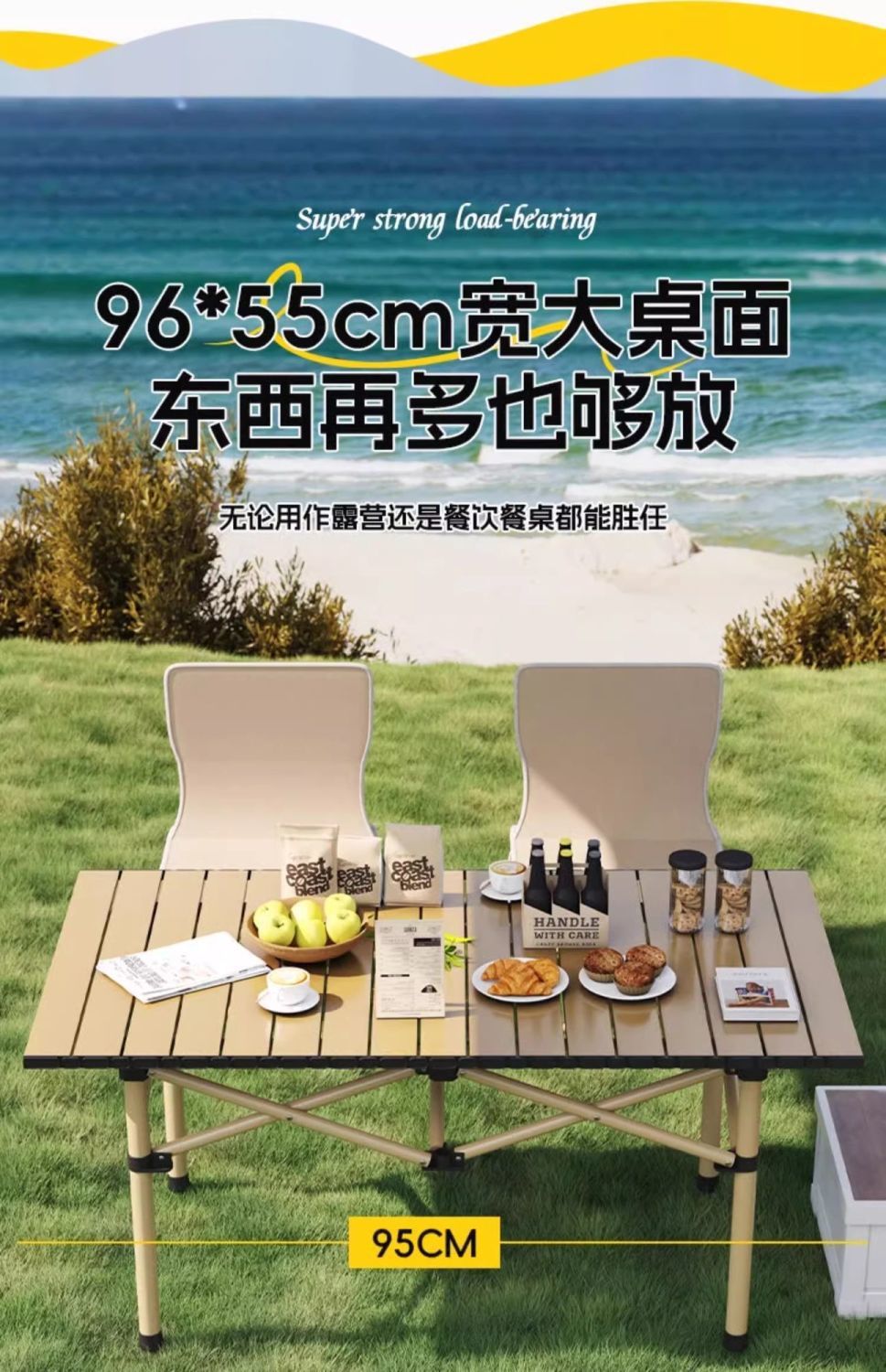 • 캠핑 접이식 테이블 샌드 옐로우 [98 롱 싱글 테이블 + 의자 * 6]