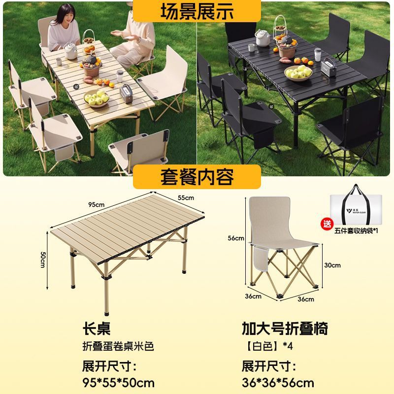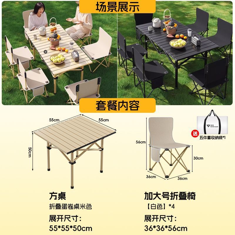 • 캠핑 접이식 테이블 샌드 옐로우 55 평방 싱글 테이블 + 의자 * 4 + 가방