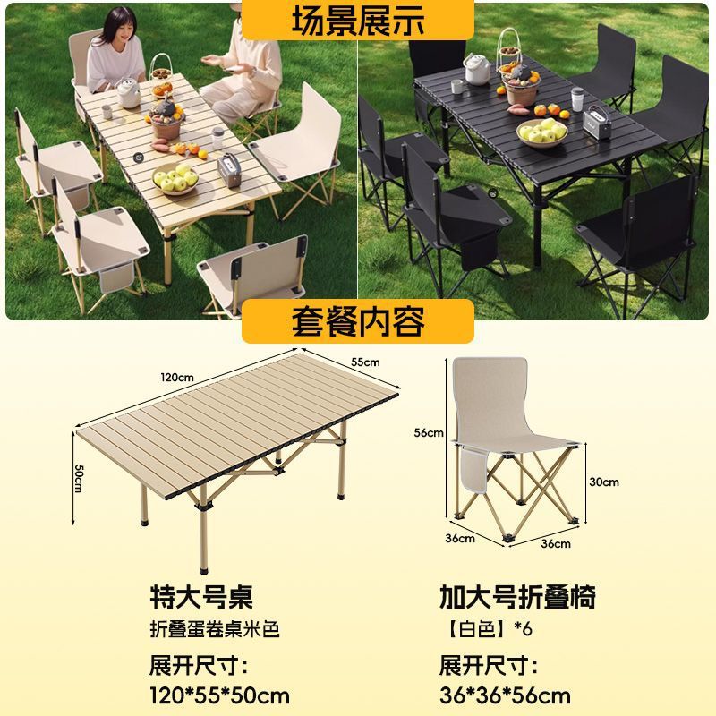 • 캠핑 접이식 테이블 샌드 옐로우 [118 롱 싱글 테이블 + 의자 * 6]