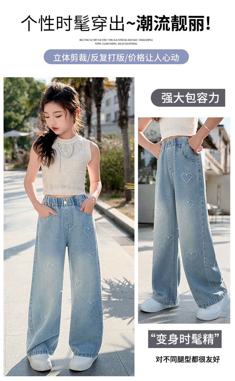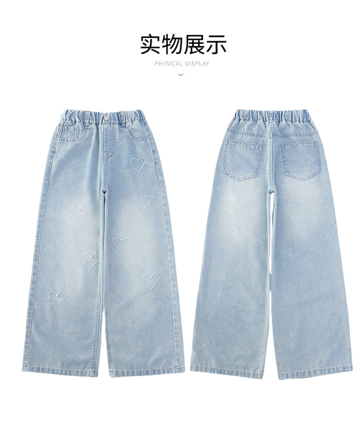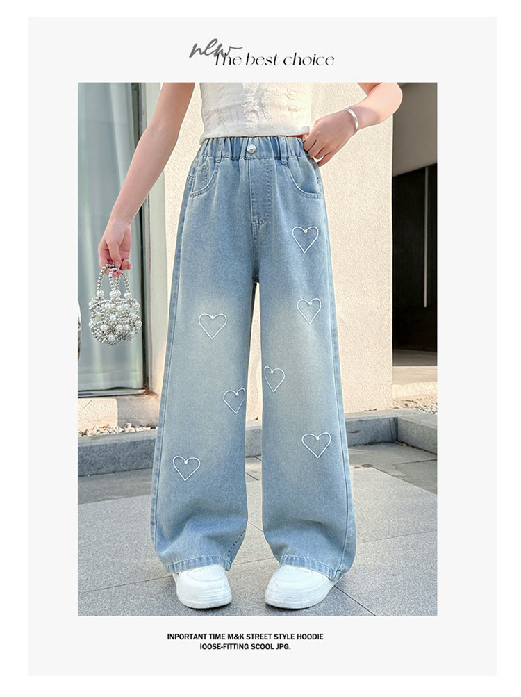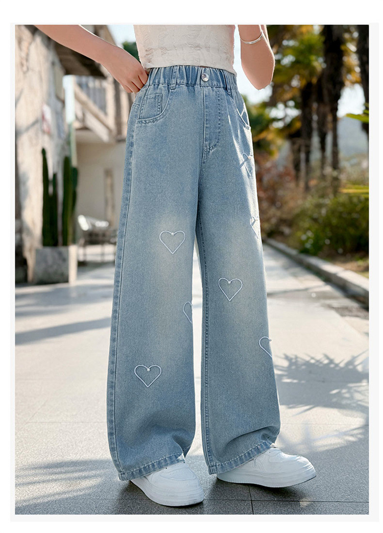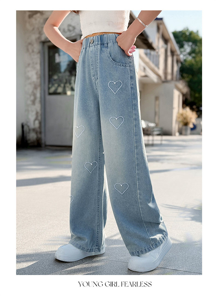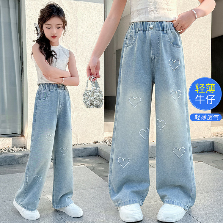 국경 도매 소녀 중통 2025 봄과 가을 서양식 구슬 사랑 넓은 다리 청바지 여름 얇은 바지스토어 가기