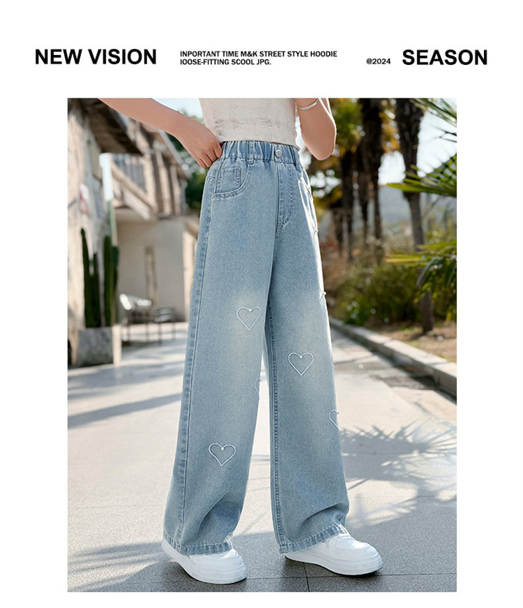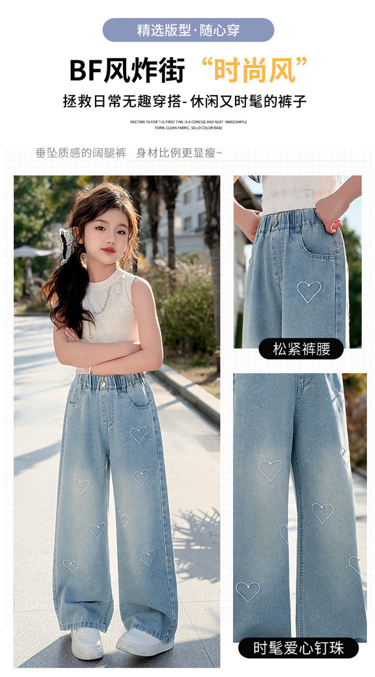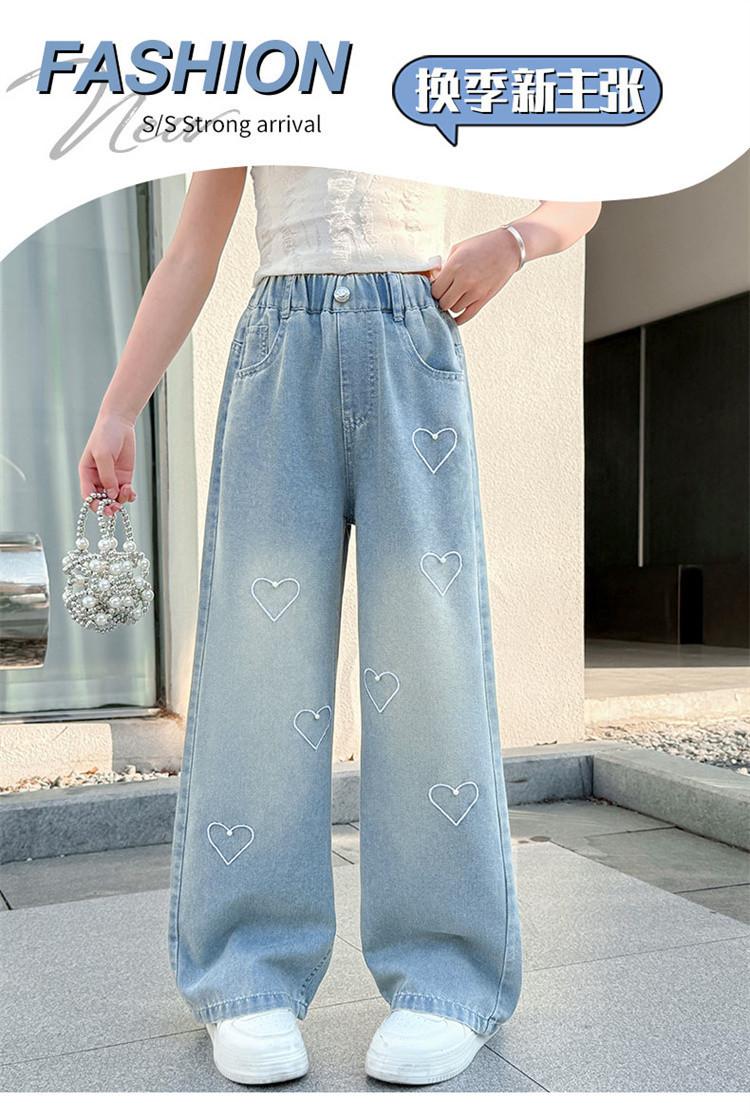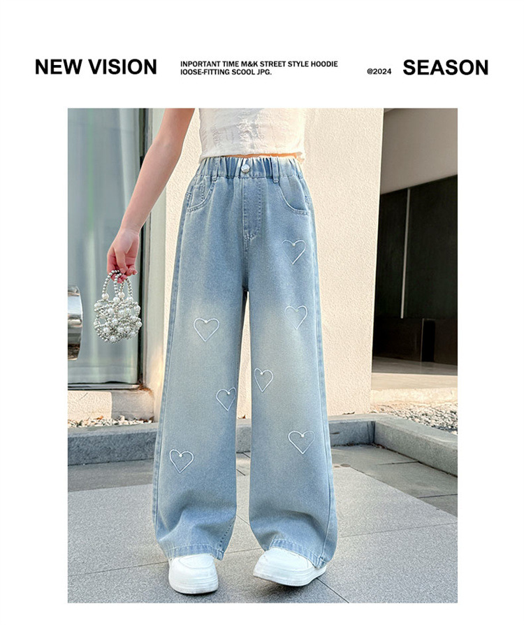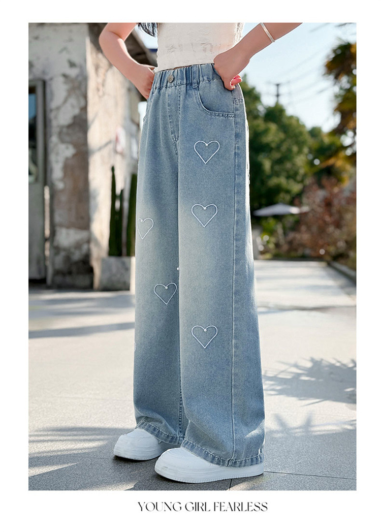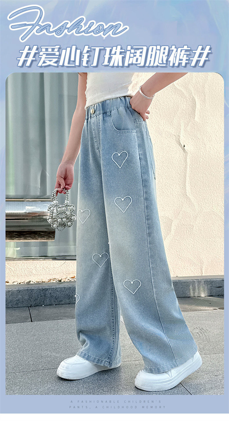 국경 도매 소녀 중통 2025 봄과 가을 서양식 구슬 사랑 넓은 다리 청바지 여름 얇은 바지