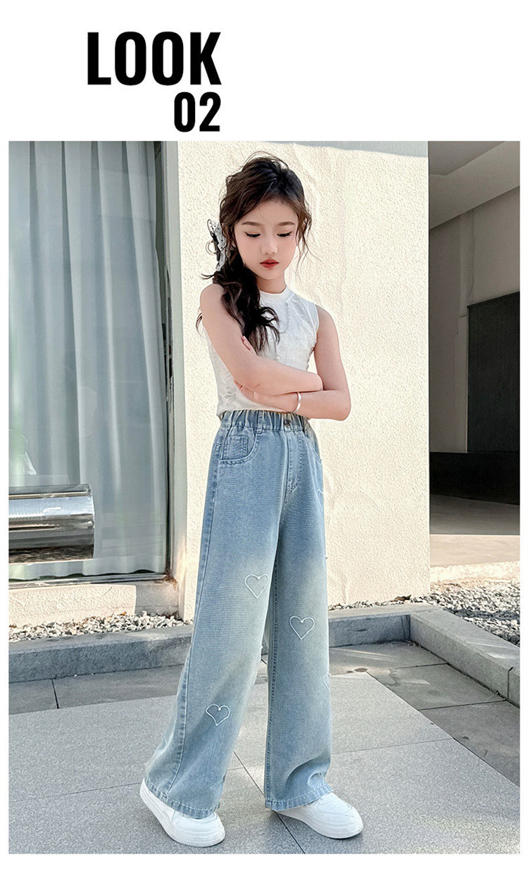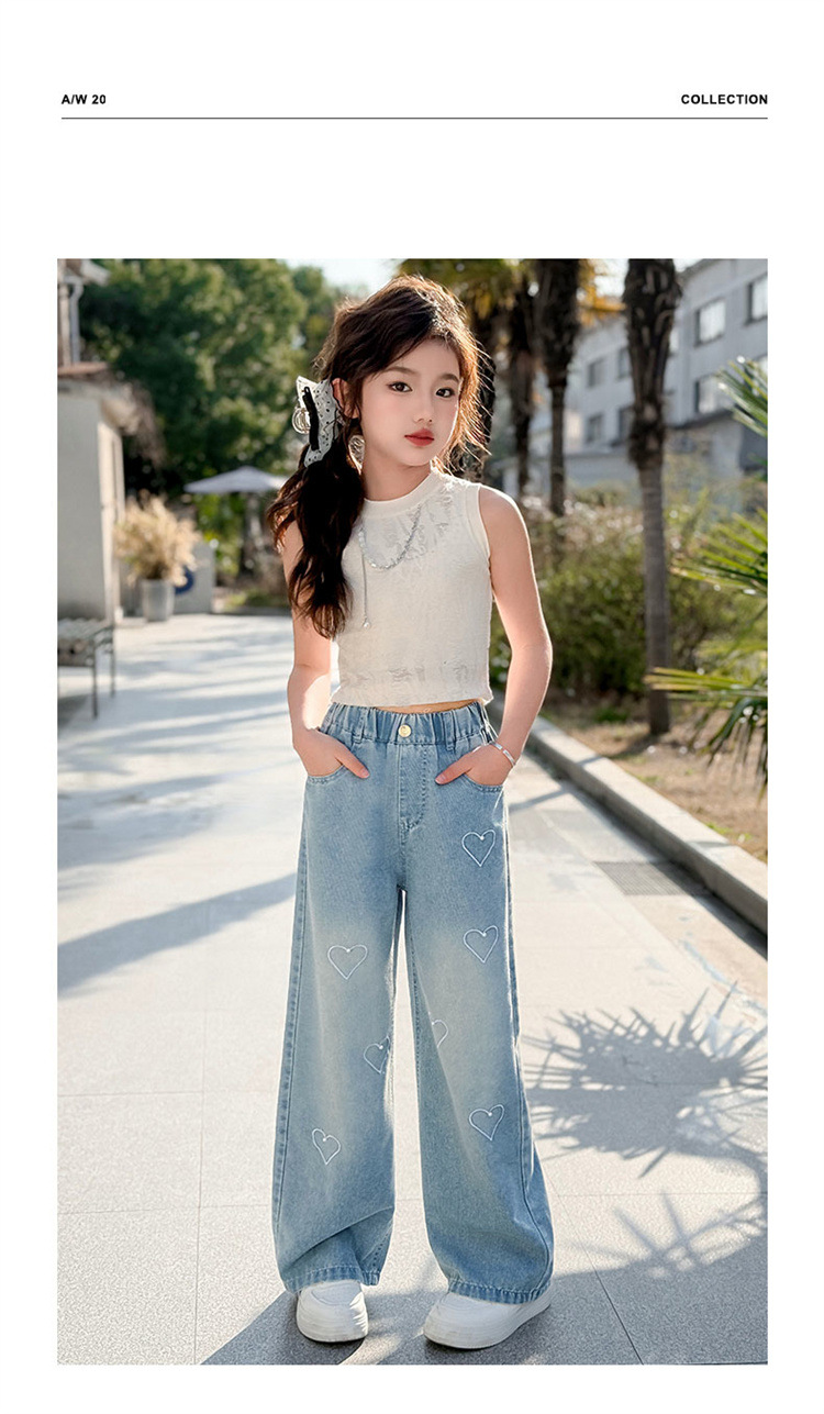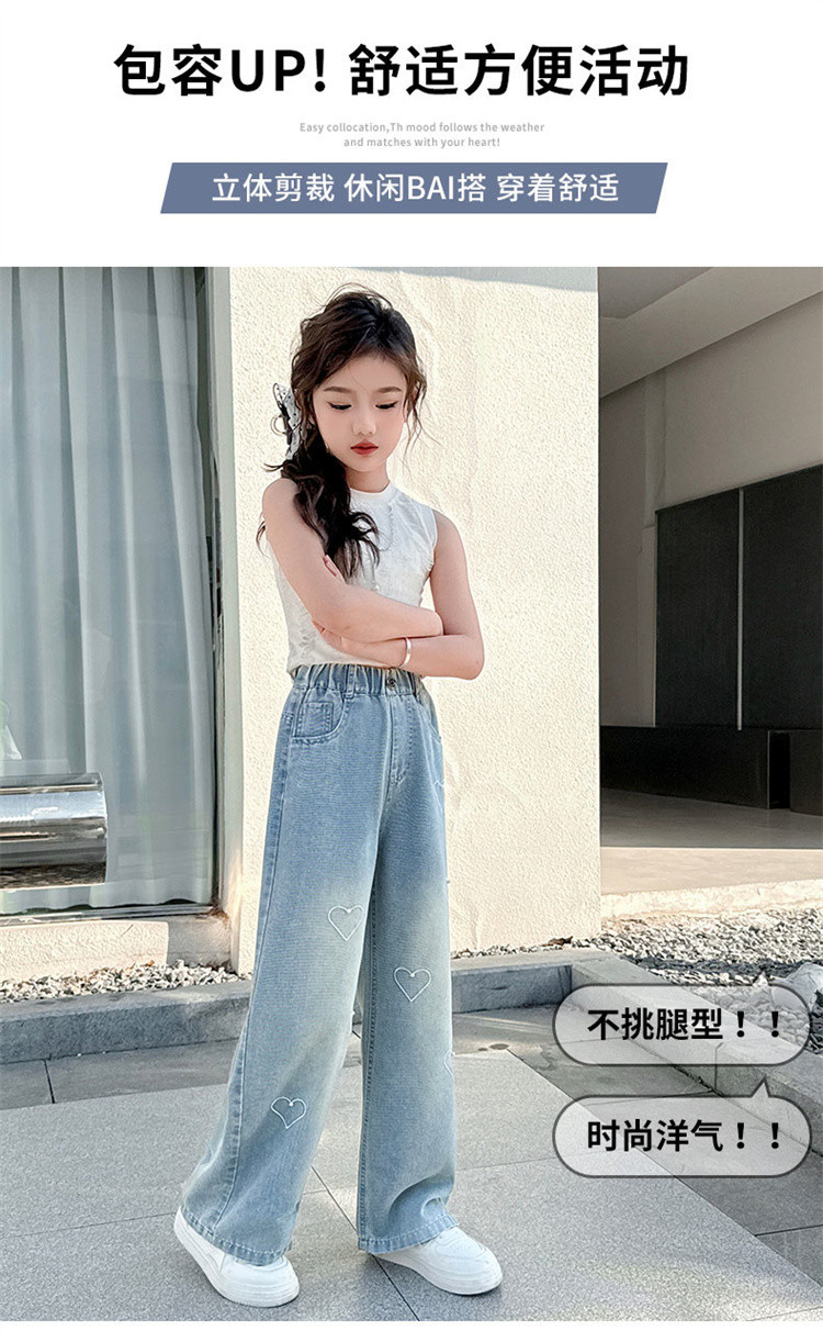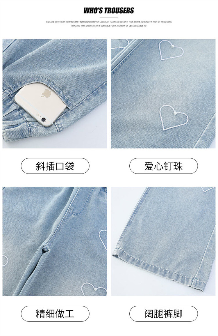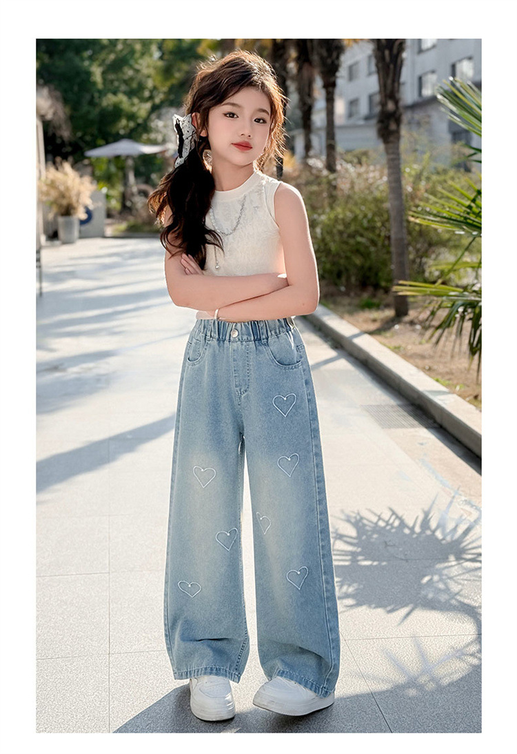 국경 도매 소녀 중통 2025 봄과 가을 서양식 구슬 사랑 넓은 다리 청바지 여름 얇은 바지