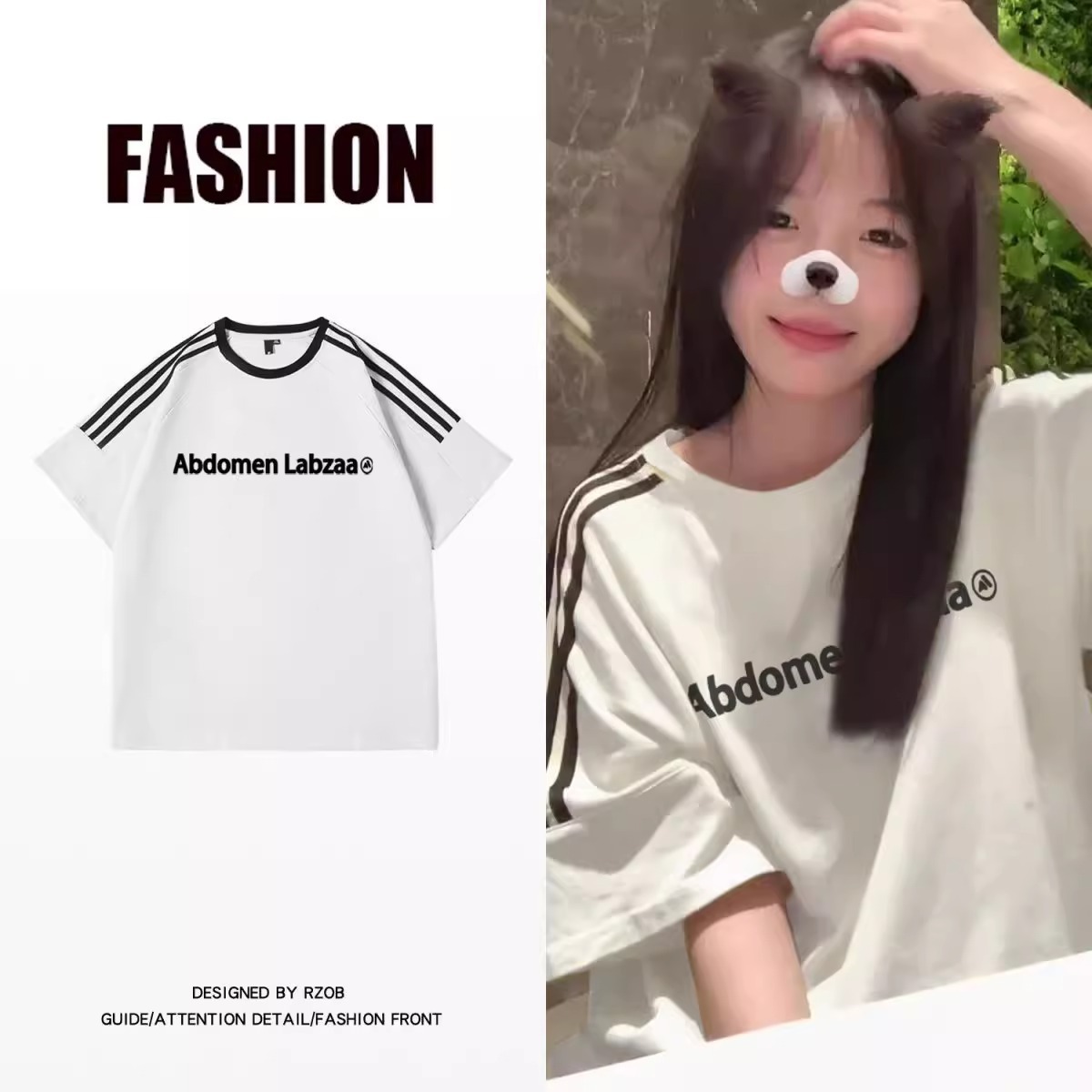 여자 2025 새로운 여름 중대형 어린이 회색 틈새 반팔 티셔츠 세 줄무늬 루즈한 대학 스타일 탑스토어 가기