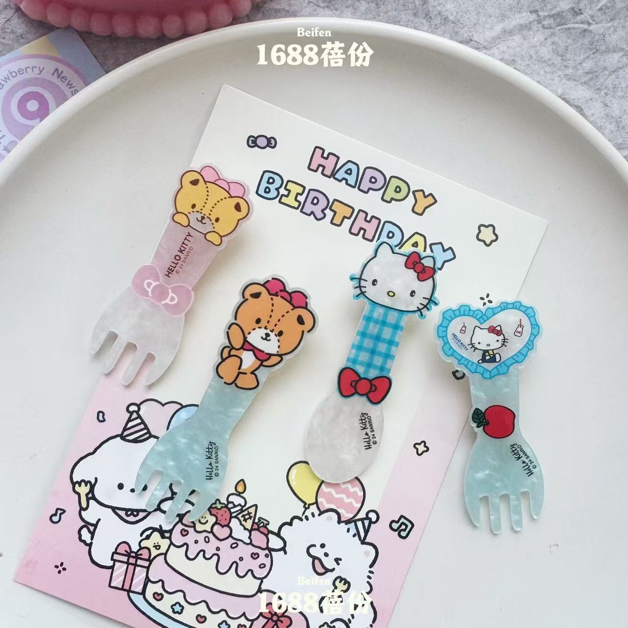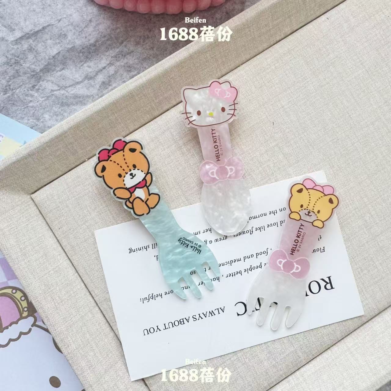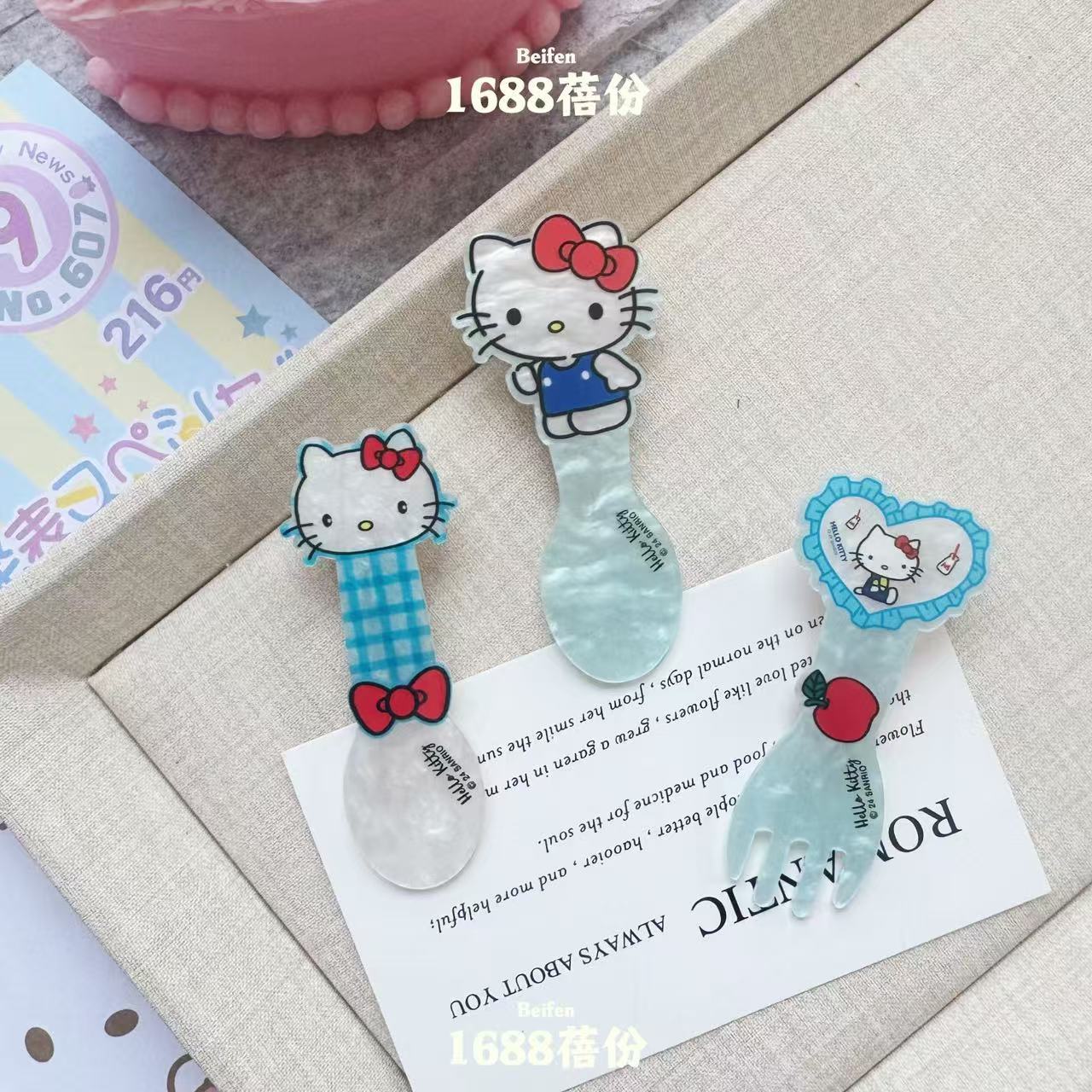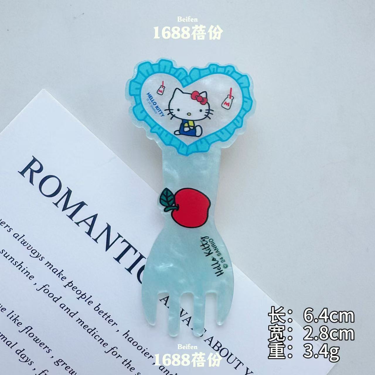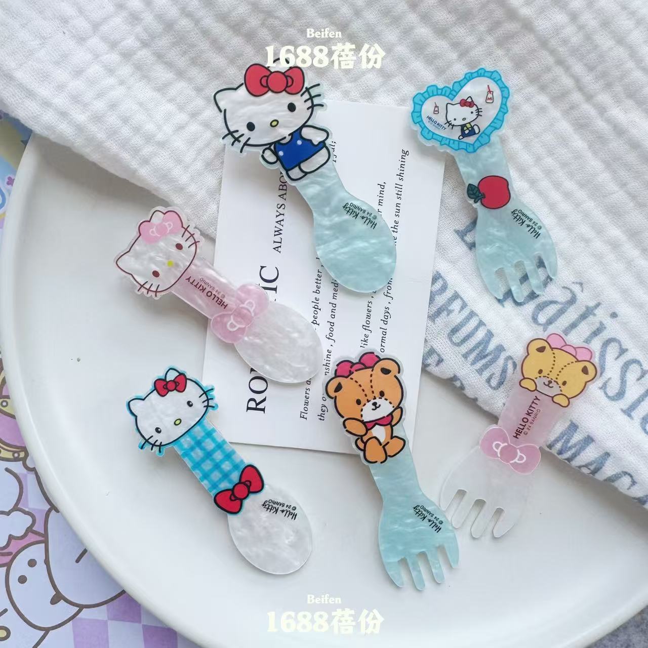 창조적 인 만화 고양이 숟가락 포크 헤어핀 재미 귀여운 어린이 덕빌 클립 소녀의 심장 뱅이 사이드 클립 헤어 액세서리스토어 가기