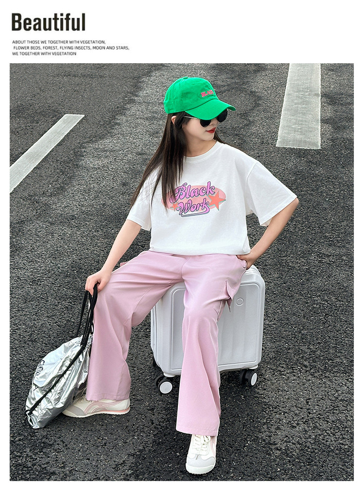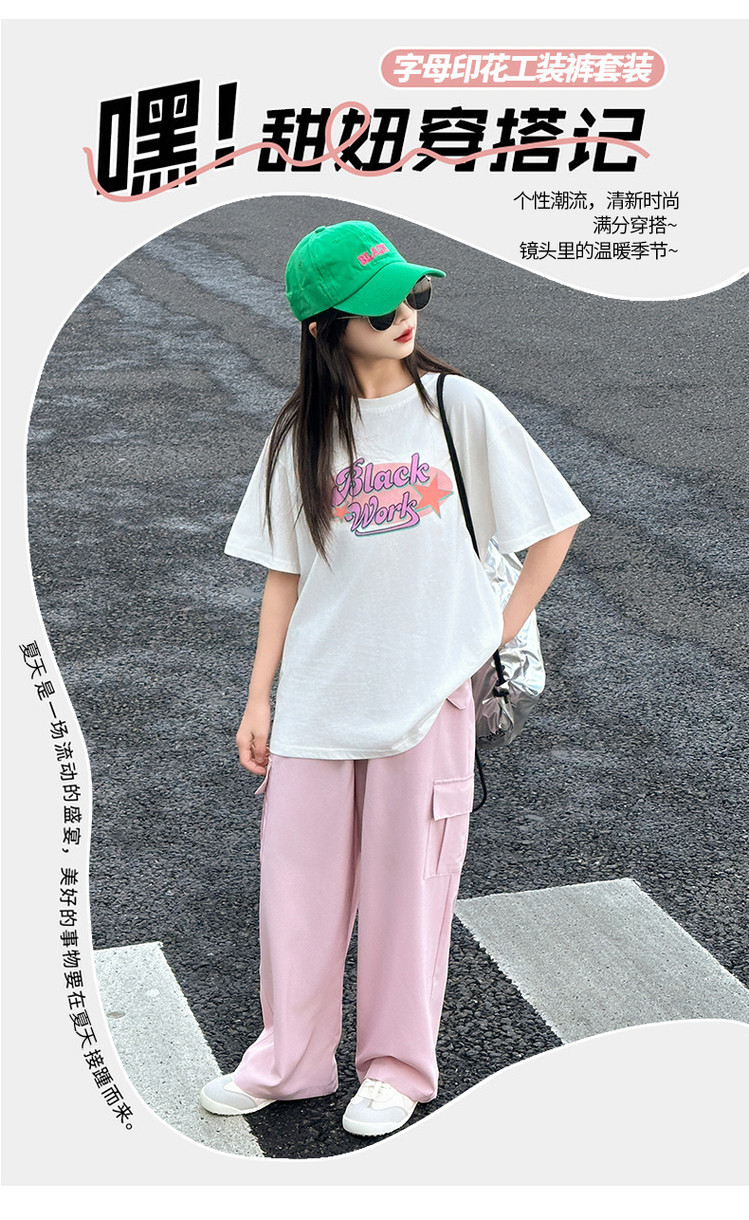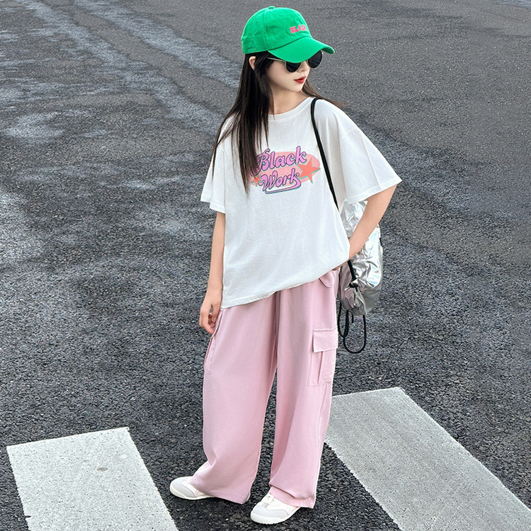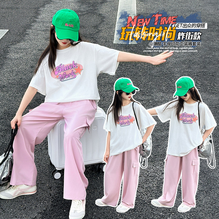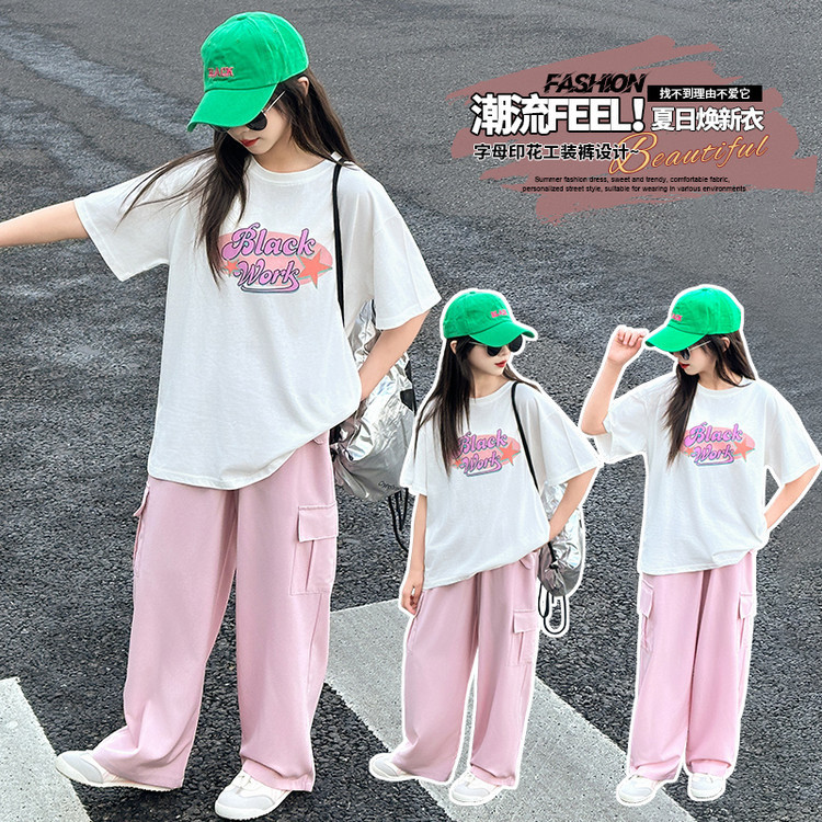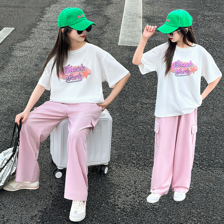 소녀 여름 세트 2025 새로운 어린이 여름 얇은 반팔 어린이 세련된 패션 크레인 바지 투피스 세트스토어 가기