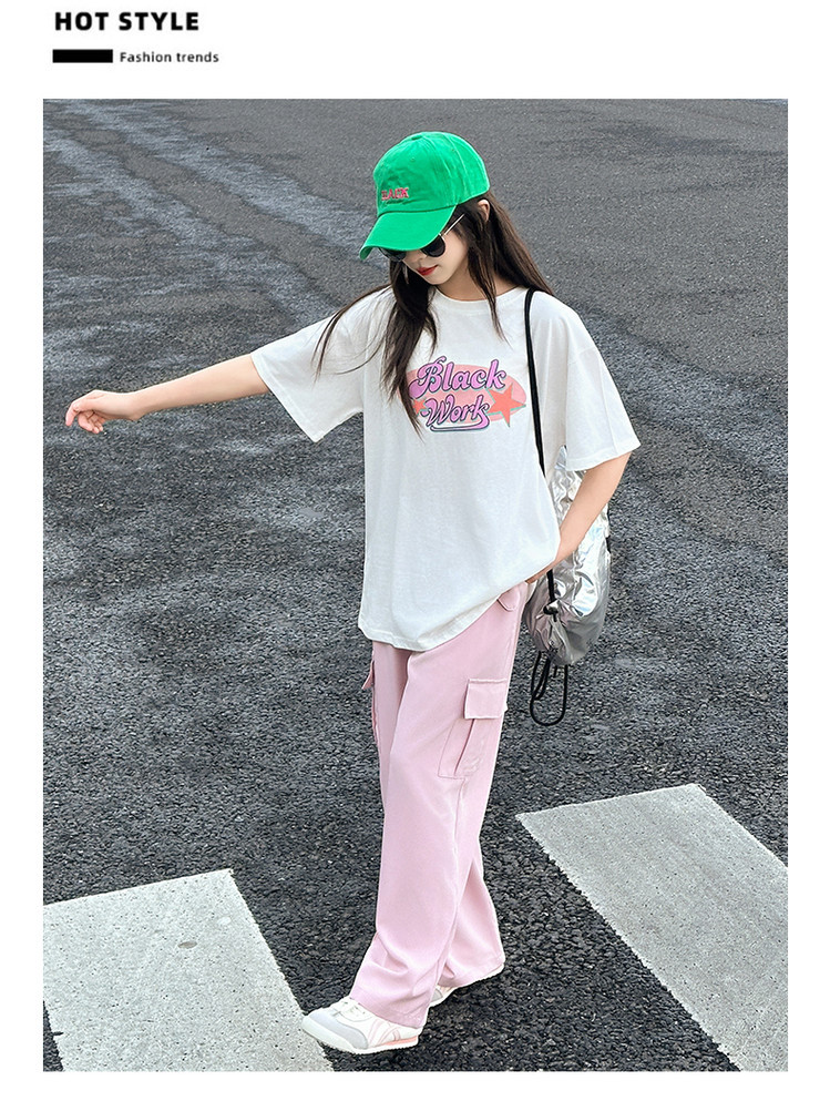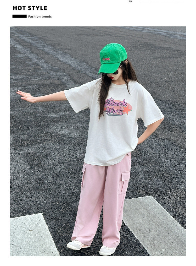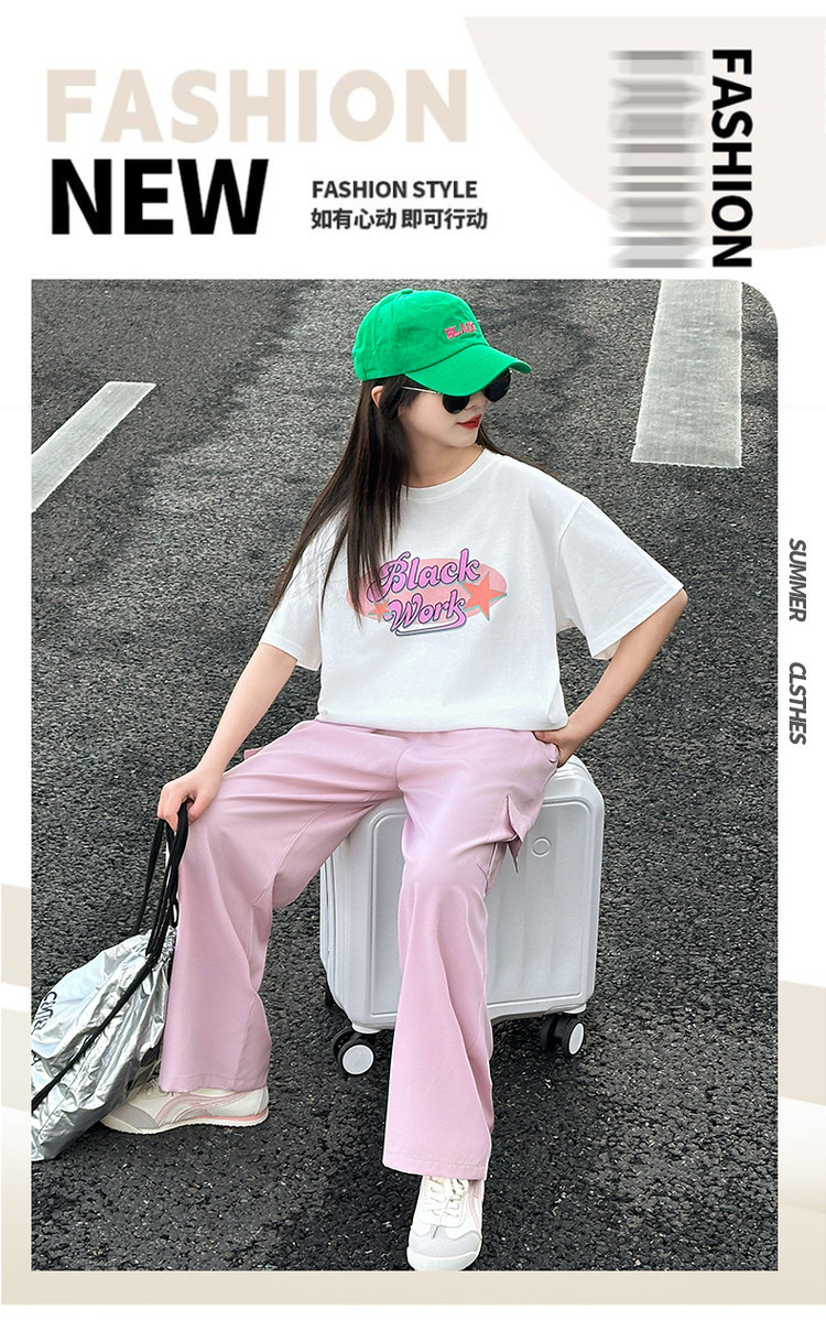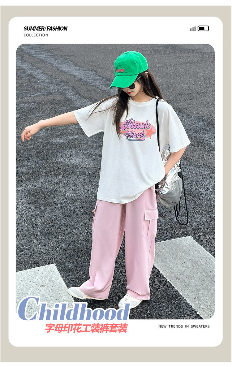 소녀 여름 세트 2025 새로운 어린이 여름 얇은 반팔 어린이 세련된 패션 크레인 바지 투피스 세트스토어 가기
