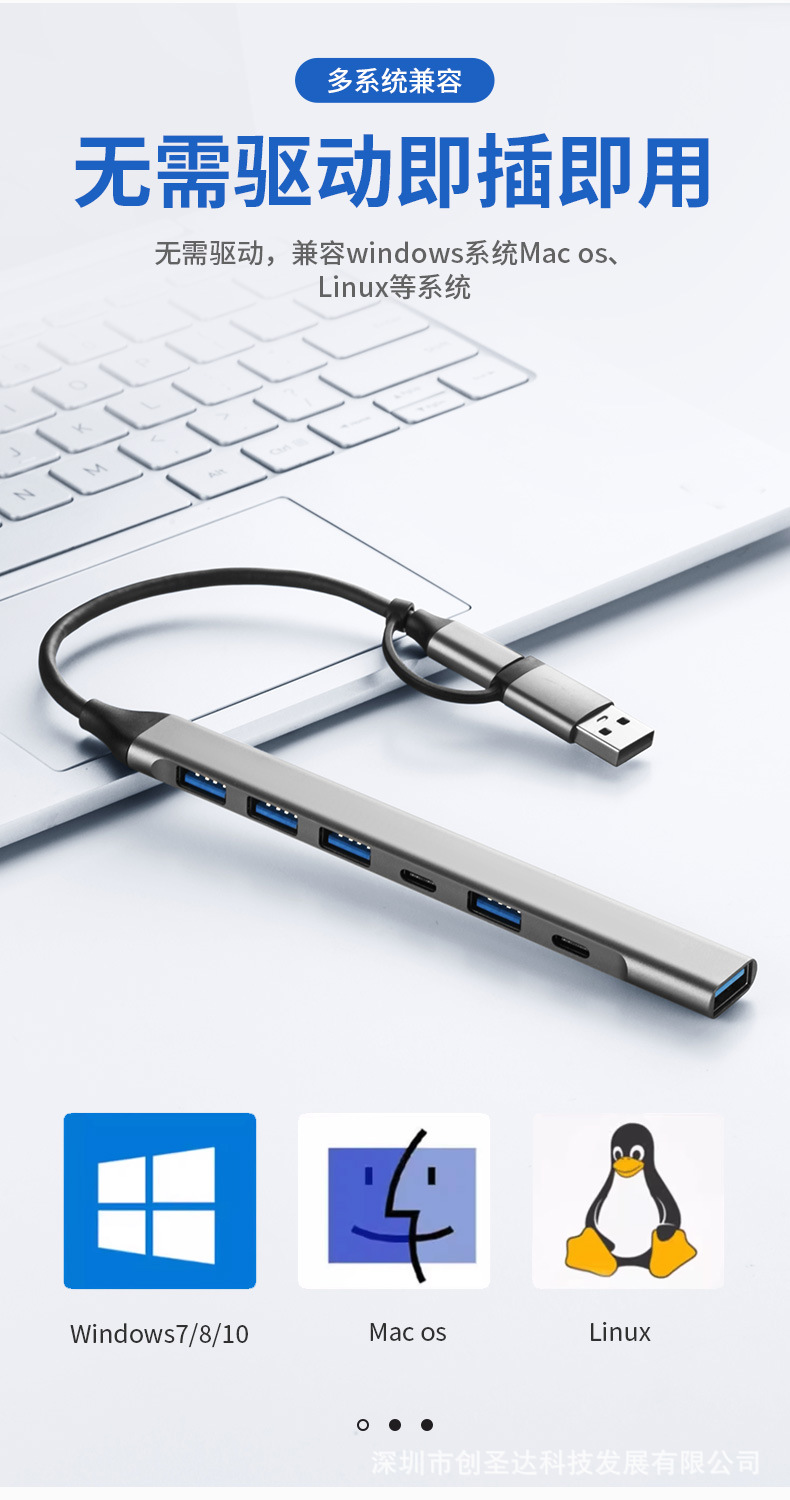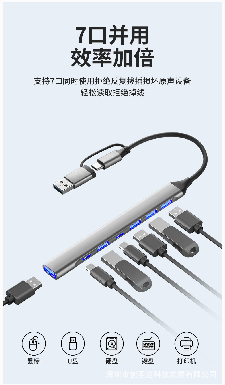 • 더블 헤드 7포트 허브(C 포트 2개 포함)