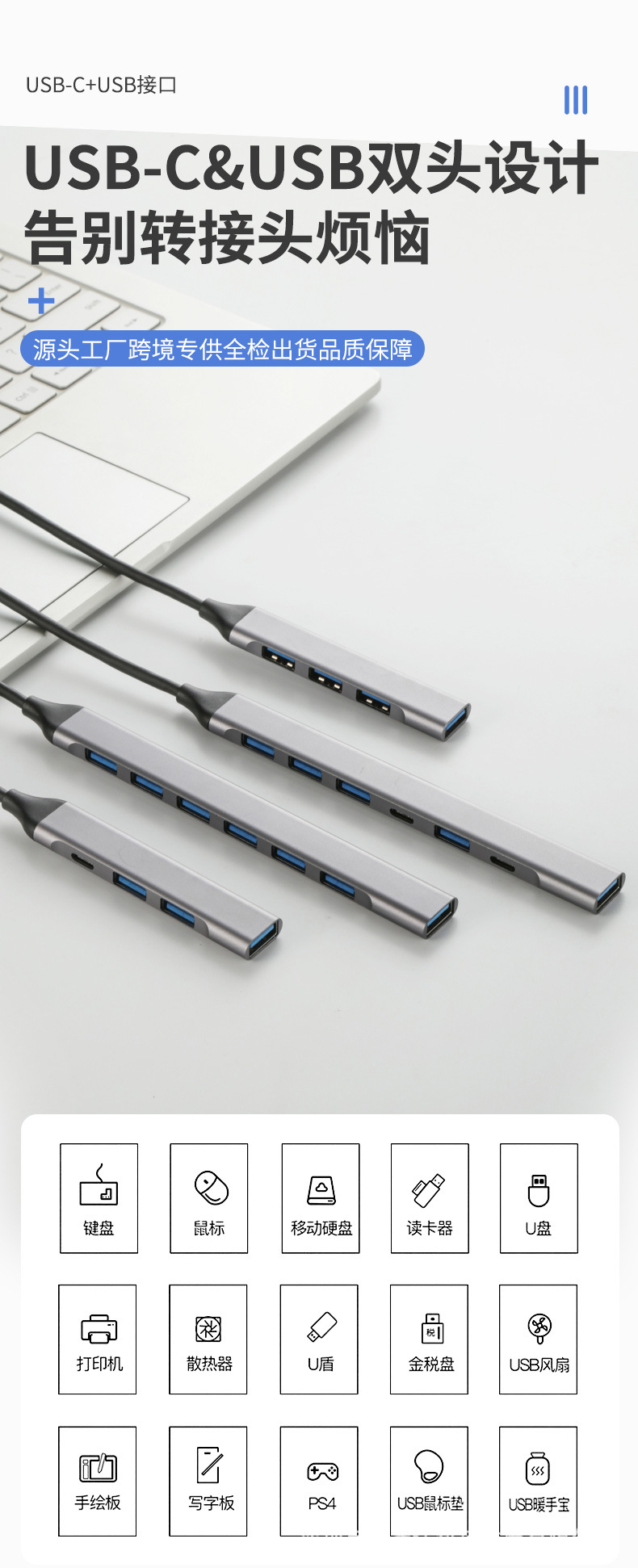 국경 간 핫 셀러 USB 익스텐더 확장 플러그 멀티 포트 스플리터 typec 어댑터 hub3.0 어댑터 u 디스크스토어 가기