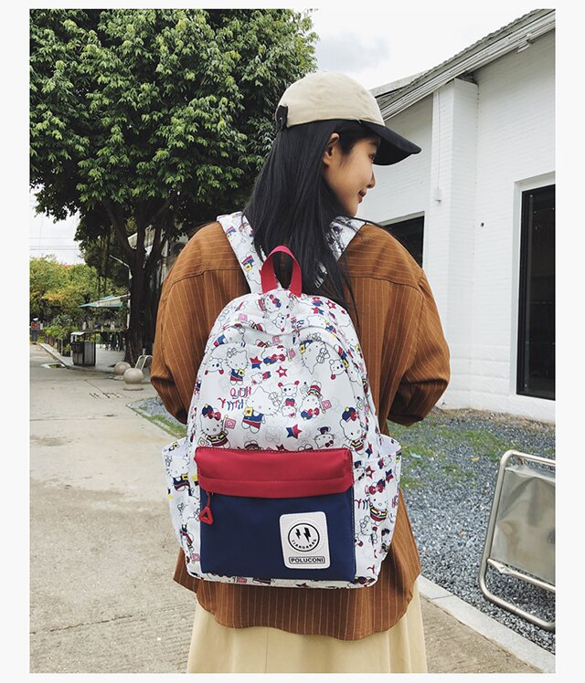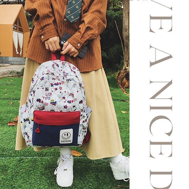 캠퍼스 스타일, 귀엽고 트렌디한 틈새 시장, 다용도 책가방, 프린트 그래피티 학생 여학생 백팩, 가볍고 대용량 백팩
