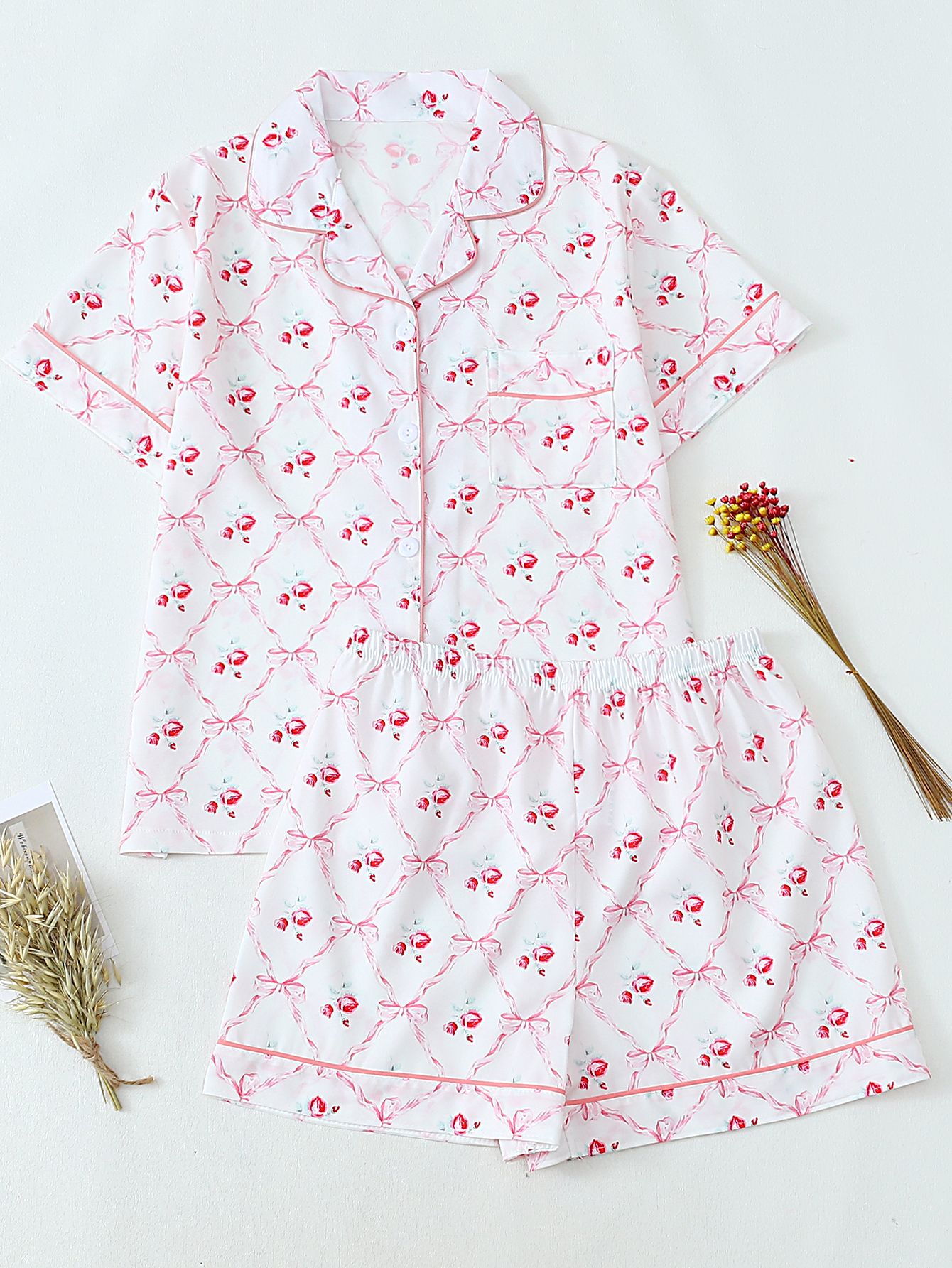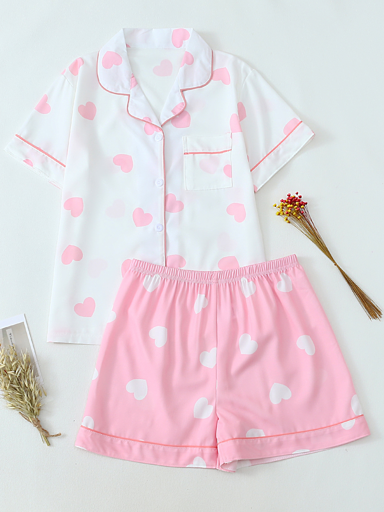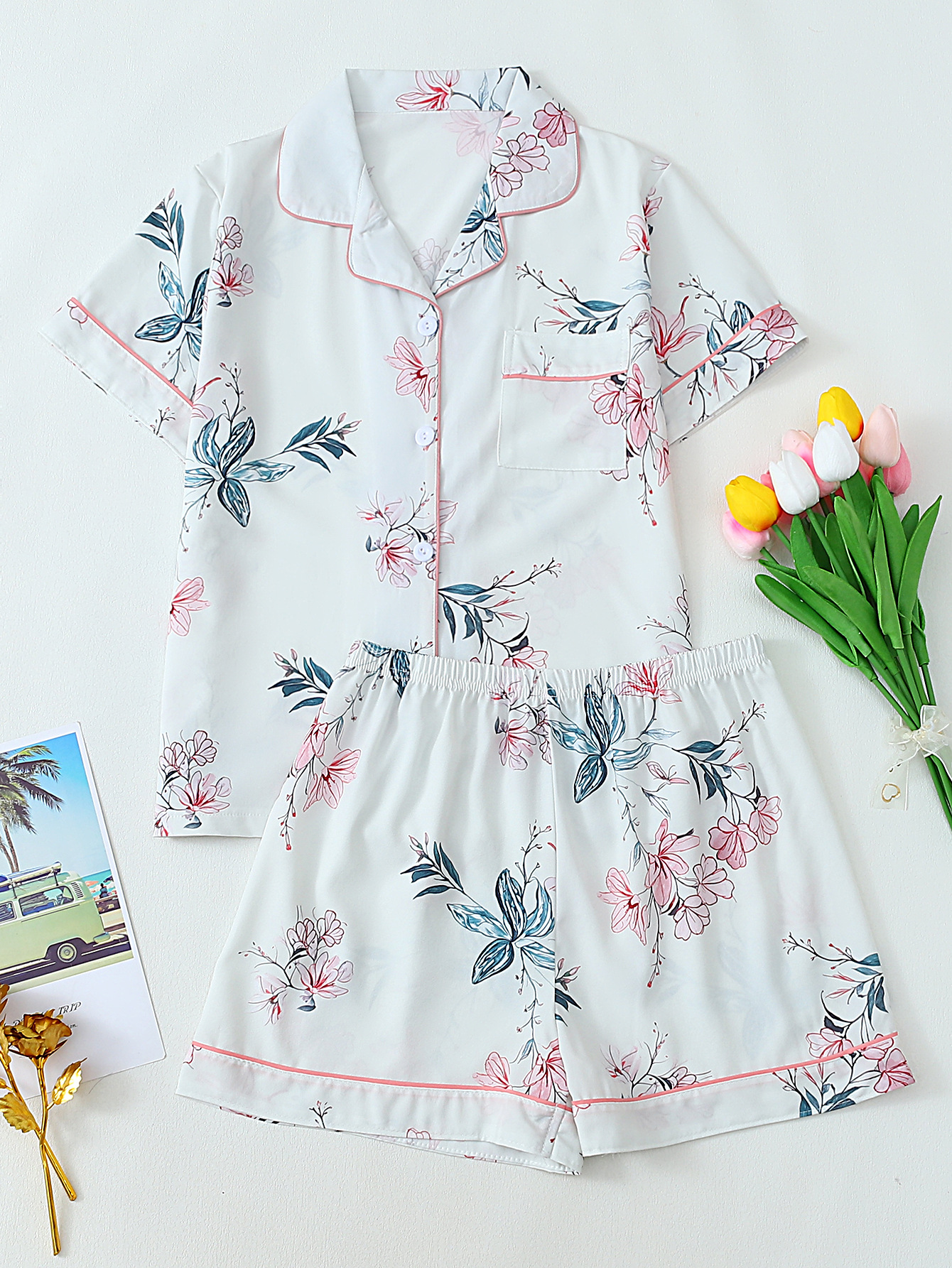 크로스-국경 느슨한 캐주얼 카디건 파자마 유럽과 미국의 패션 디자인 센스 멀티 컬러 인쇄 반팔 반바지 투피스 세트 여성스토어 가기