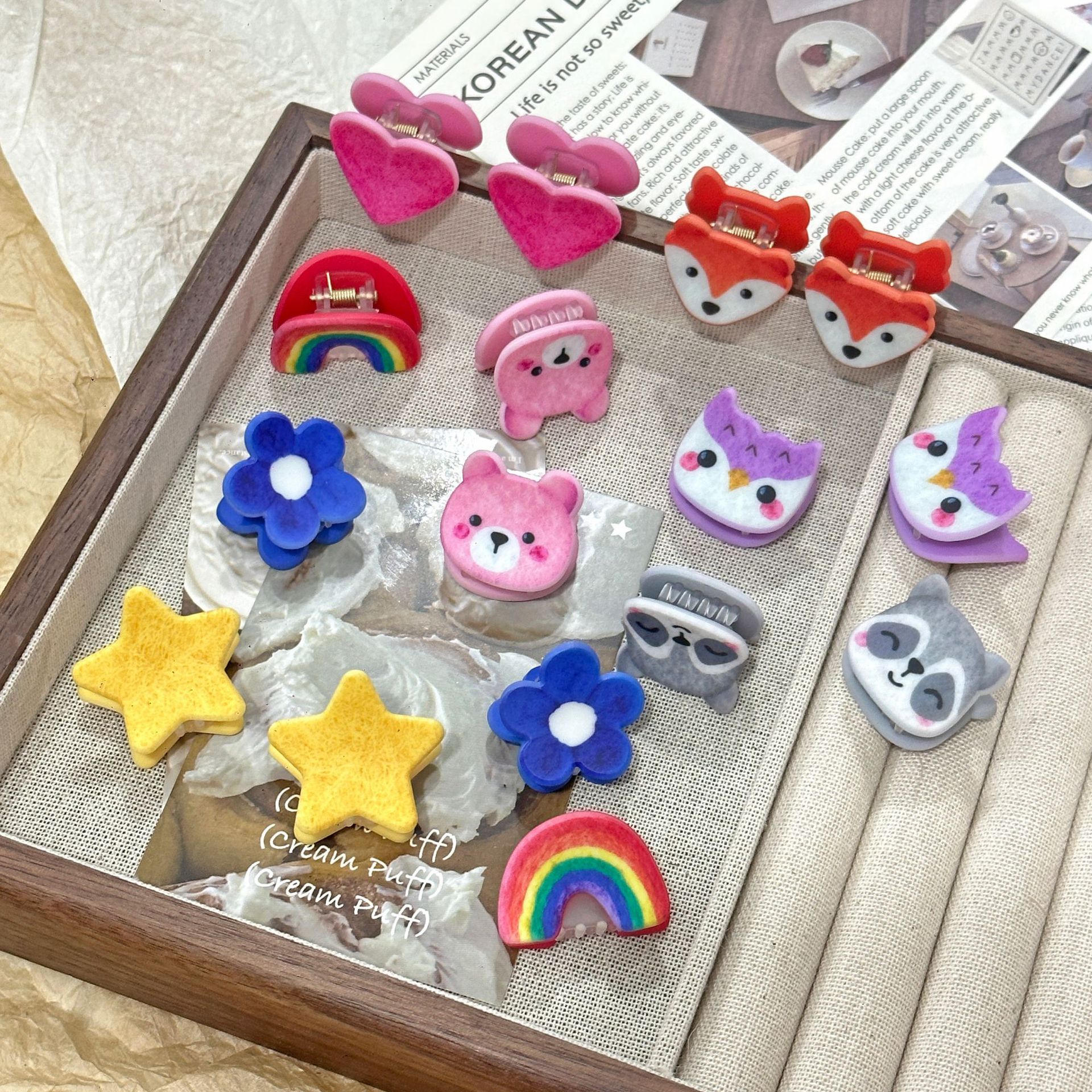 귀여운 만화 동물 레인보우 그랩 클립 폭스 베어 모양 어린이 작은 잡아 클립 깨진 머리 프린지 헤어 액세서리