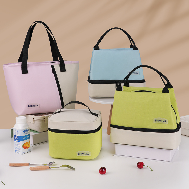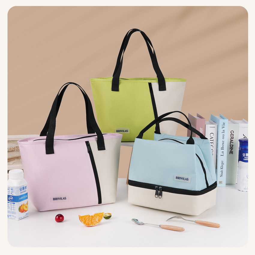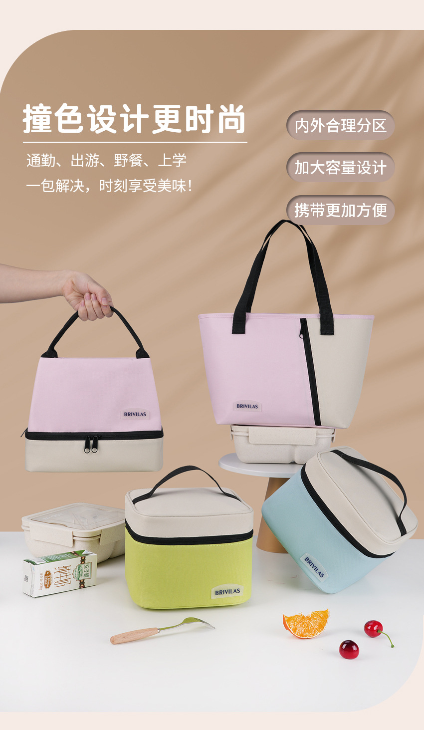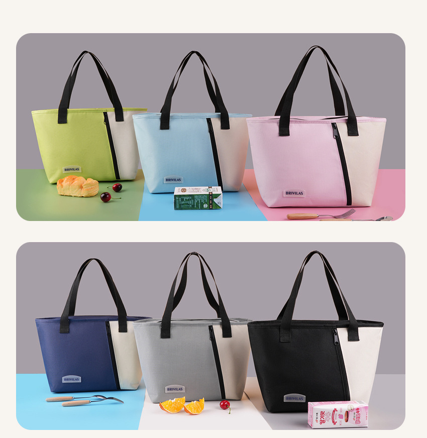 도파민 색상 일치 휴대용 열 보존 가방 간단한 유행 손 운반 점심 보관 가방 휴대용 도시락 열 보존 가방