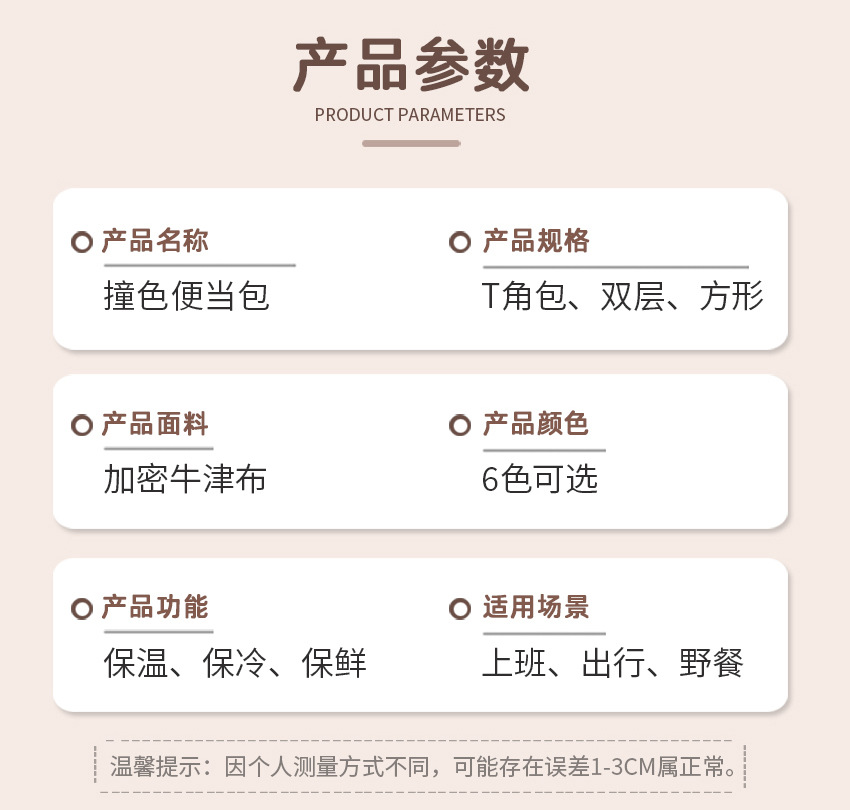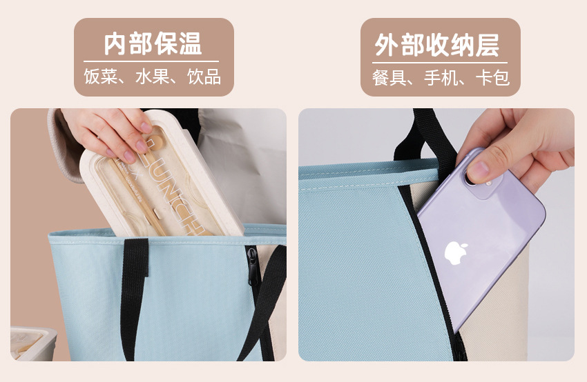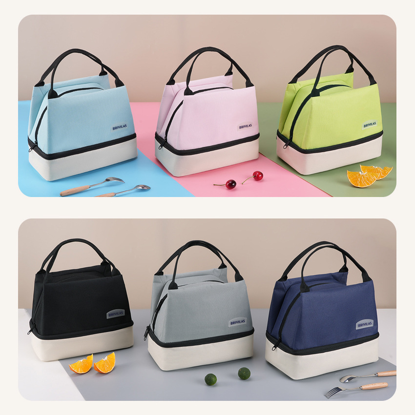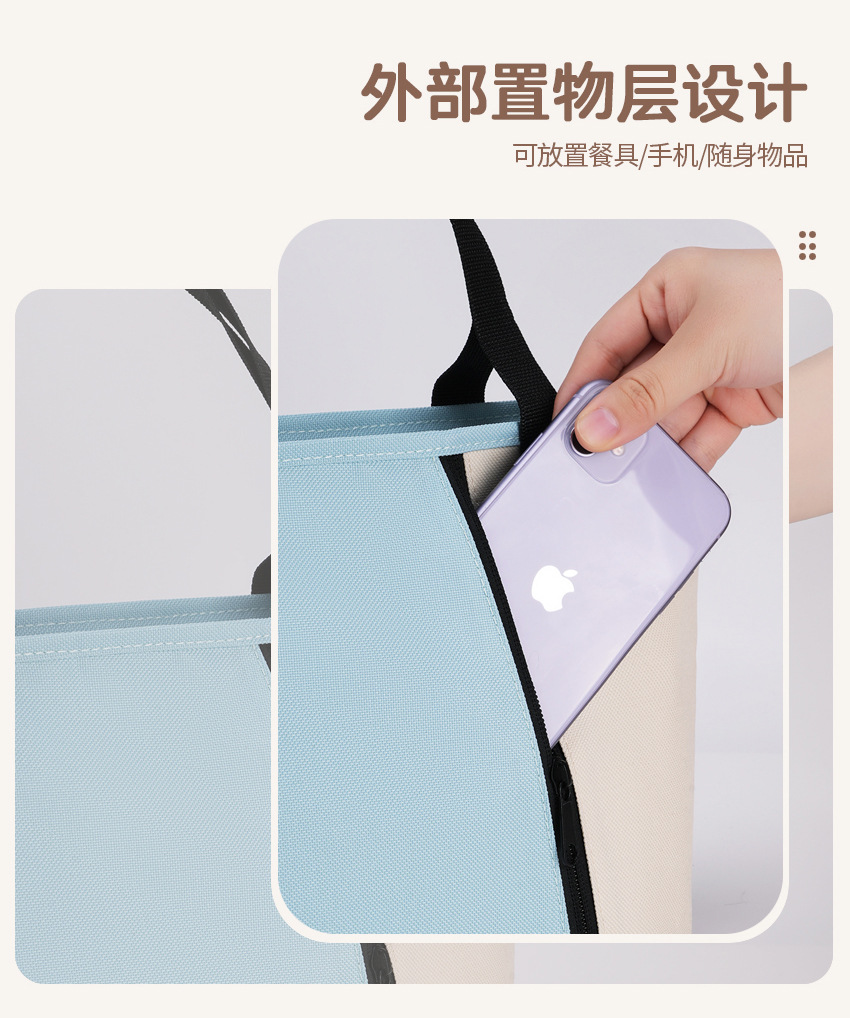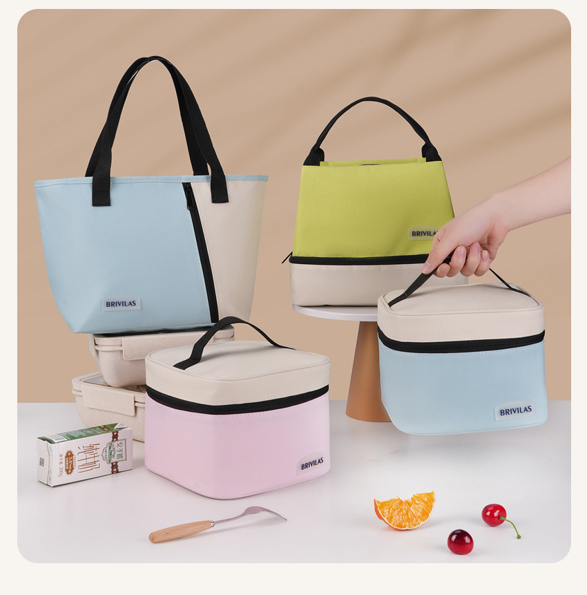 도파민 색상 일치 휴대용 열 보존 가방 간단한 유행 손 운반 점심 보관 가방 휴대용 도시락 열 보존 가방
