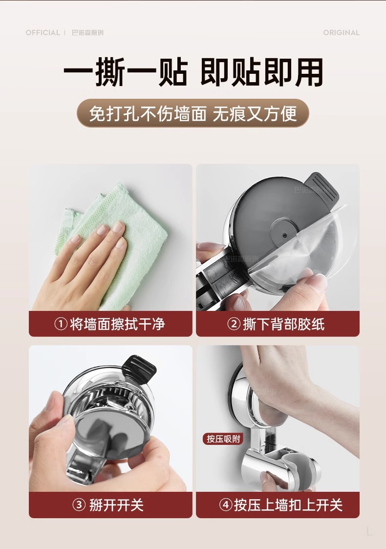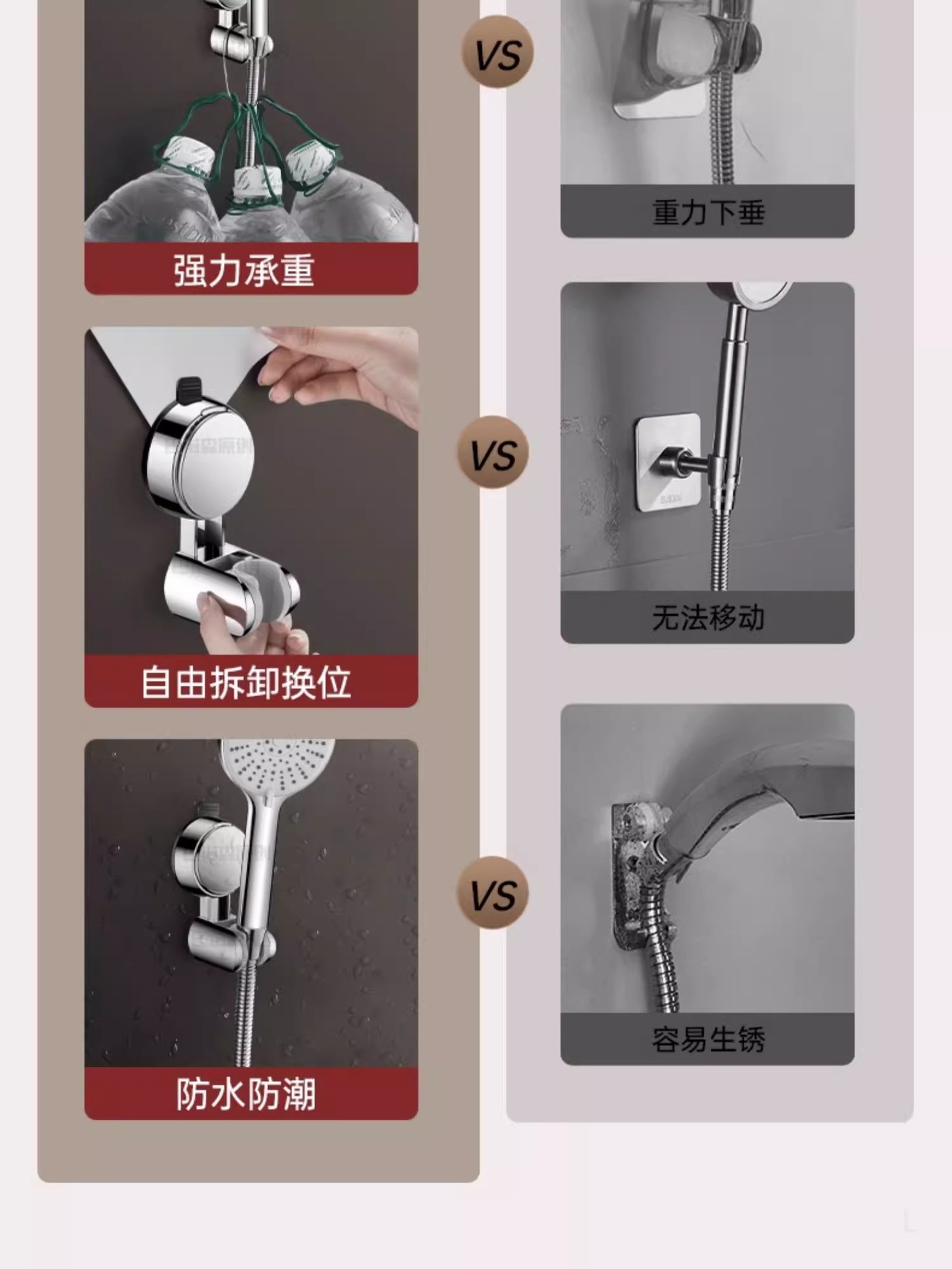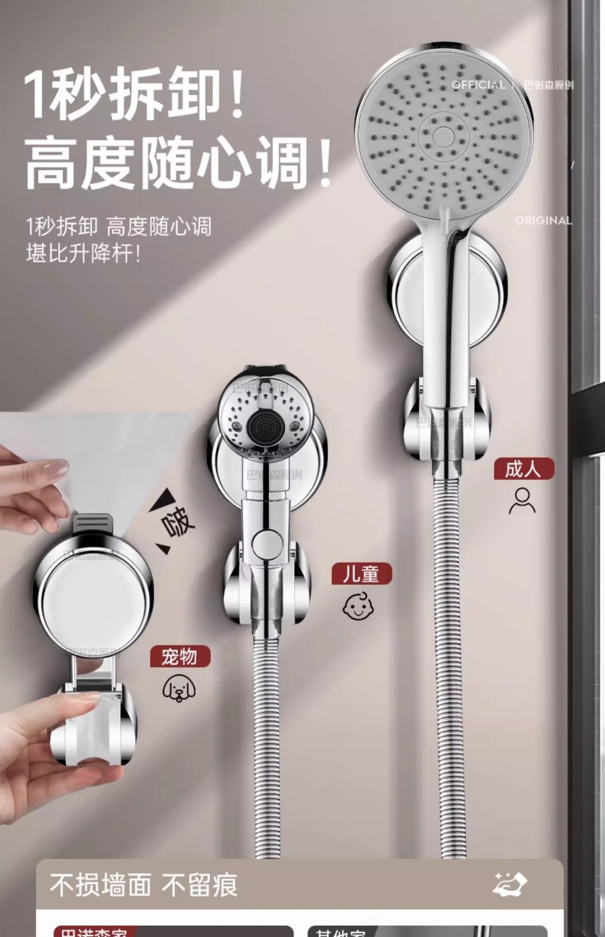 흡착식 샤워 헤드 홀더, 이동식 무타공 샤워 헤드 베이스, 가정용 욕실 샤워 헤드 고정 장치스토어 가기