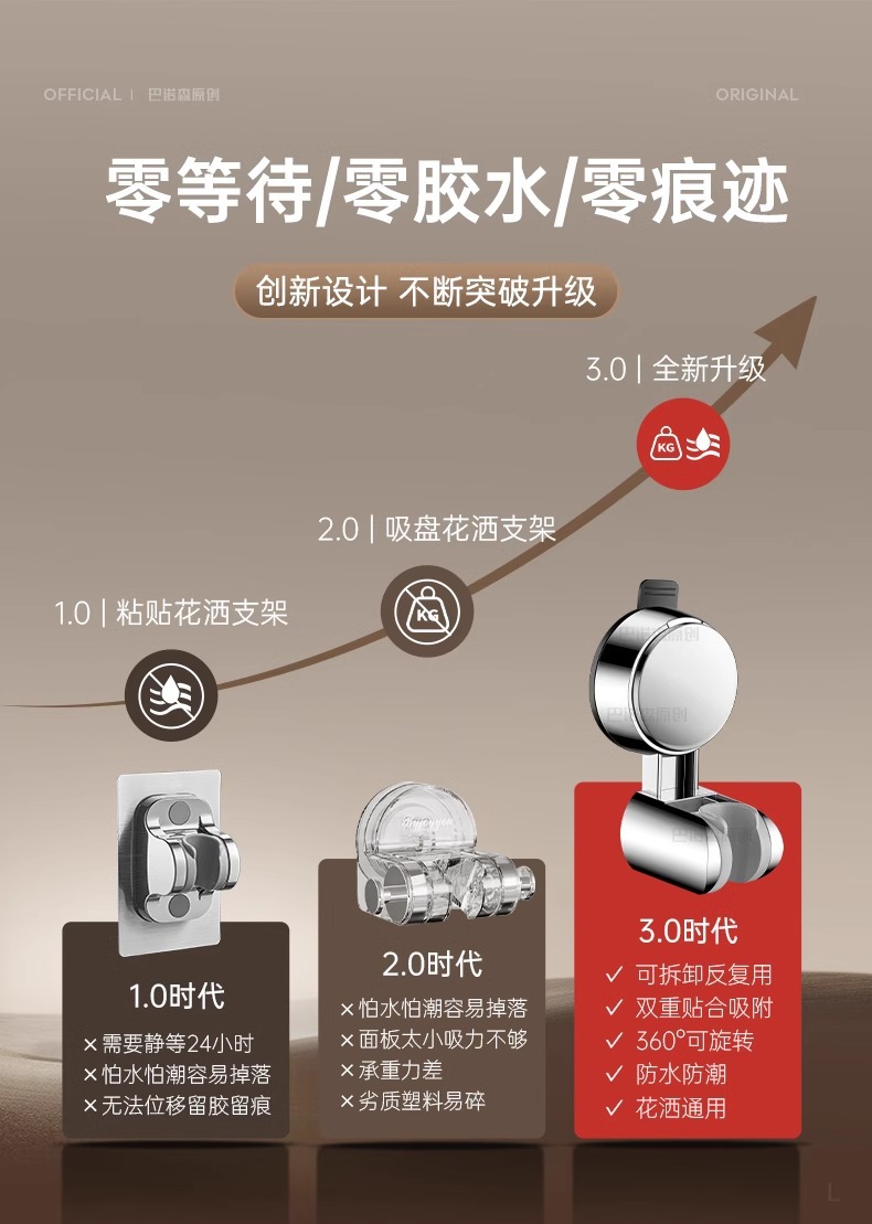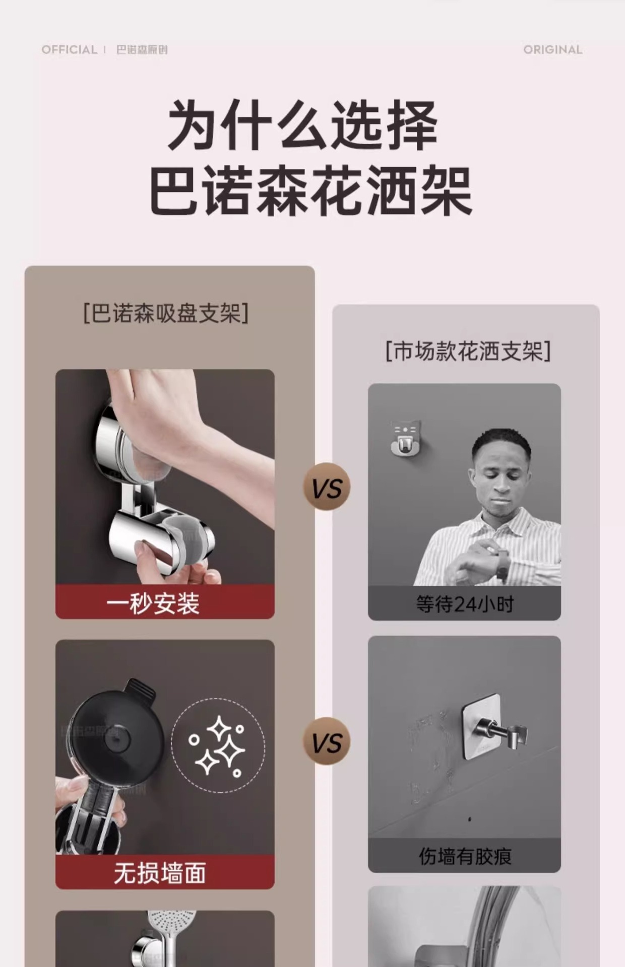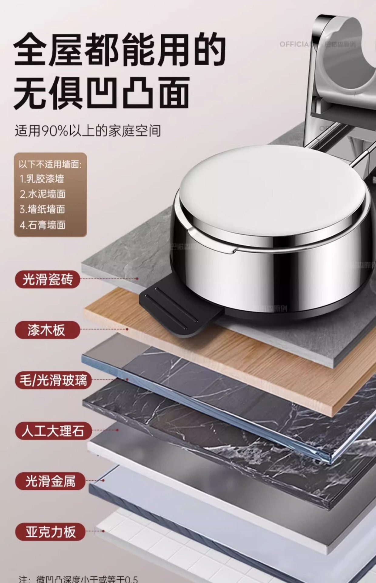 흡착식 샤워 헤드 홀더, 이동식 무타공 샤워 헤드 베이스, 가정용 욕실 샤워 헤드 고정 장치스토어 가기