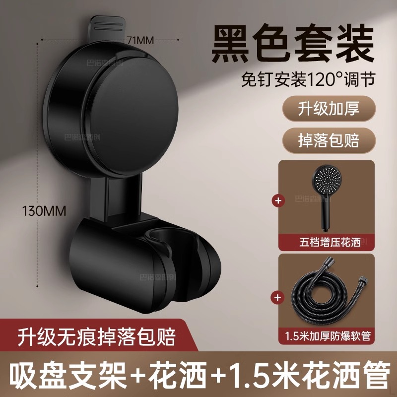 • [매트 블랙 세트] 흡착컵 브라켓 + 방폭호스 1.5m개 + 가압식 5단 샤워기