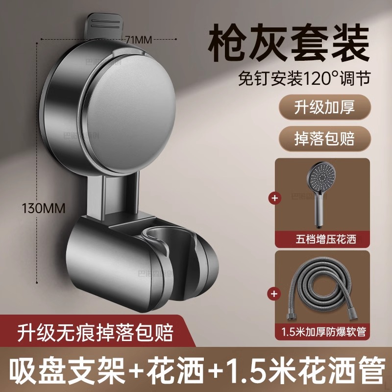 • [프리미엄 그레이 세트] 흡착판 브라켓 + 방폭호스 1.5m개 + 가압식 5단 샤워기