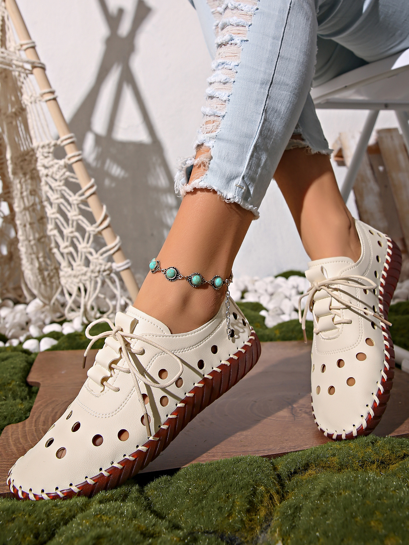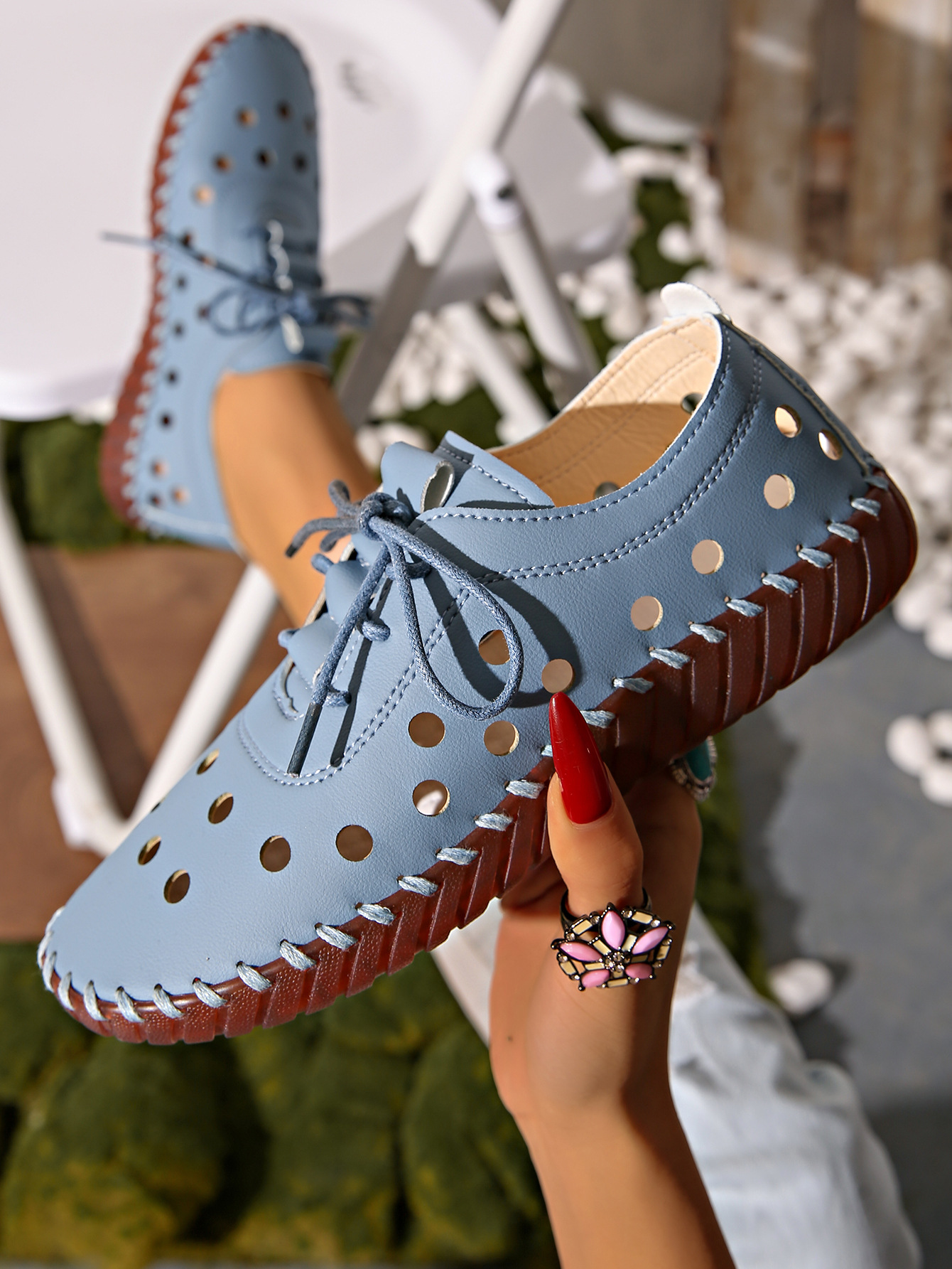 국경을 넘는 대외 무역 속이 빈 레이스 업 구멍 신발 플러스 사이즈 새로운 평평한 꿰매어진 두꺼운 밑창 신발 소원 아마존스토어 가기