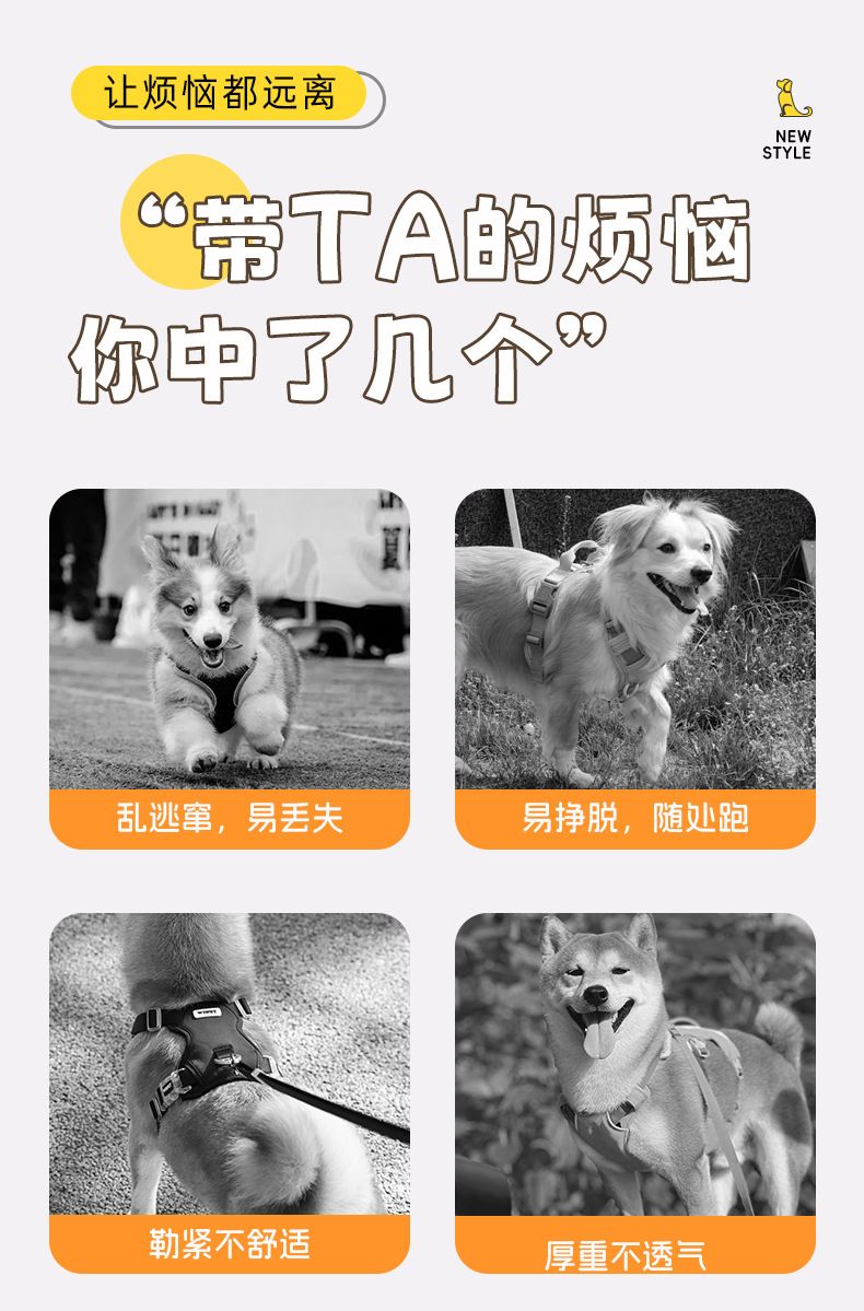 • 귀여운 닭가슴과 등받이 2종세트 [노란오리가슴+견인로프]