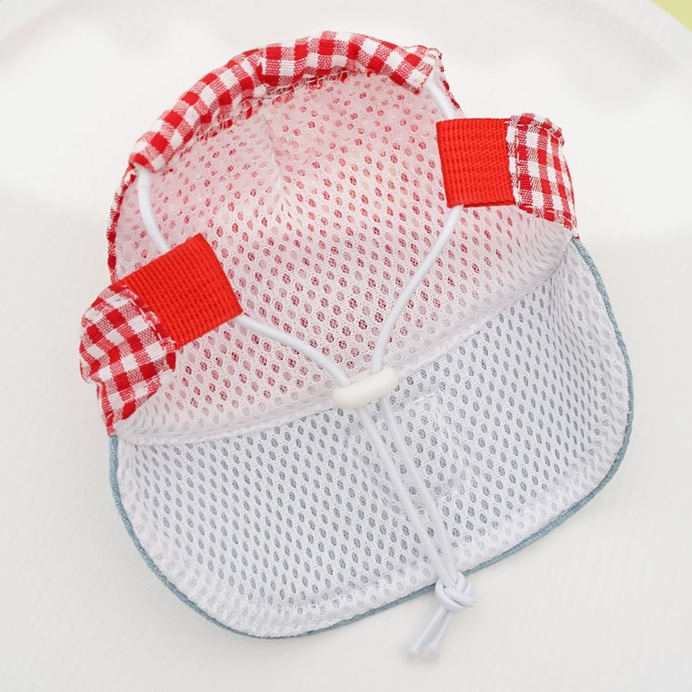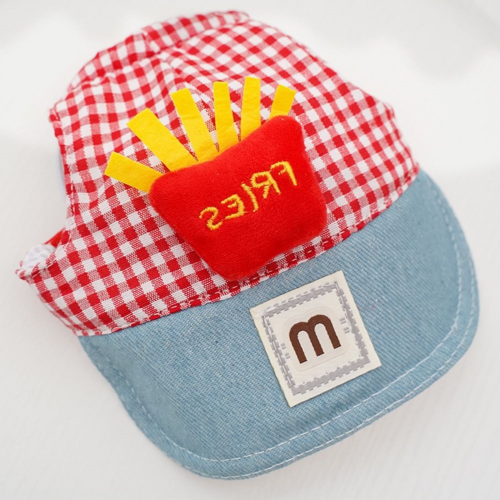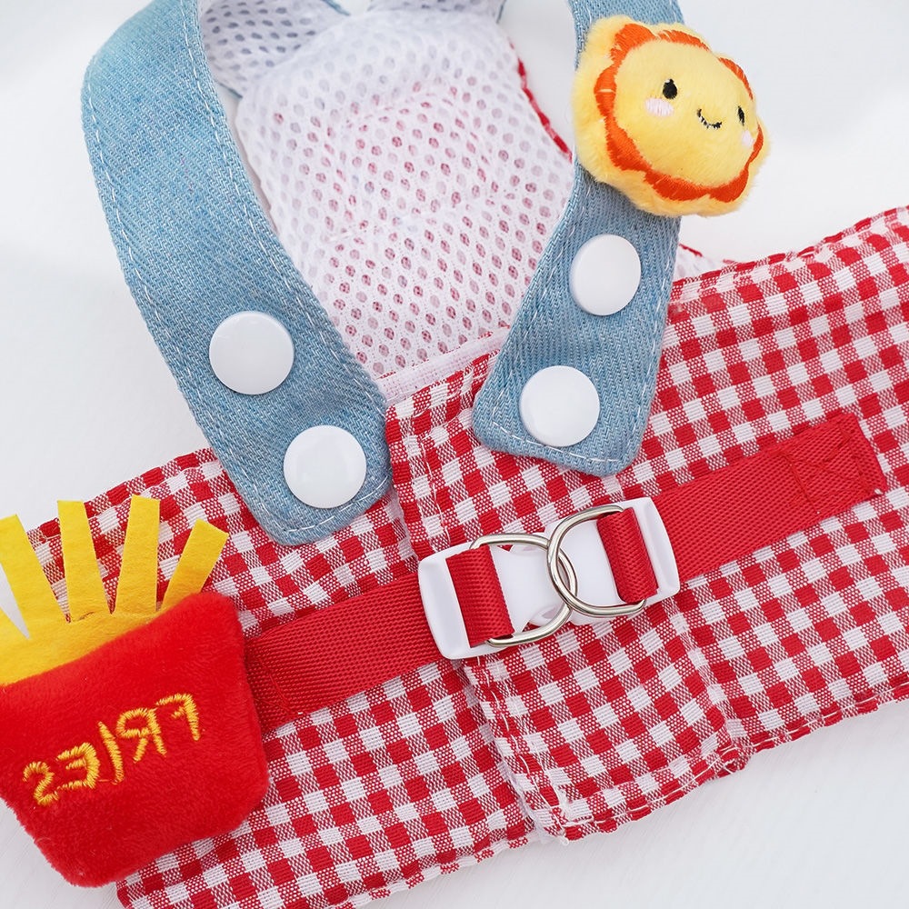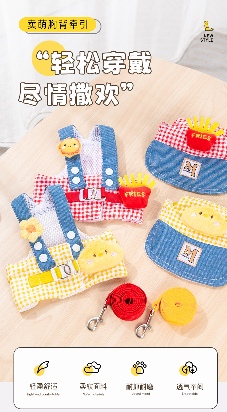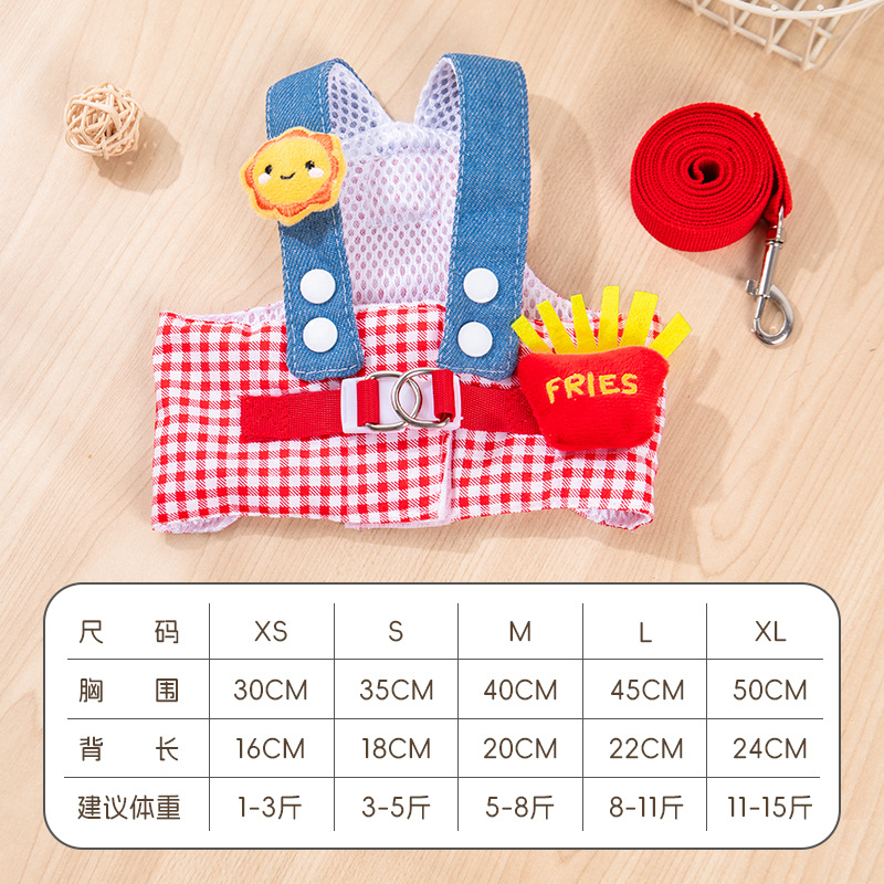 • 감자튀김 레드 체크무늬 하네스 3종세트 [모자+하네스+리쉬]